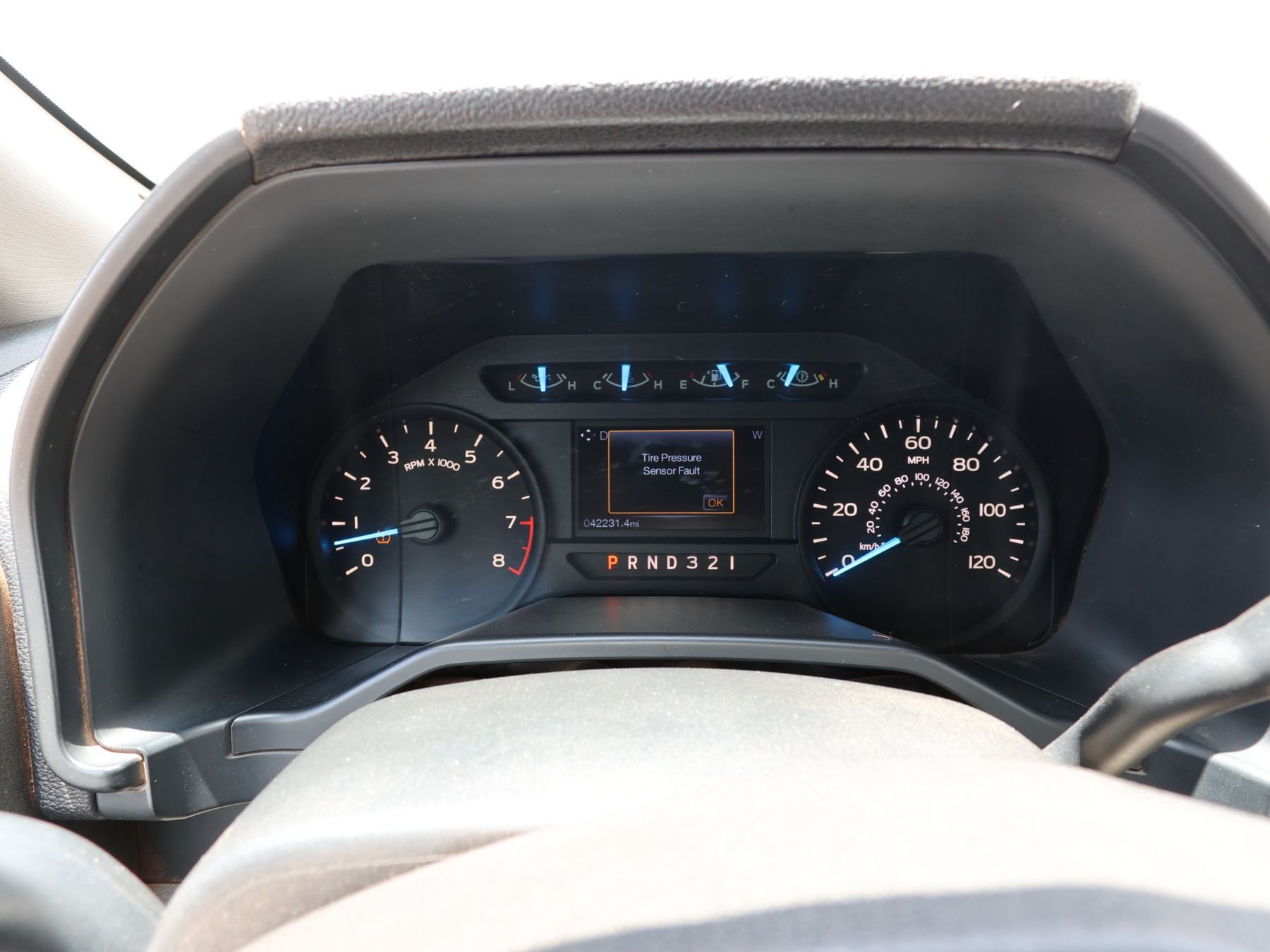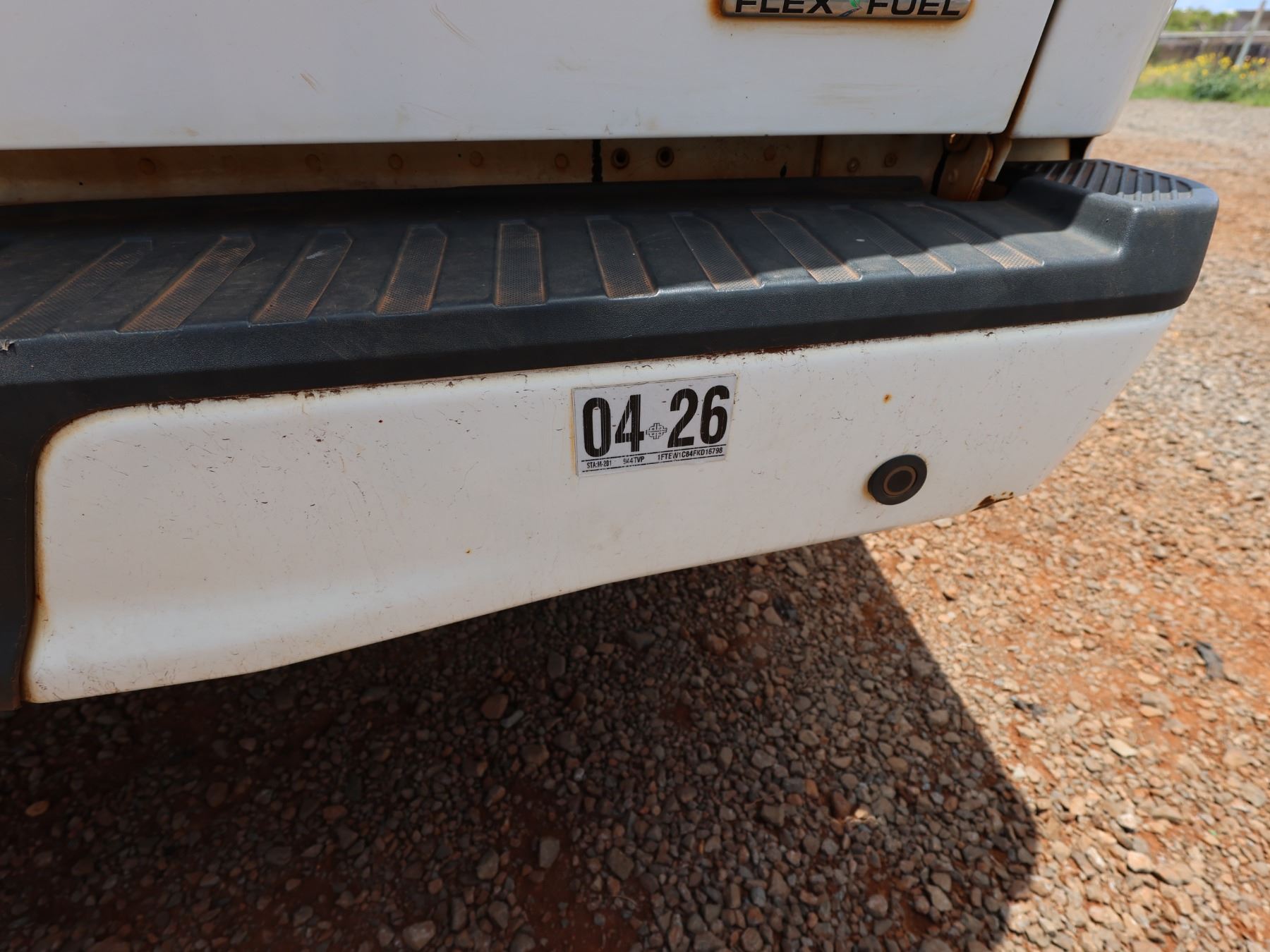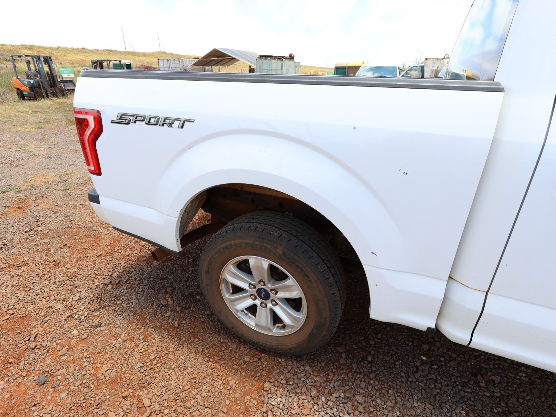The black tailgate top cap has come off after these photos were taken. The "tire pressure sensor fault" light is on. VIN: 1FTEW1C84FKD16798. 2015 Ford F150 Sport Pickup Truck, approx. 42241 Miles Lic. 944TVP.