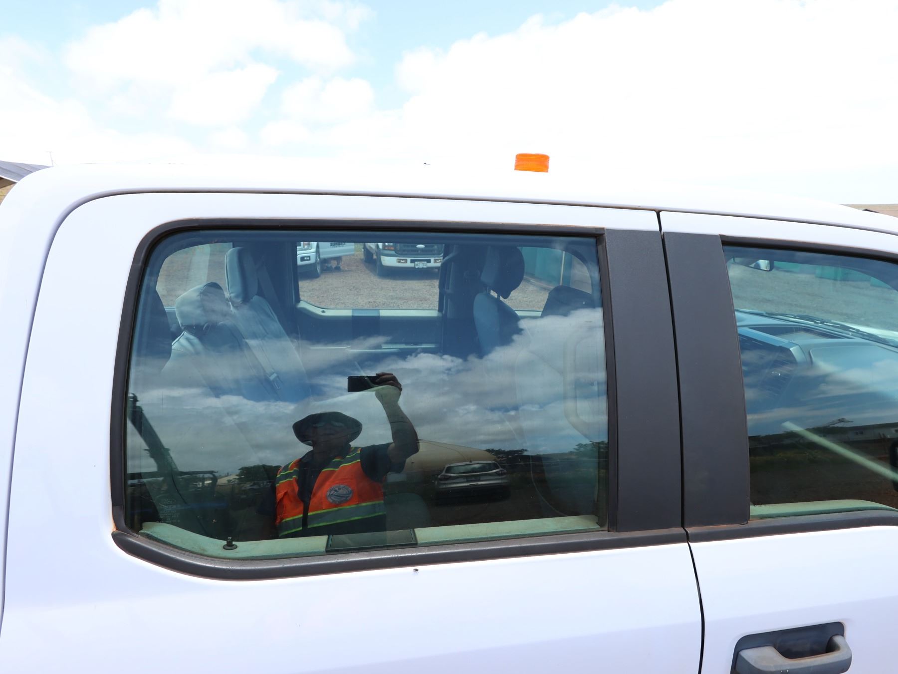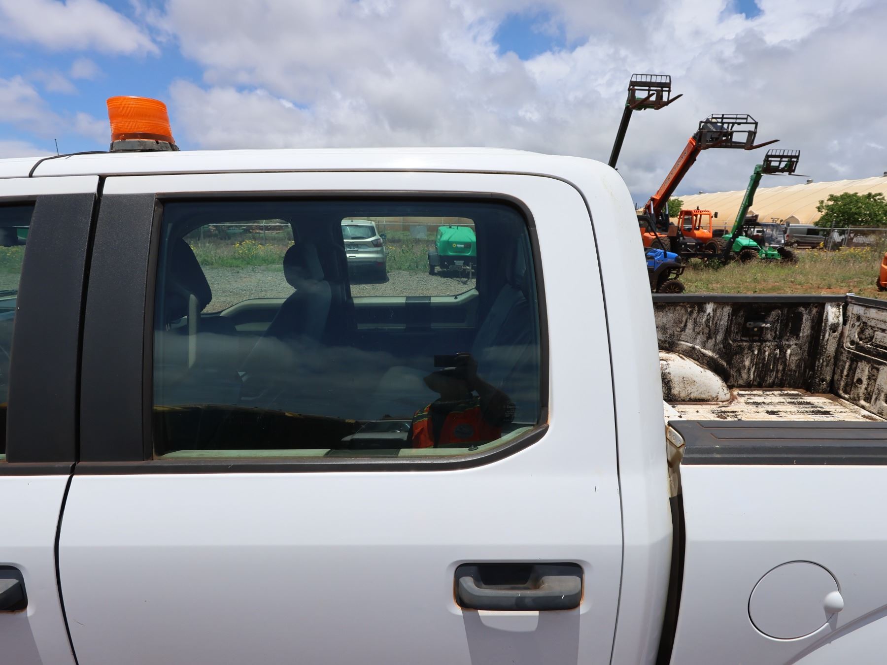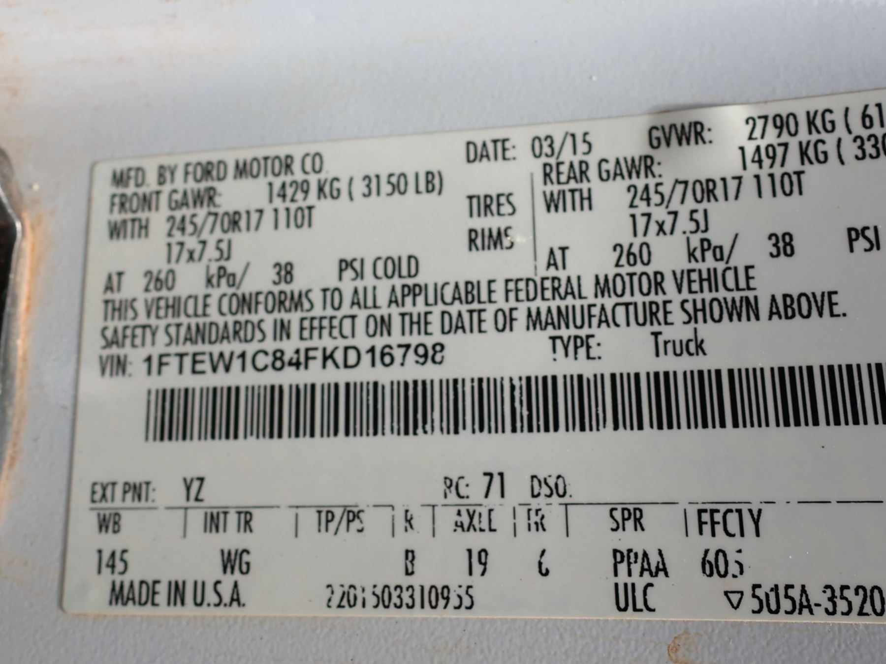 The black tailgate top cap has come off after these photos were taken. The "tire pressure sensor fault" light is on. VIN: 1FTEW1C84FKD16798. 2015 Ford F150 Sport Pickup Truck, approx. 42241 Miles Lic. 944TVP.
