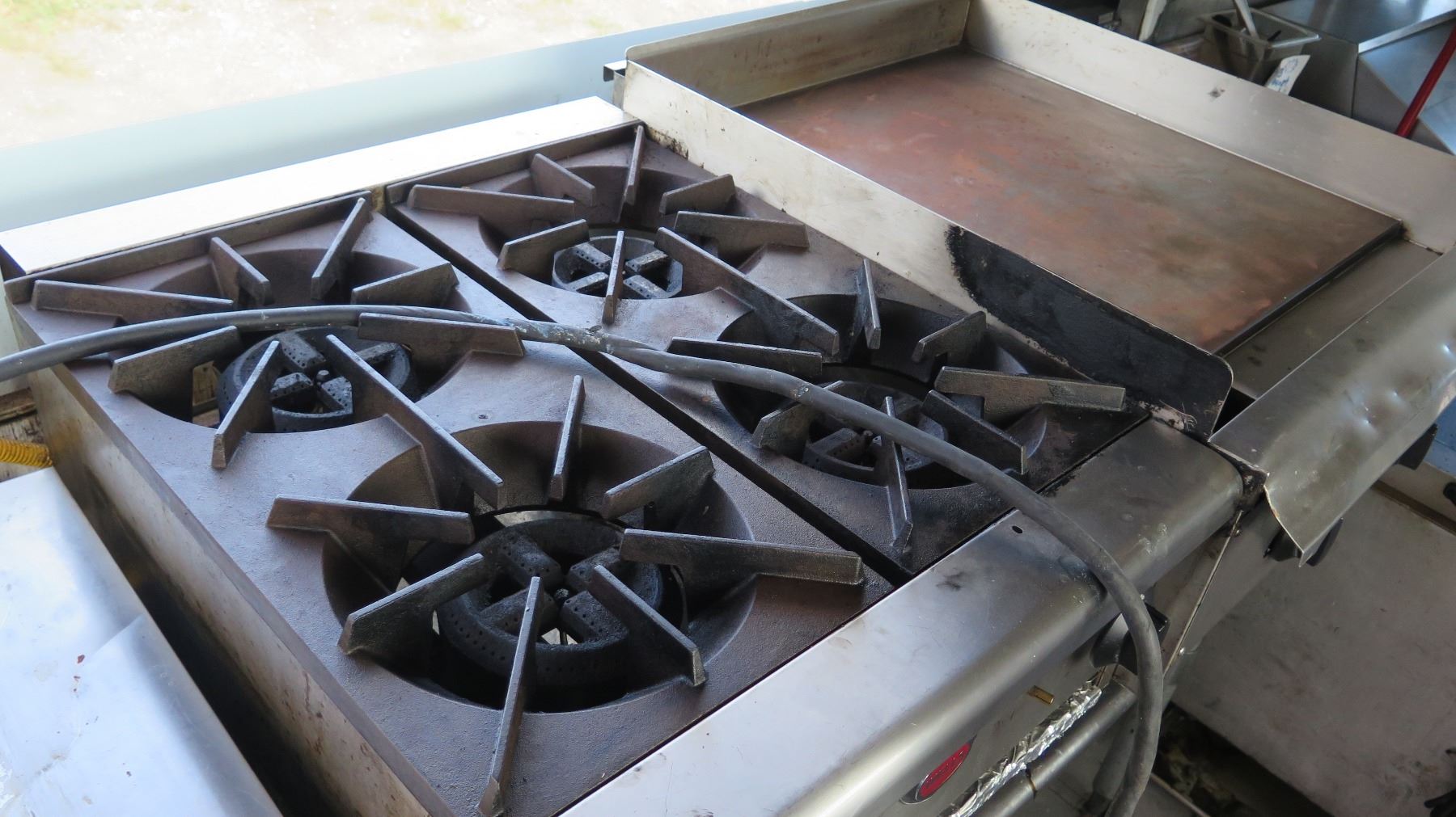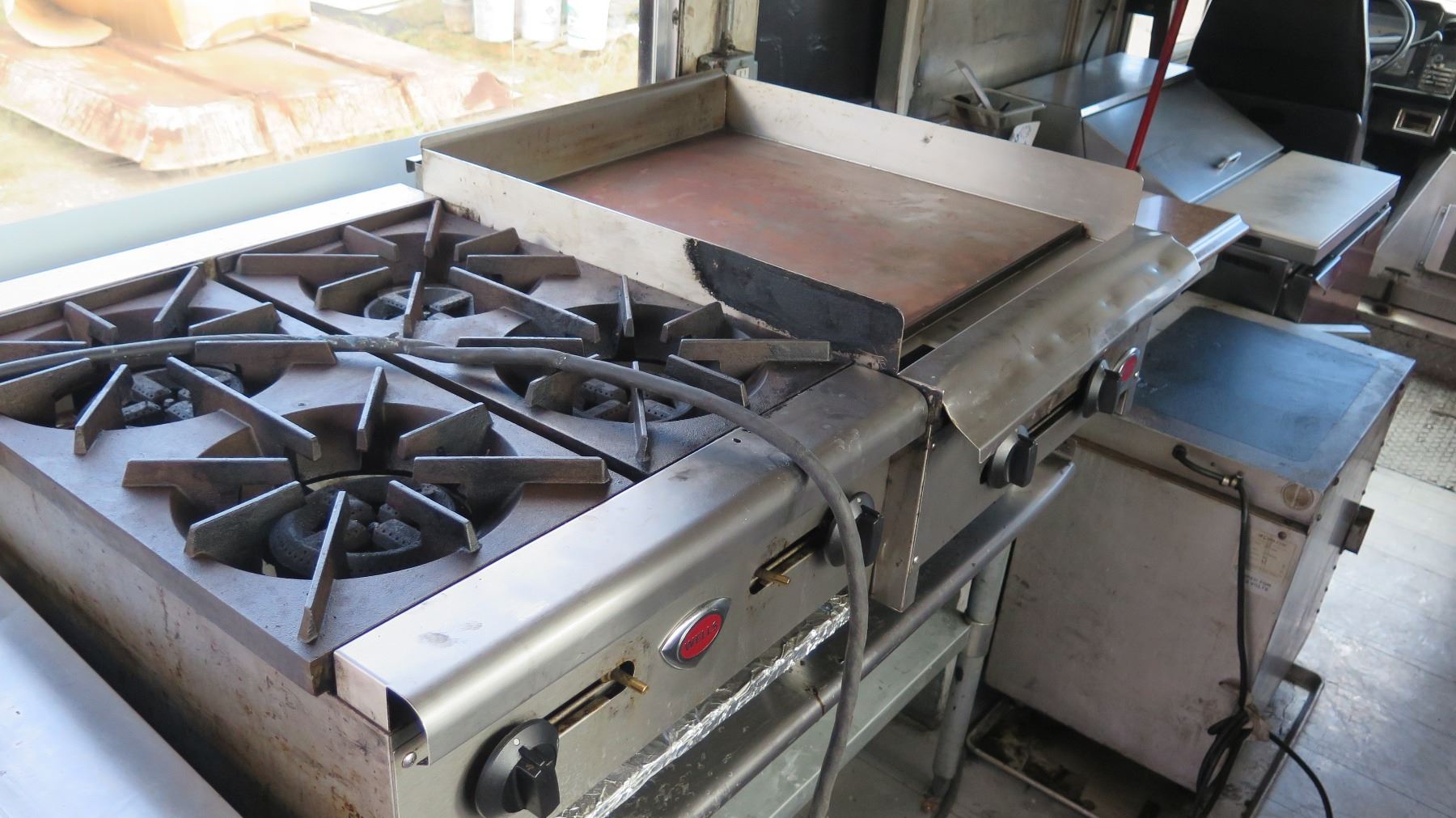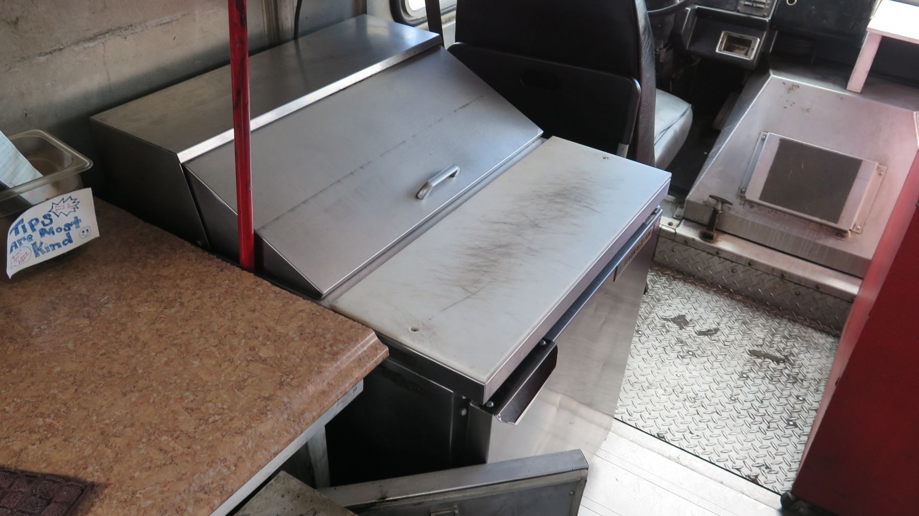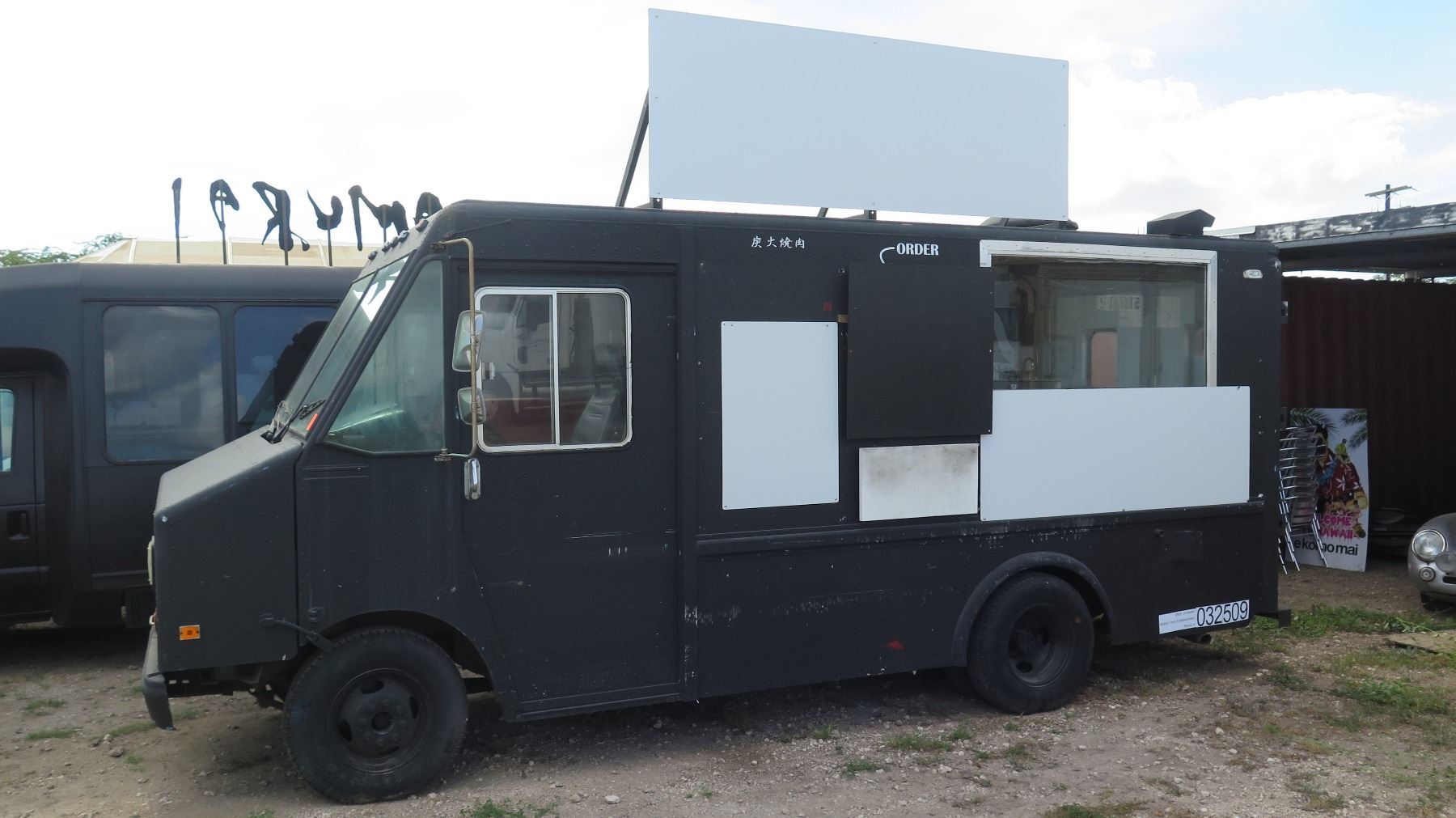 1995 Chevy Van, Black, 98"L, 74"W, 74"H - 61,803 Miles, Registration Expires Apr. 2018. Includes Title. Has 2 Griddles 24", 4-Burner Range (approx. 24"), 2 Single-Door Refrigerators, Chicken Warmer, Prep Table. This has no key. It's missing.