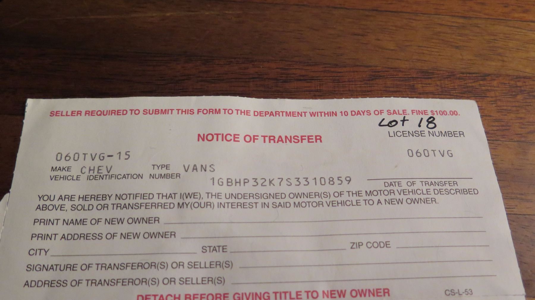 95 Chevy Van, 98"L, 74"W, 74"H w/Griddles, Refrigerators, Range, Has Title, Reg. Exp 4/2018, No Key