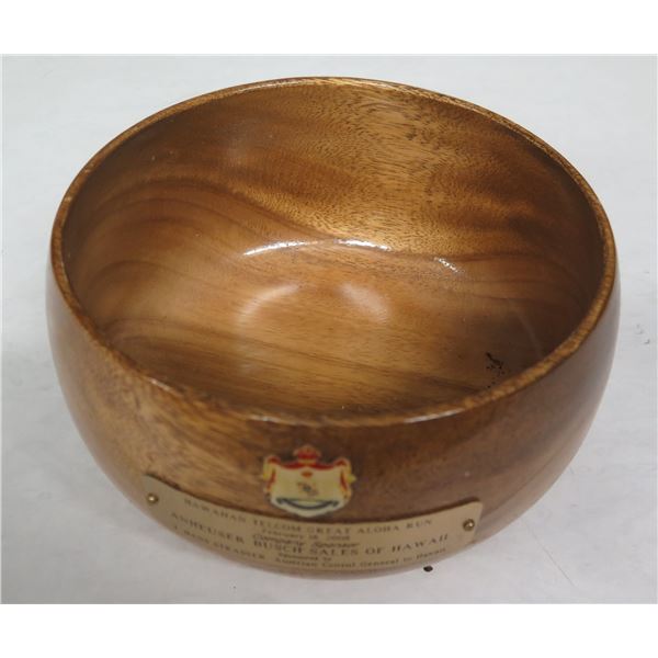 Hawaiian Telcom Great Aloha Run 2008 Sponsor Wooden Bowl 8" dia, 4"H