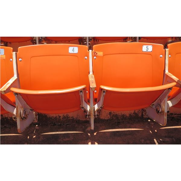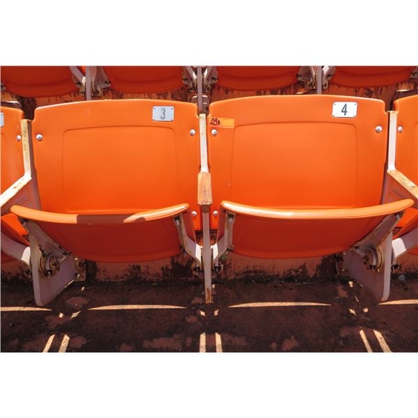 Pair Aloha Stadium Seats w/ Backs & 3 Armrests, Orange, Seats 3 & 4, 45"x13"x28"H