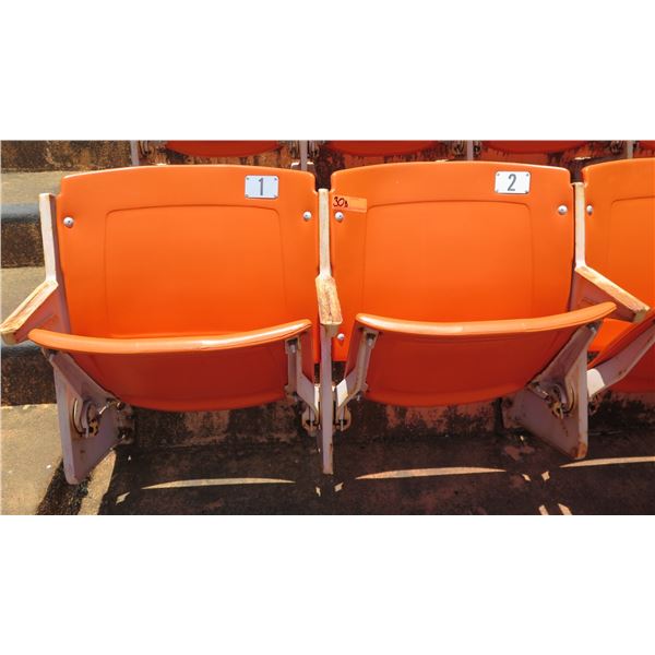 Pair Aloha Stadium Seats w/ Backs & 3 Armrests, Orange, Seats 16 & 17, 45"x13"x28"H