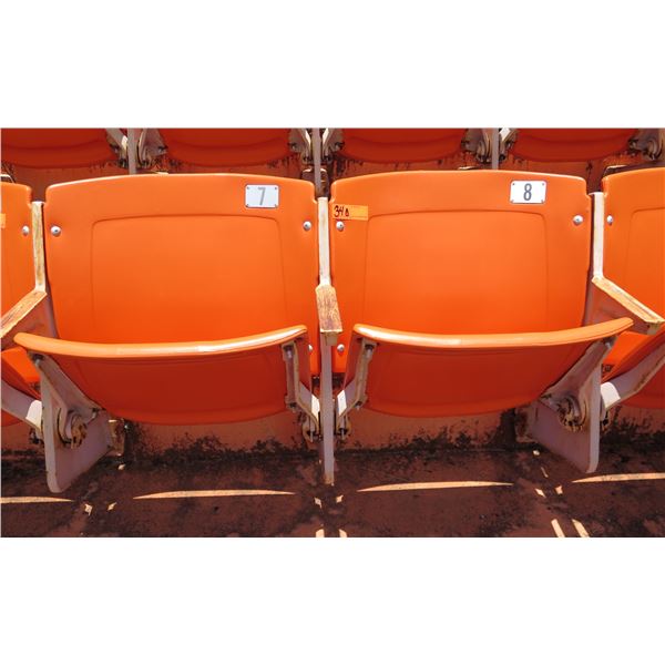 Pair Aloha Stadium Seats w/ Backs & 3 Armrests, Orange, Seats 7 & 8, 45"x13"x28"H