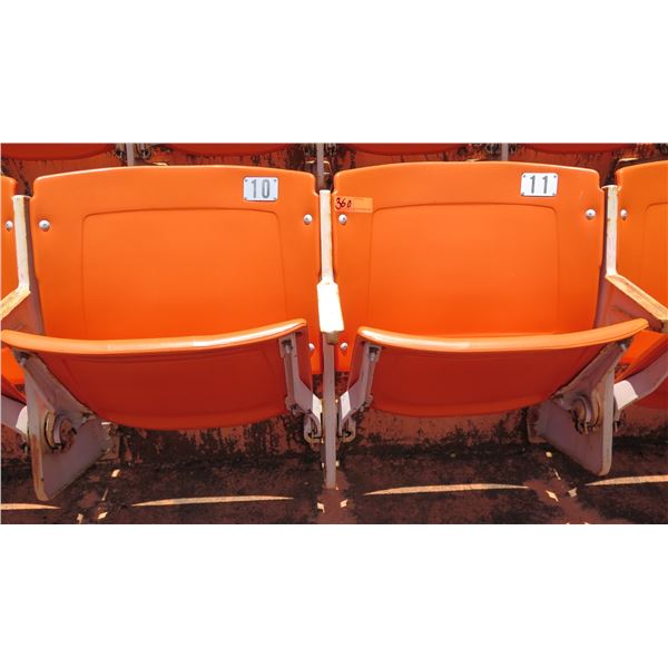 Pair Aloha Stadium Seats w/ Backs & 3 Armrests, Orange, Seats 10 & 11, 45"x13"x28"H. Note: Seats have been removed for pick u...