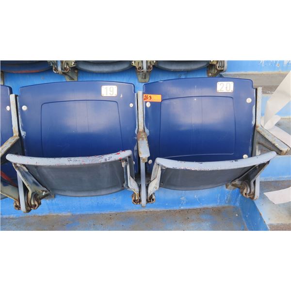 Pair Aloha Stadium Seats w/ Backs & 3 Armrests, Blue, Seats 19 & 20, 45"x13"x28"H