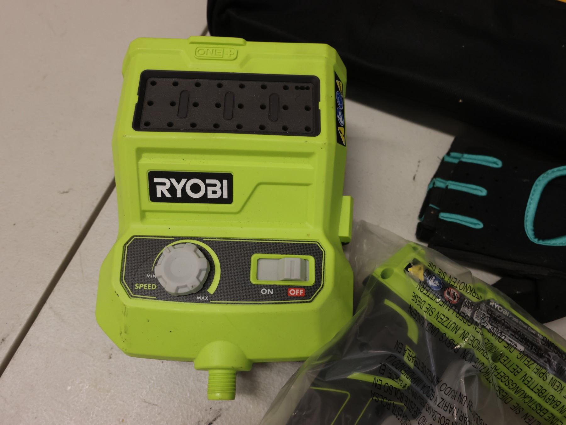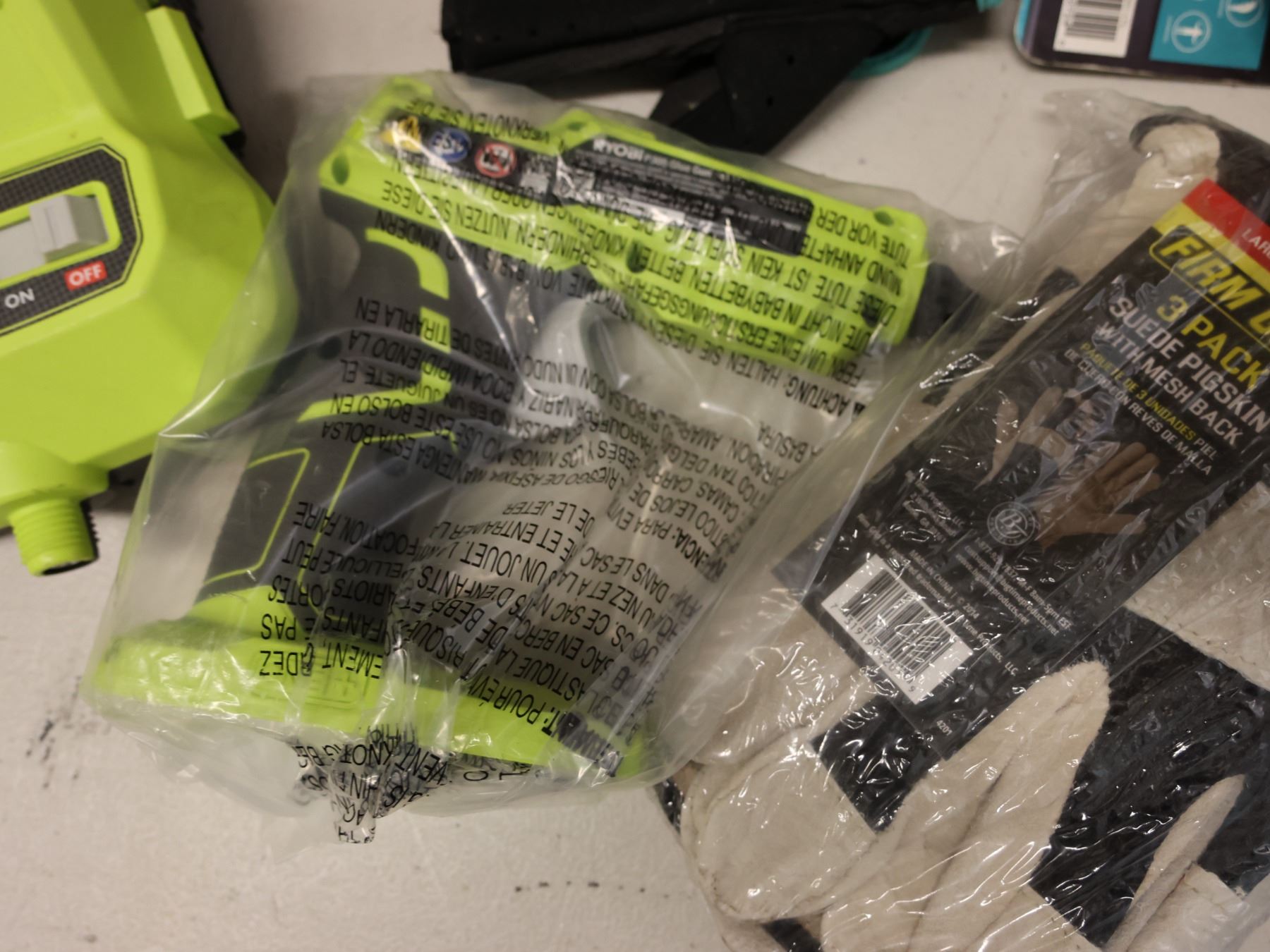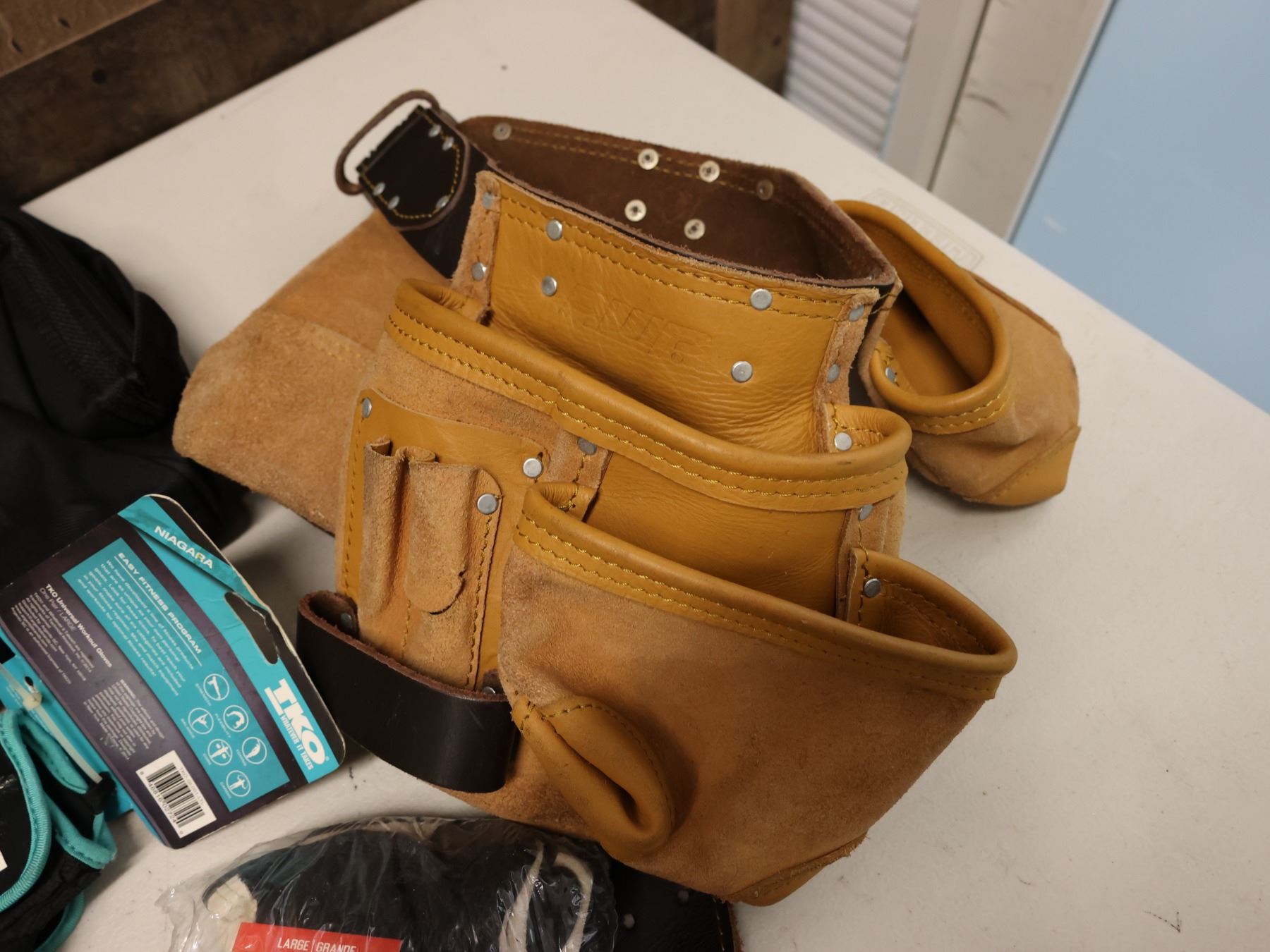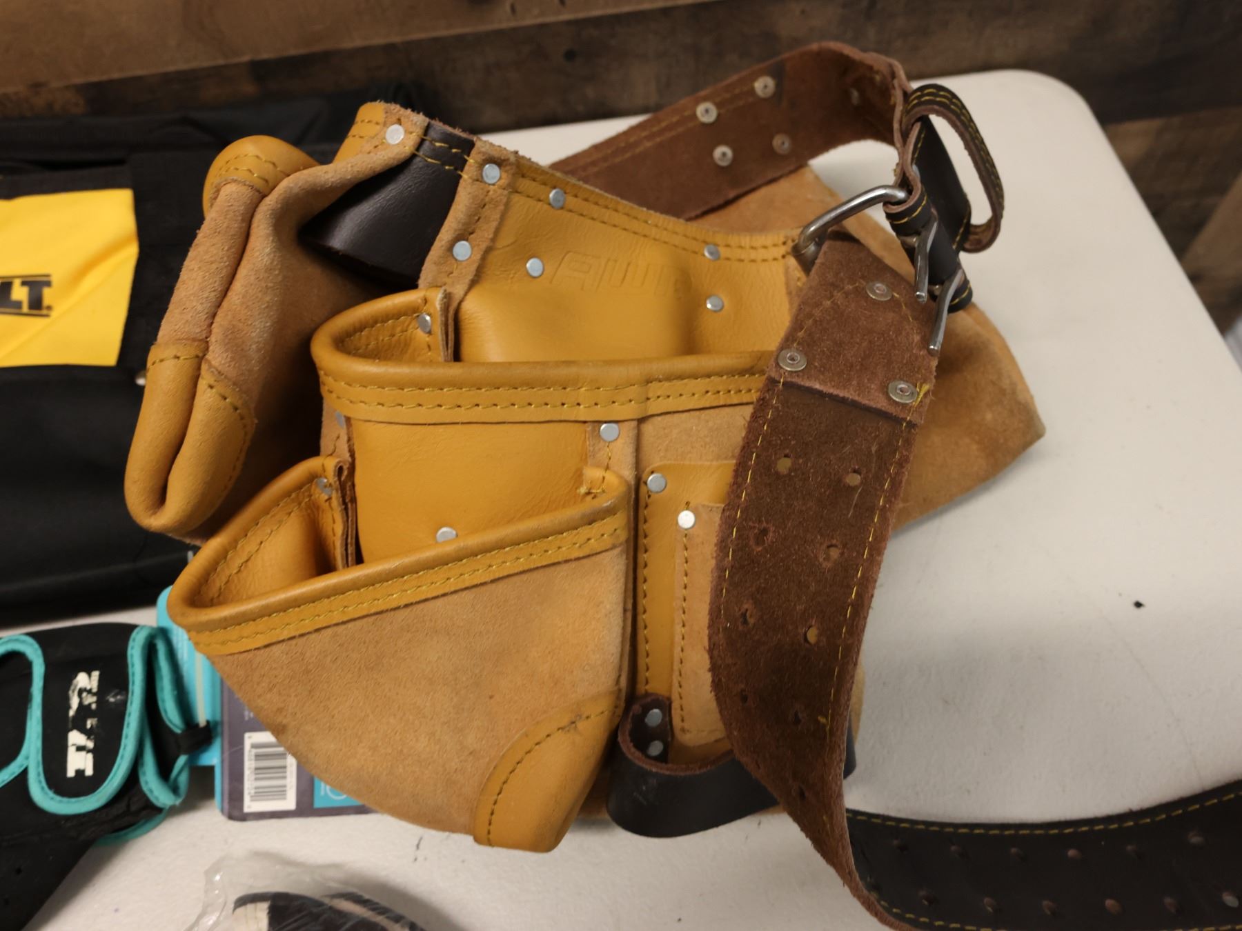 AWR Tool Apron, Gloves, Ryobi Glue Gun & Rotary Tool Station in DeWalt Bag