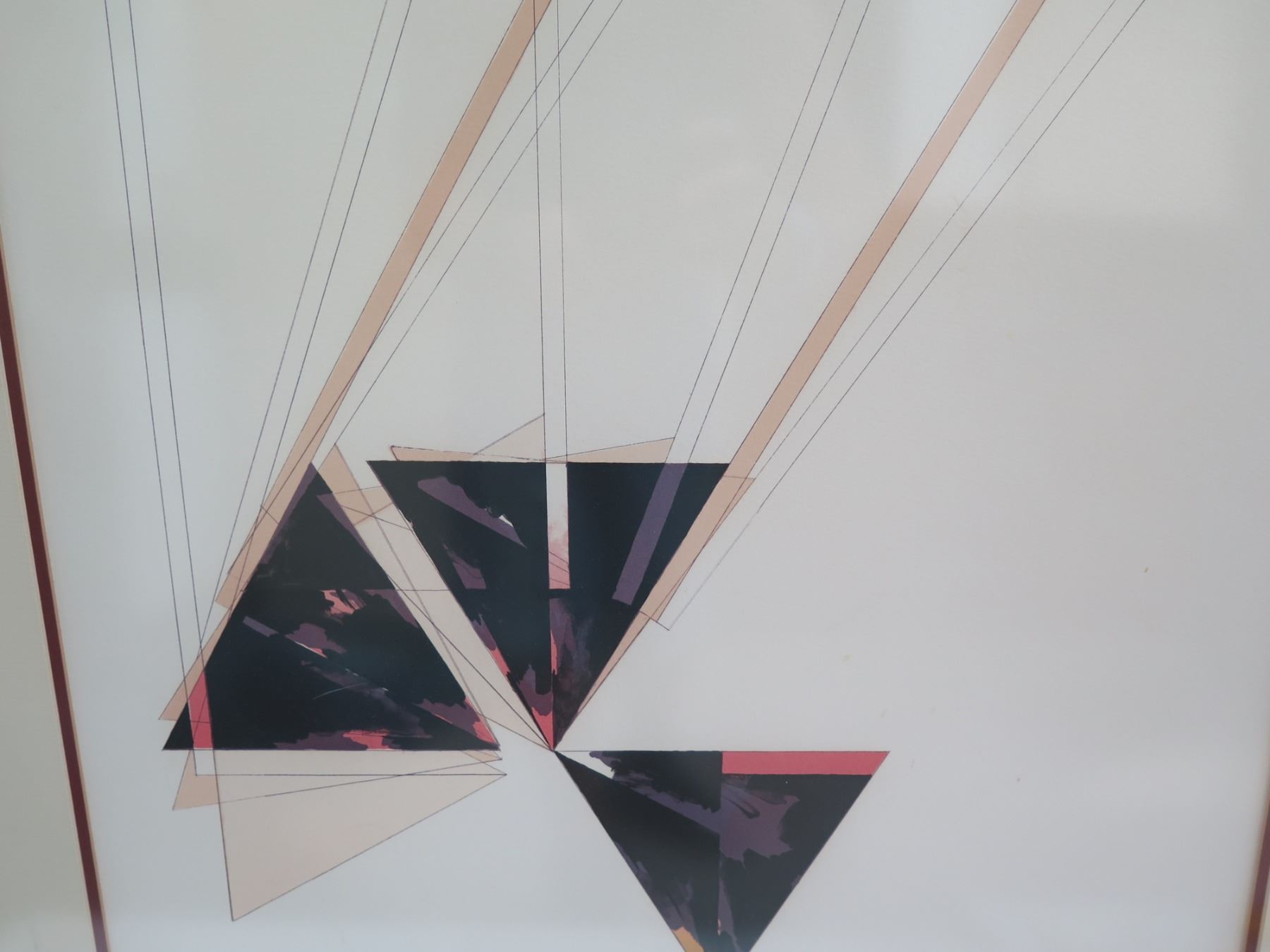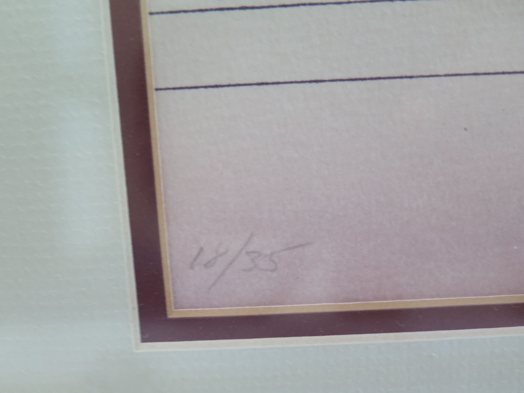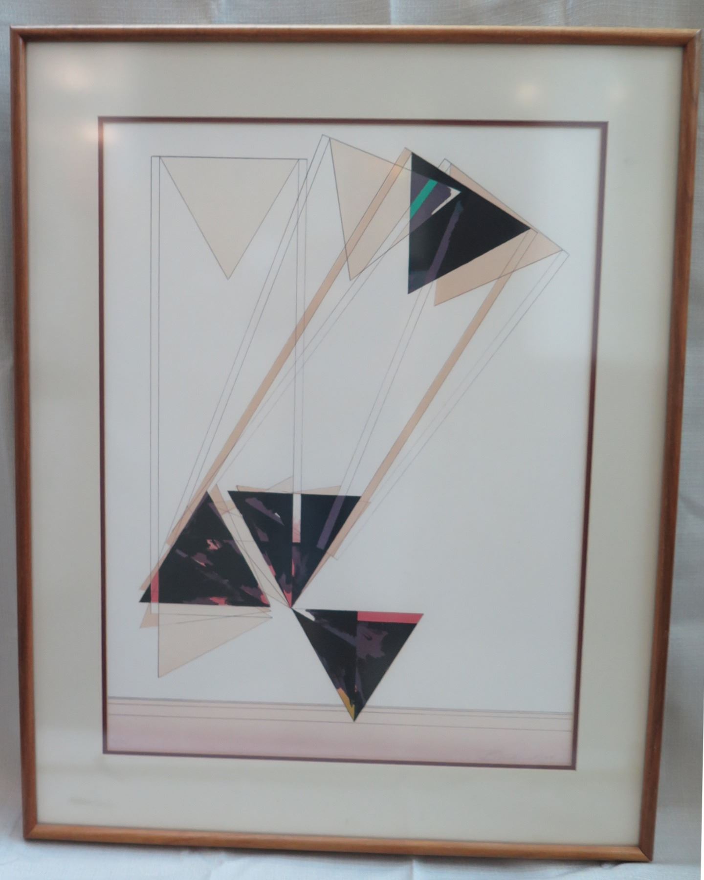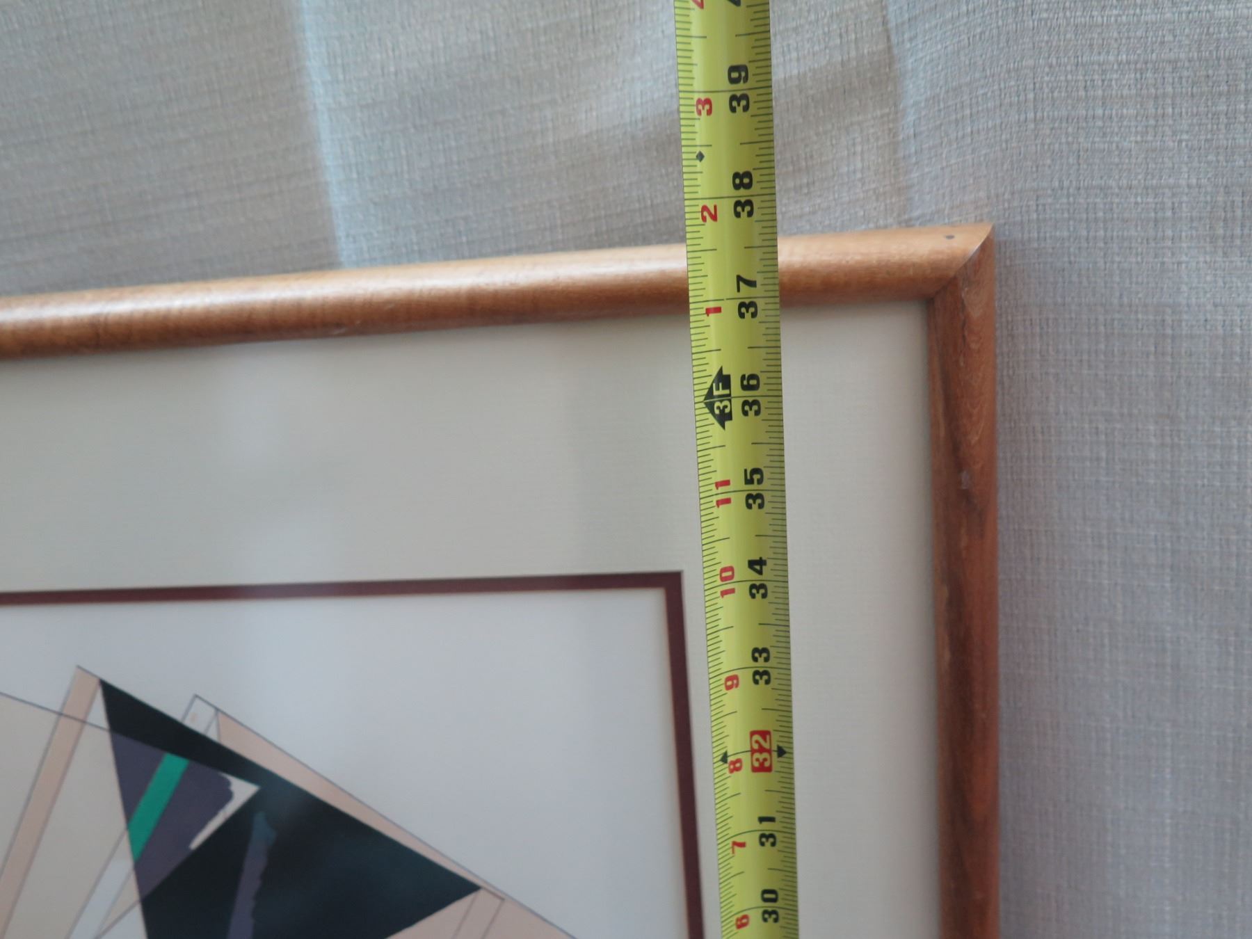Abstract Art Work Signed by Artist Bushall (?) 18/35 Matted in Wooden Frame 38"H