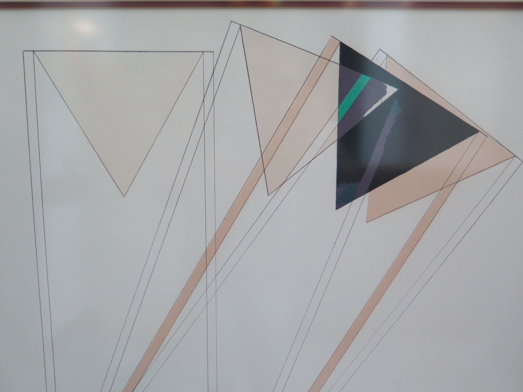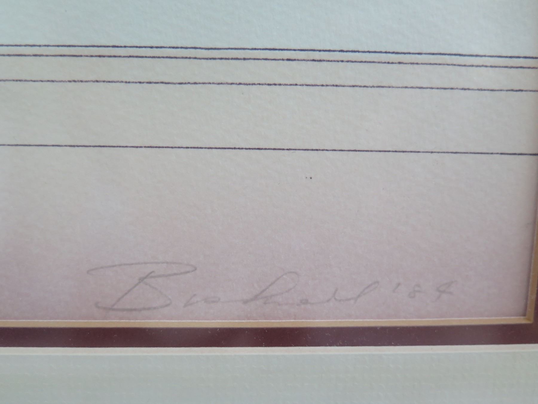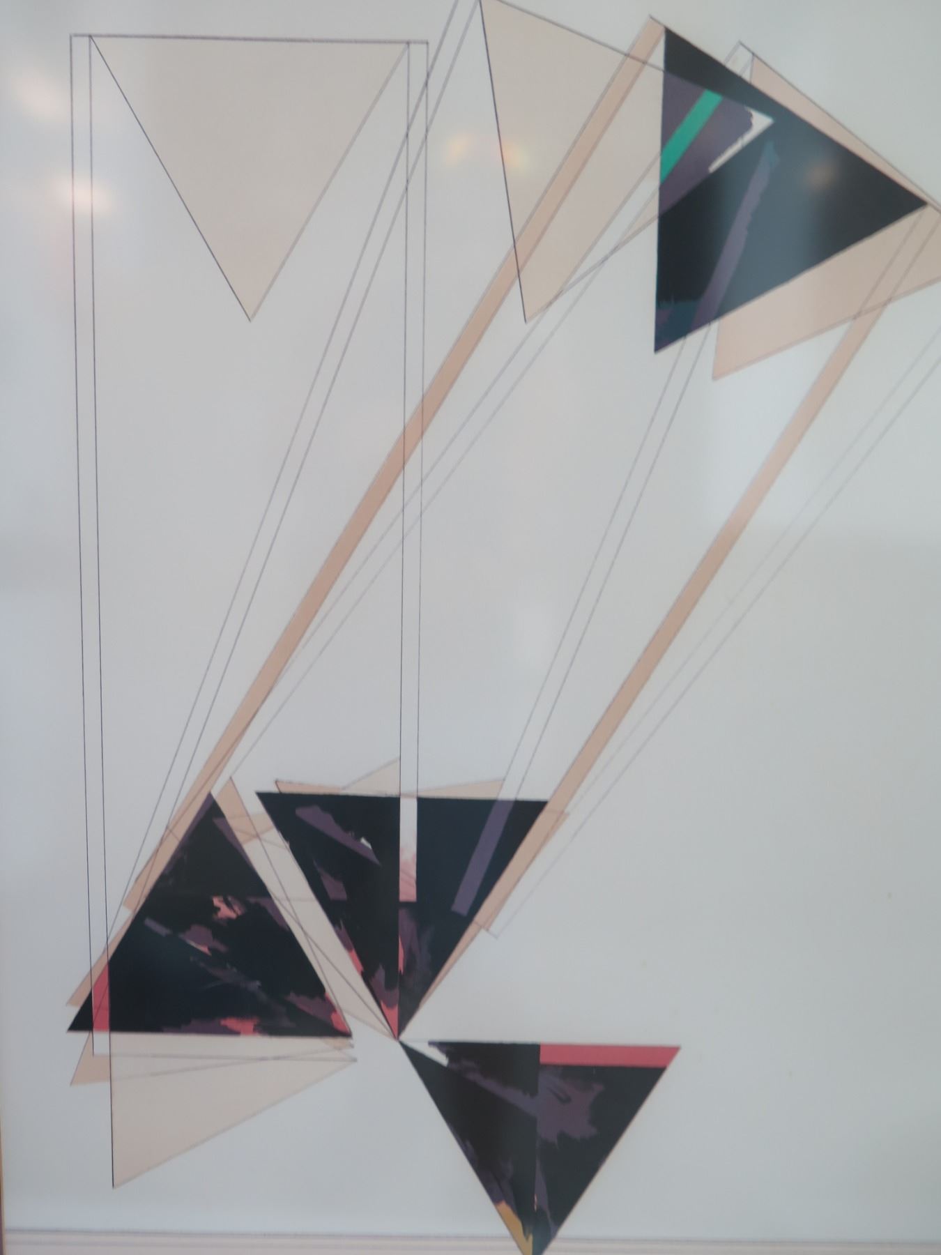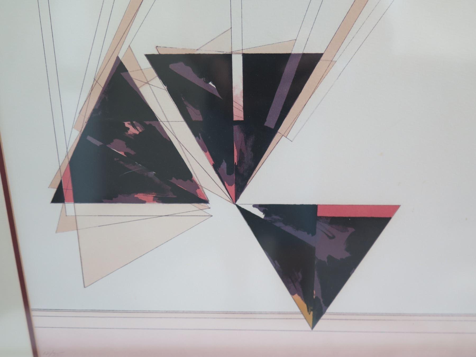 Abstract Art Work Signed by Artist Bushall (?) 18/35 Matted in Wooden Frame 38"H