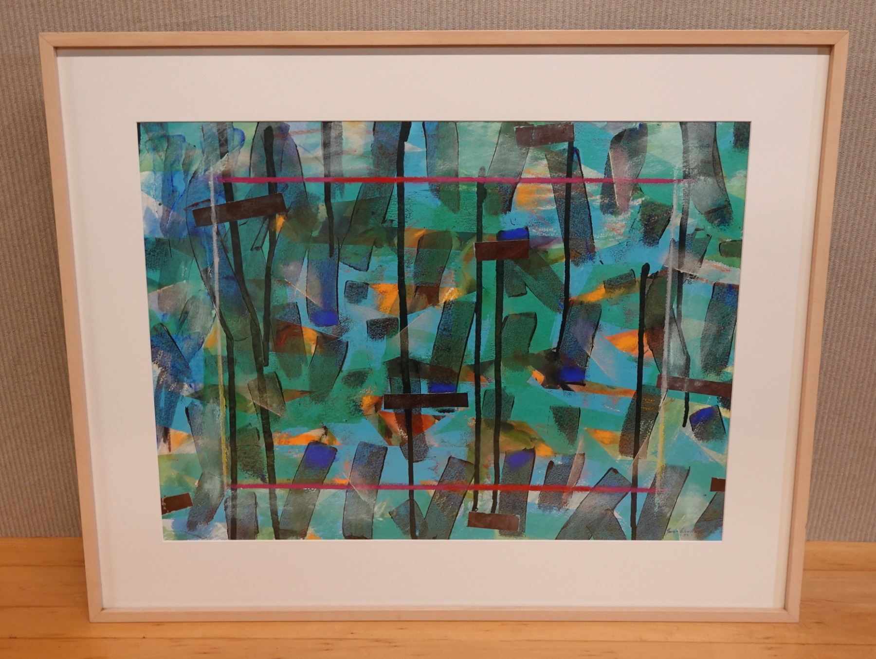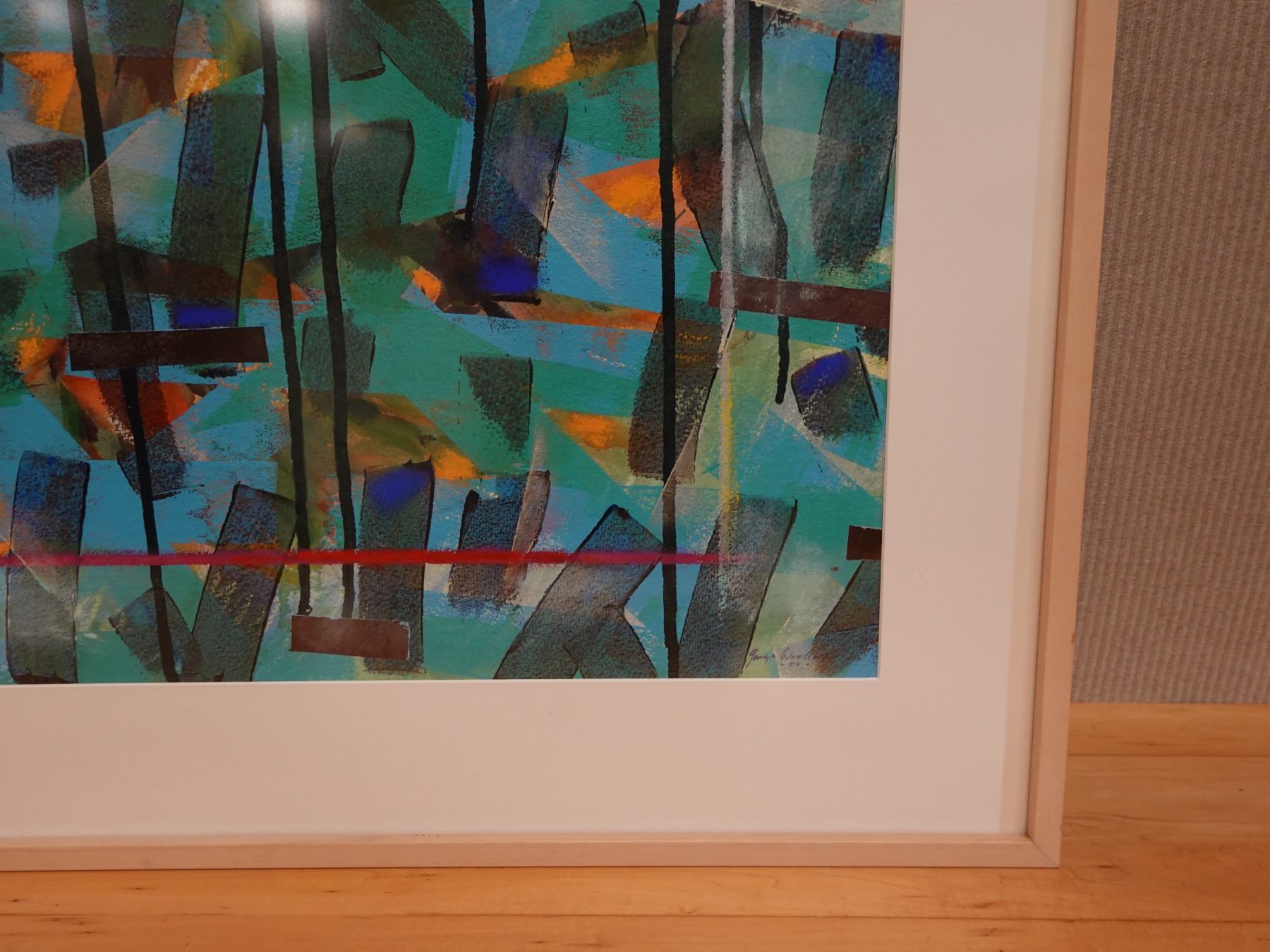 Abstract Artwork Signed by Artist George Wolland (?) 2000, Framed & Matted 38" x 30"