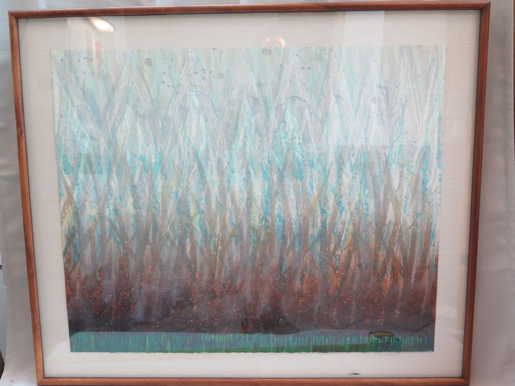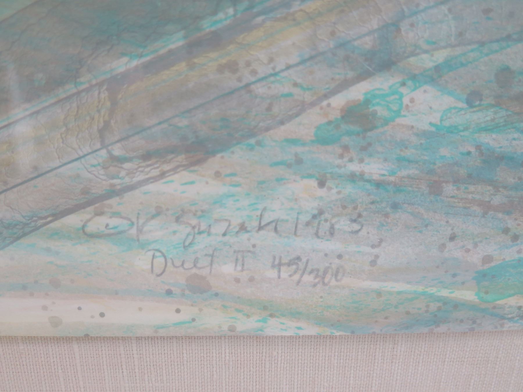 Abstract Duet II Art Work Signed by Artist K. Suzuki 45/300 Wooden Frame 35"x42"
