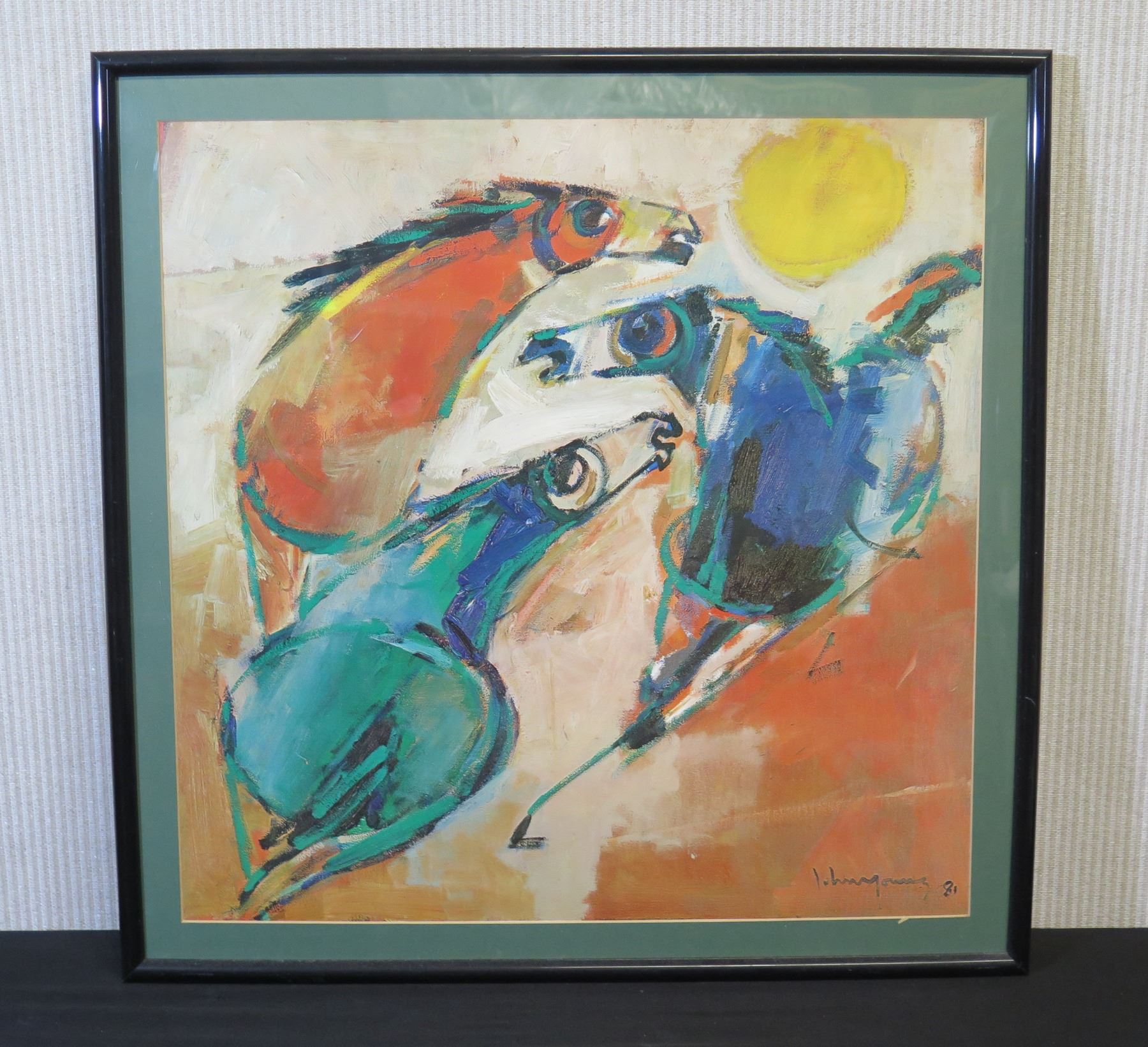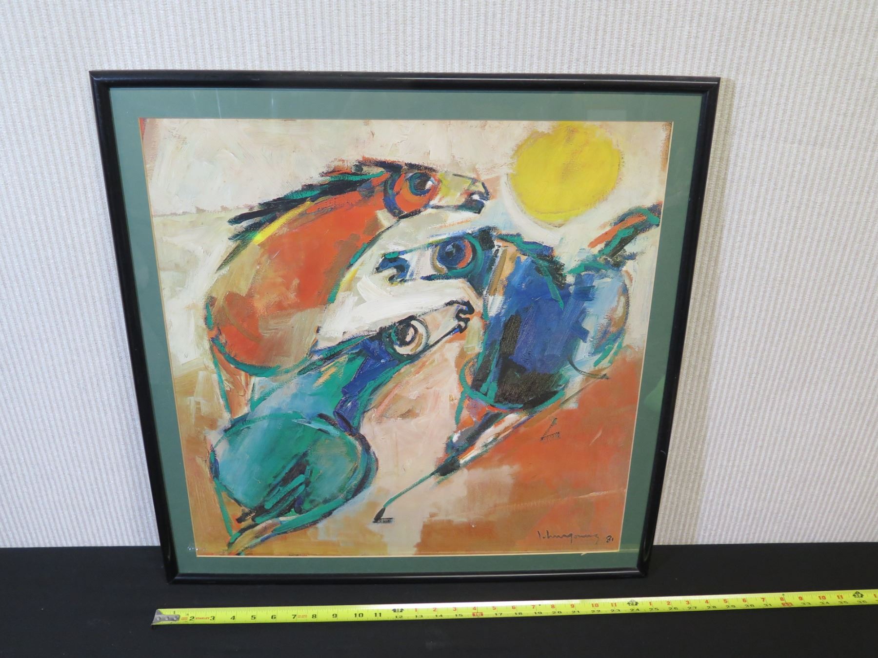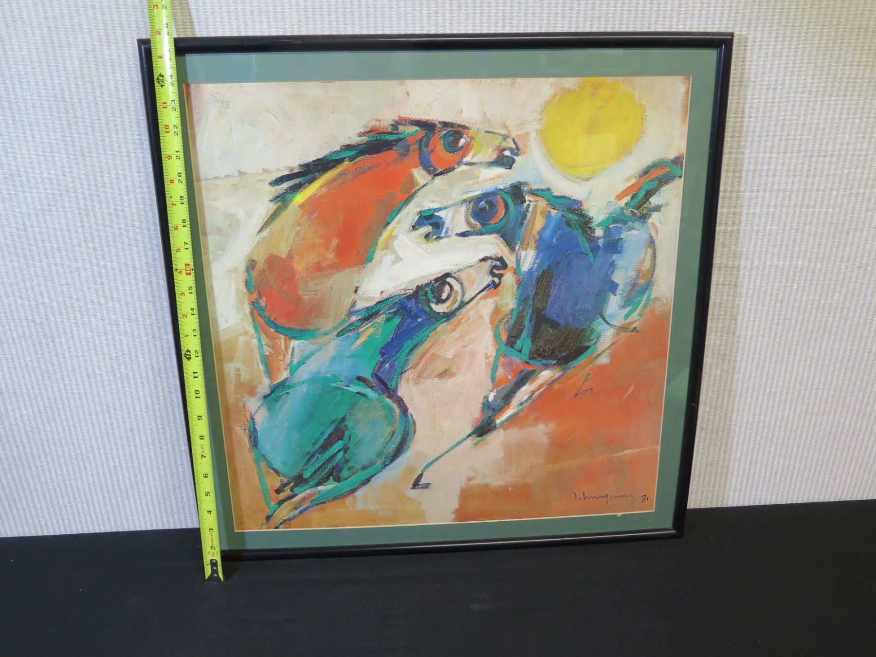 Abstract Horse Poster by Artist John Young '81 w/ Hawaii Opera Theater Tag, Framed & Matted 25" x 25"