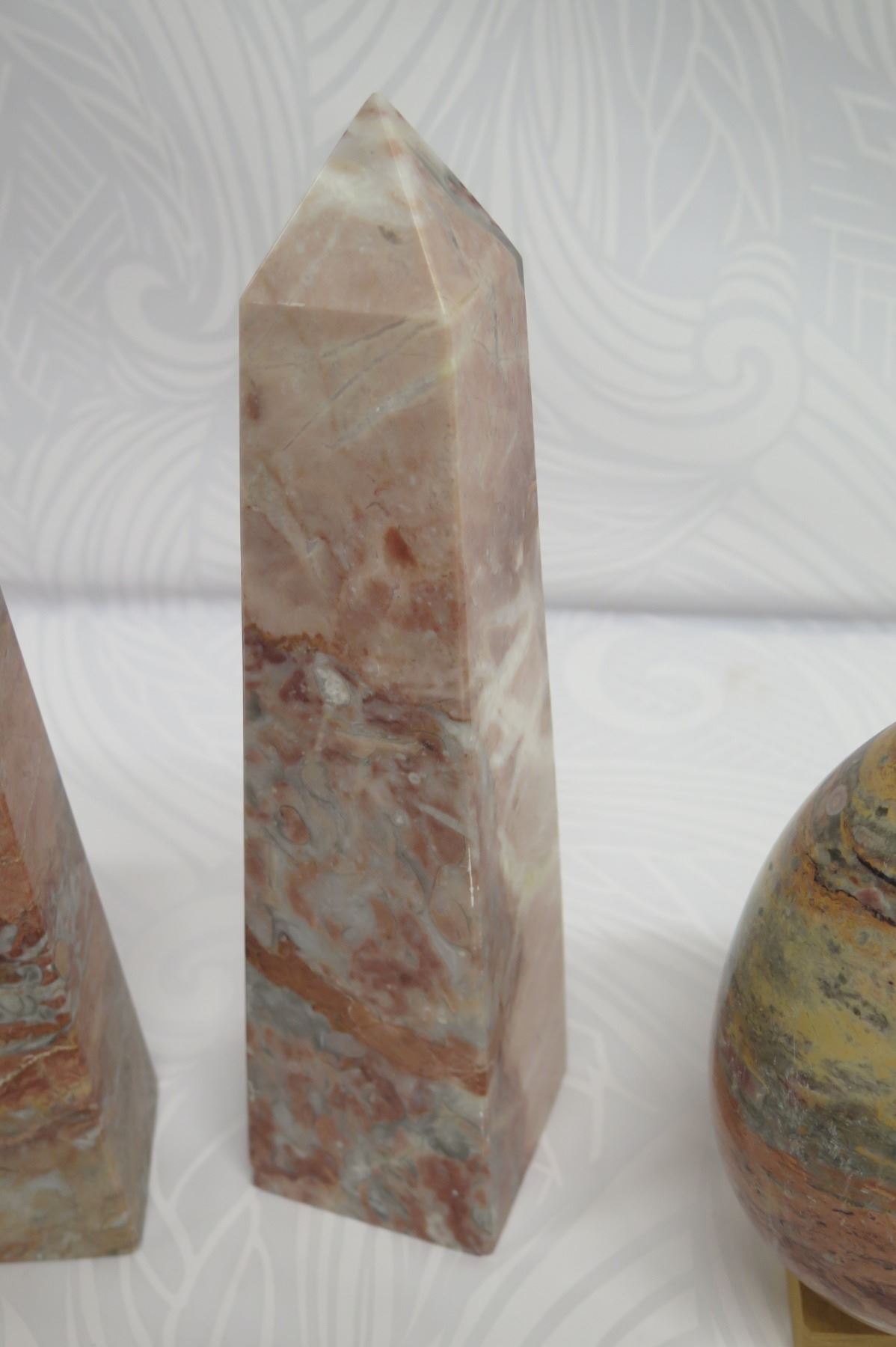 Accent Décor: 3 Natural Stone Obelisks and Egg (tallest approx. 12.5" height)