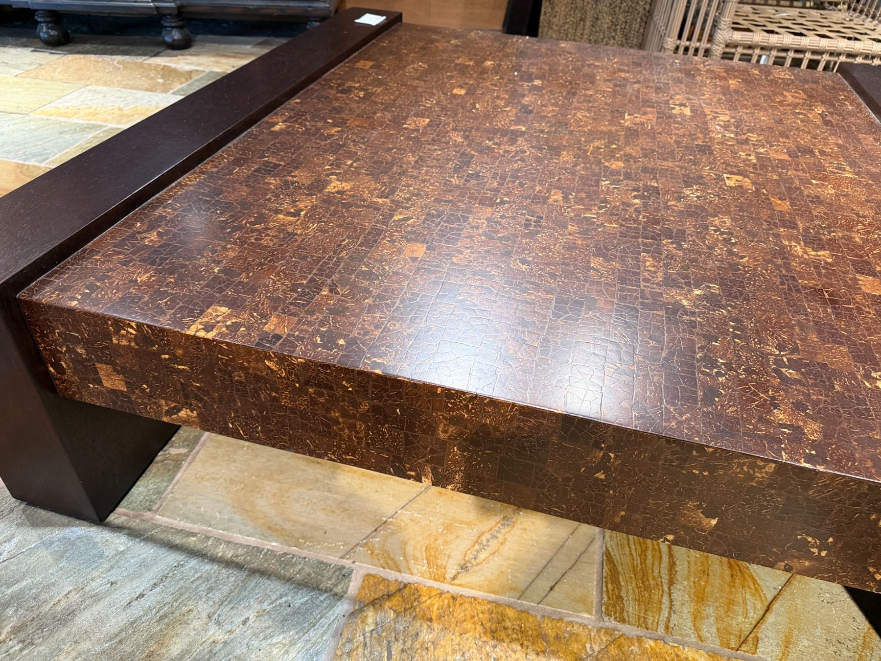 Adriana Hoyos Equador CoCo Cocktail Wooden Table w/ Crackle Finish Top 53" x 53" x 15"H