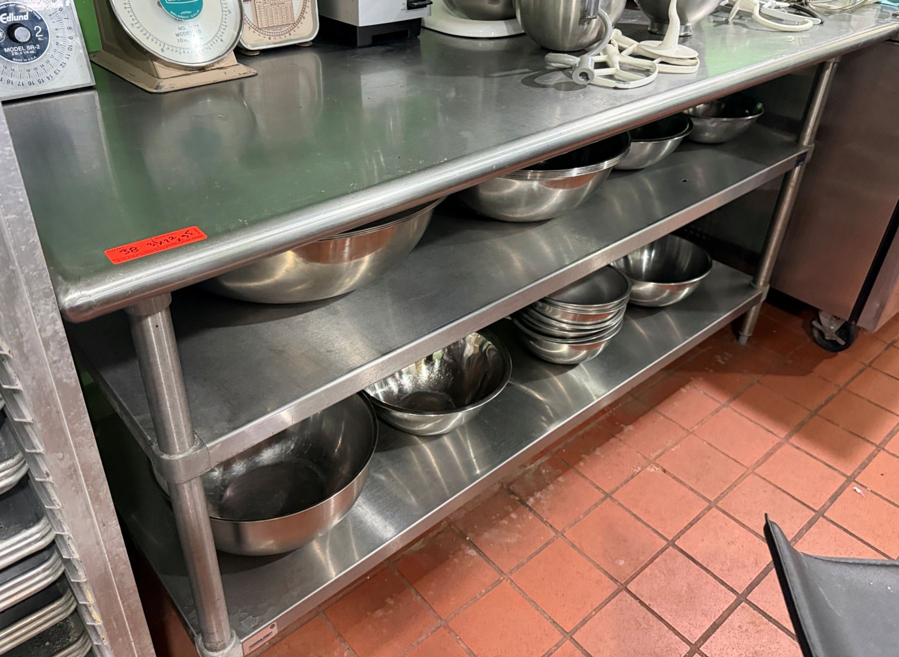 Advance Tabco Kitchen Work Table w/ 2 Undershelves 72" x 31" x 35"H (contents not included)