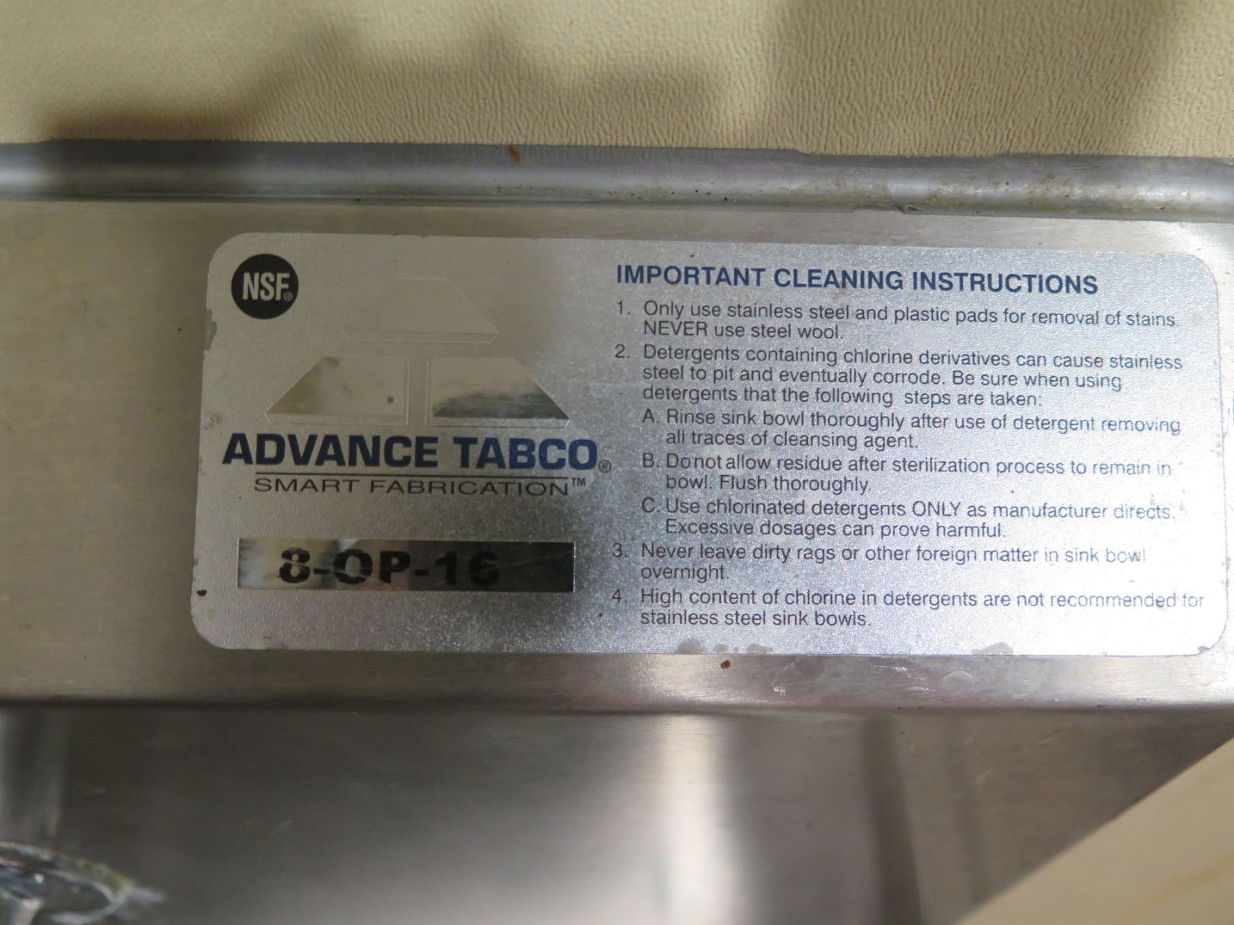 Advance Tabco Single Basin Sink 25"x22"x35"H
