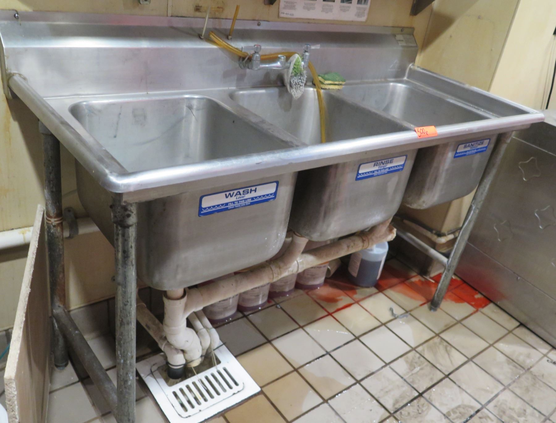 Advance Tabco Stainless Steel 3-Basin Sink 60"x20"x37"