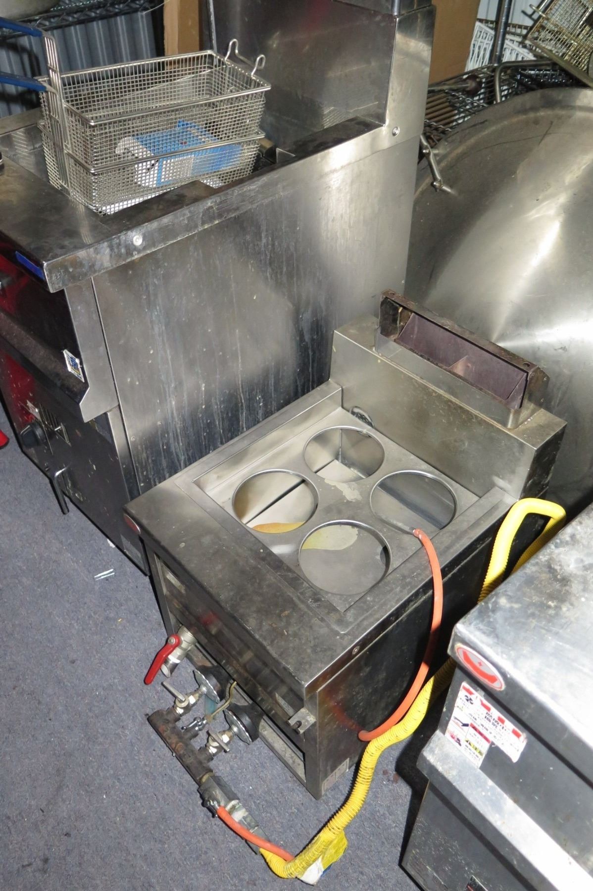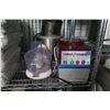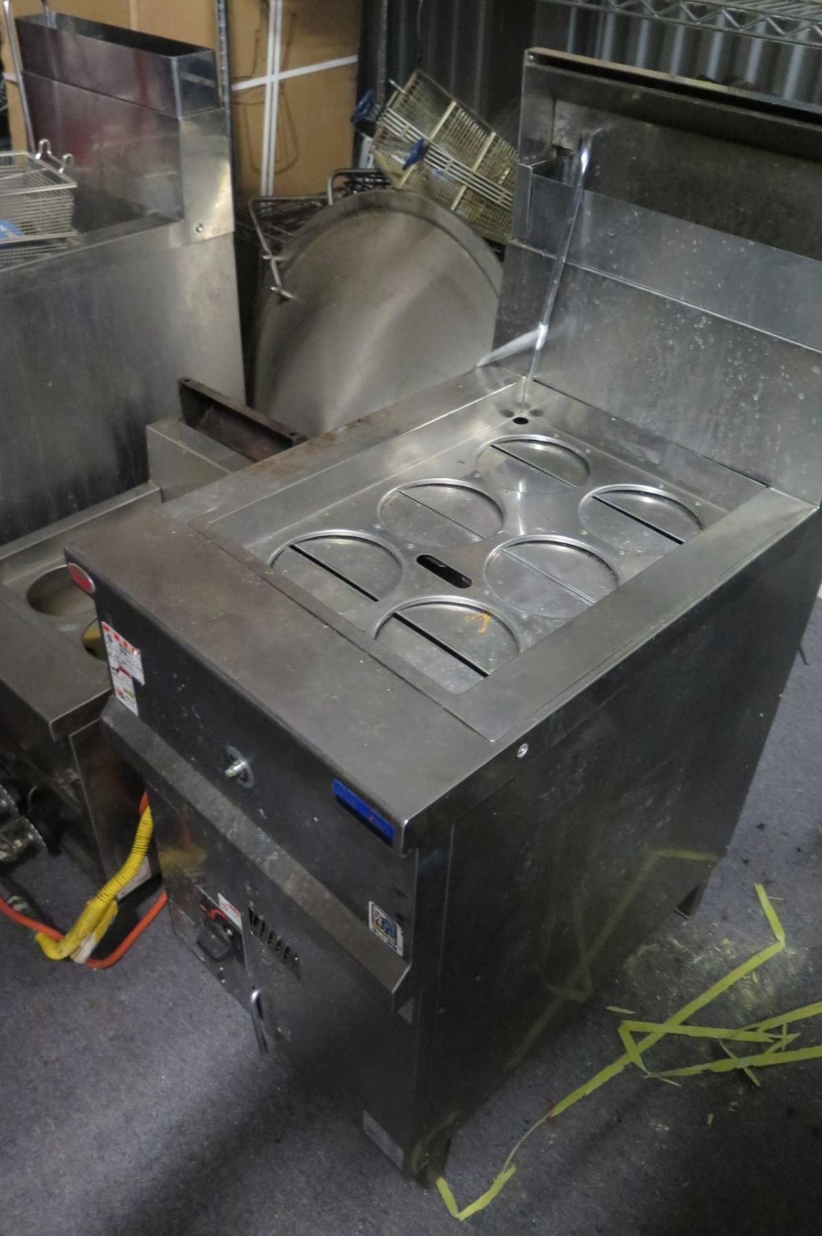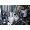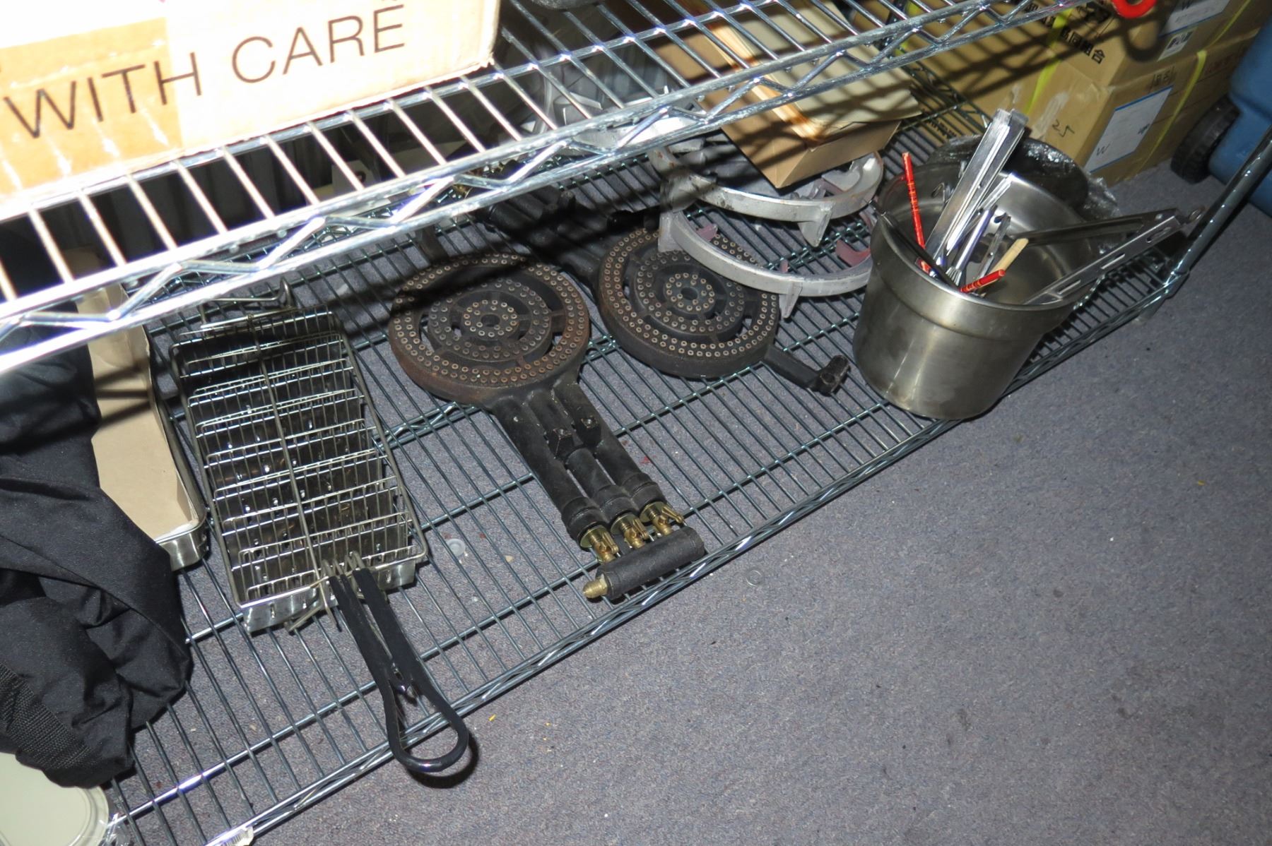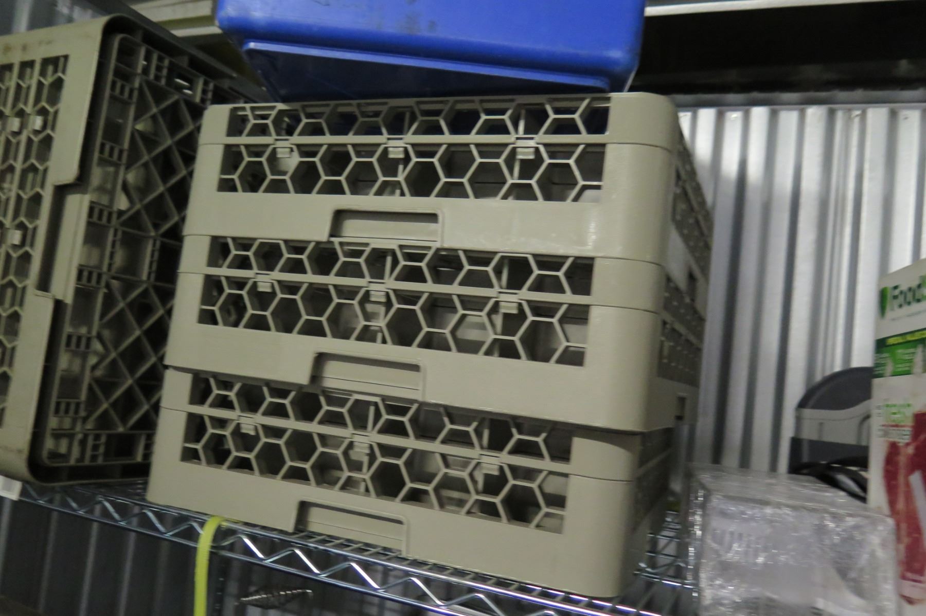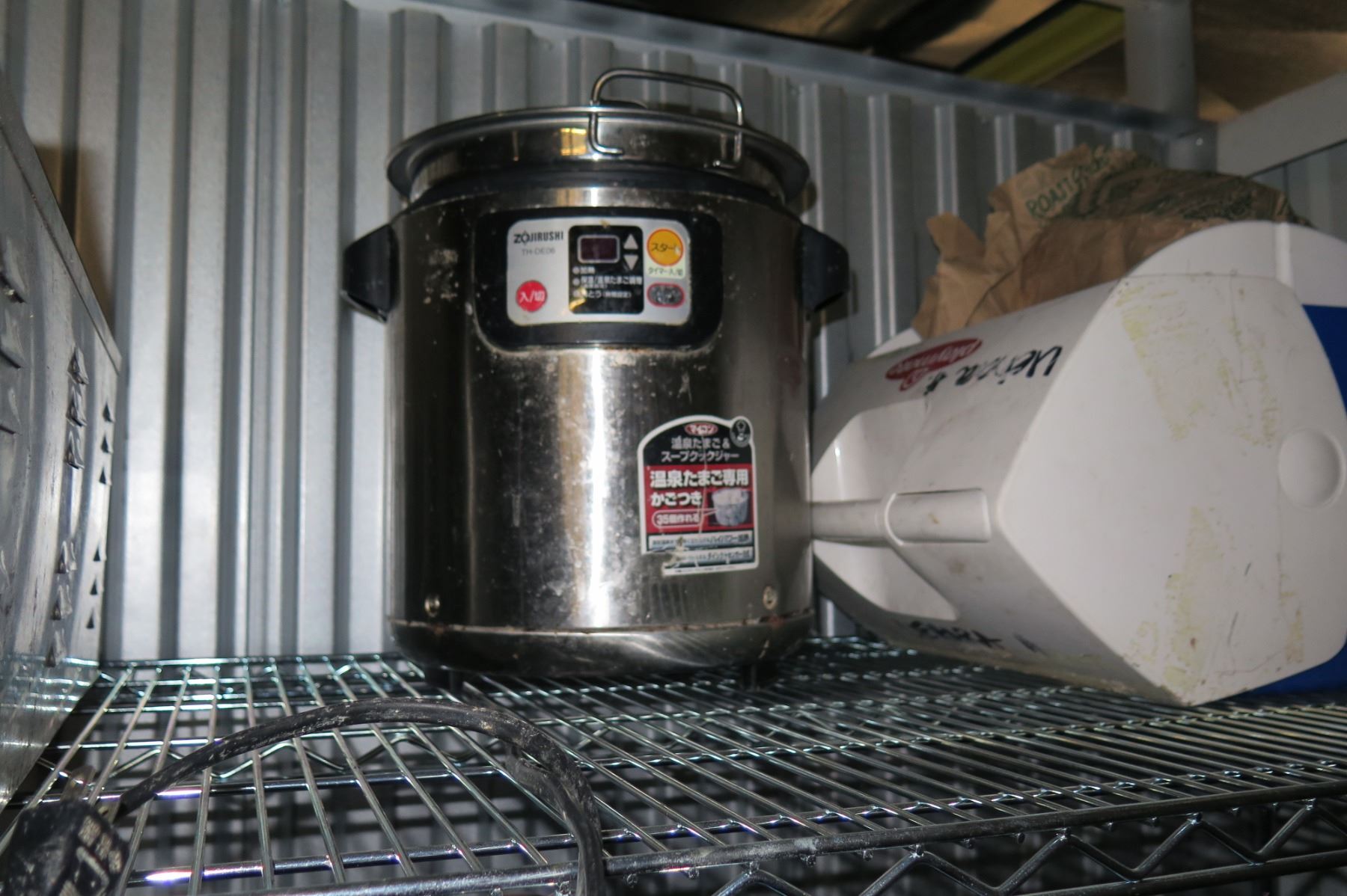 You are bidding on everything "in" the storage unit: restaurant equipment, Robot Coupe blender, 14 red retro metal barstools, sheet pans, microwaves, rice cookers, cash registers, faucets, shelving, glasses/bowls/dishes & serveware, pots, pans, foodservice supplies, shelving, burners, food warmers, faucets, containers & MORE!