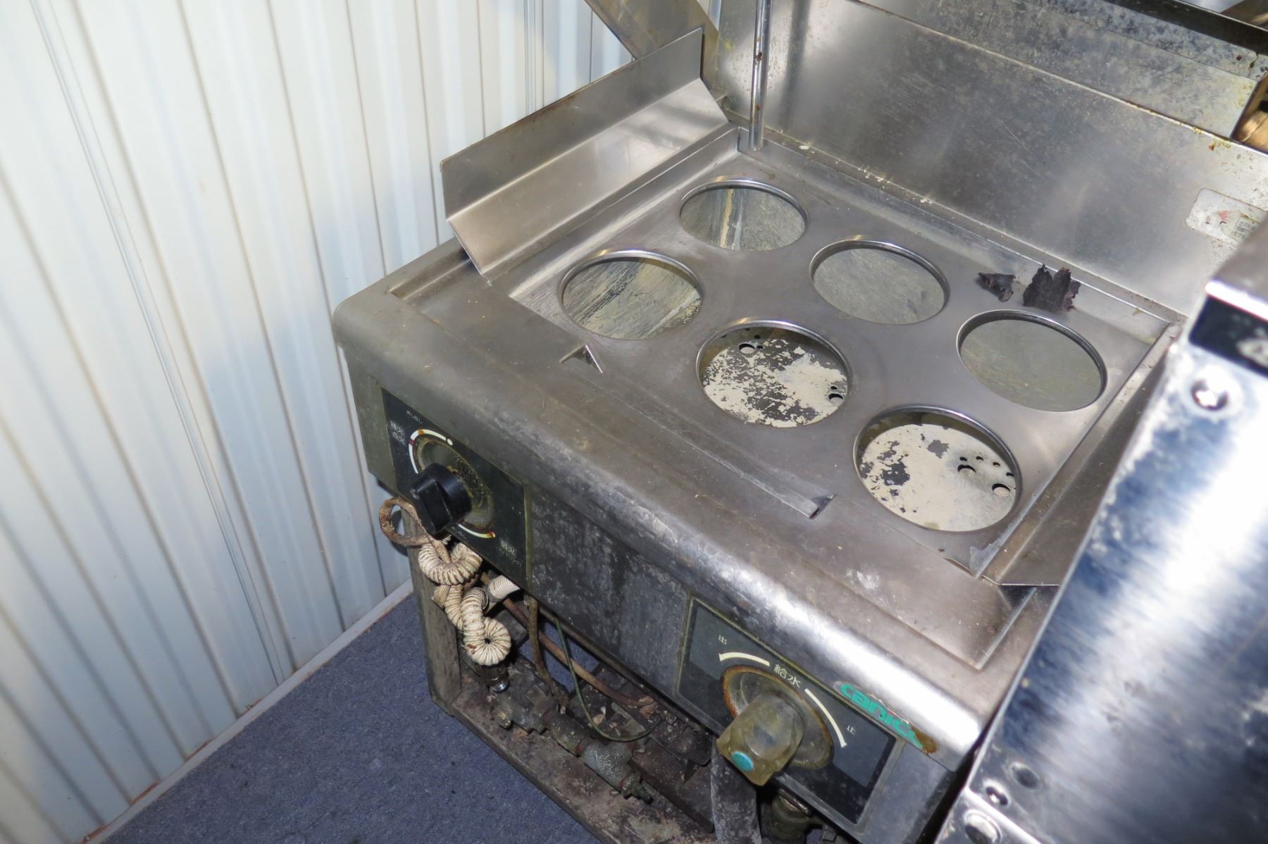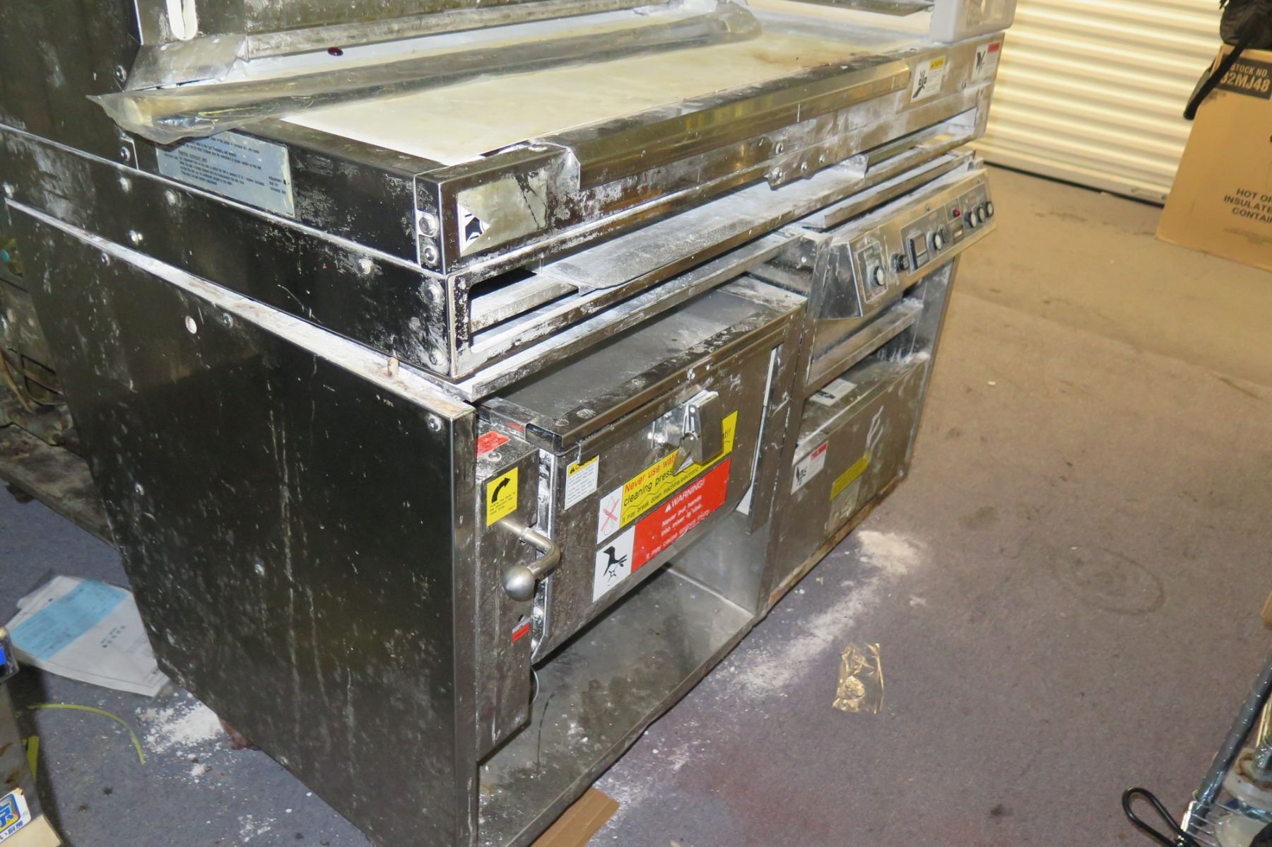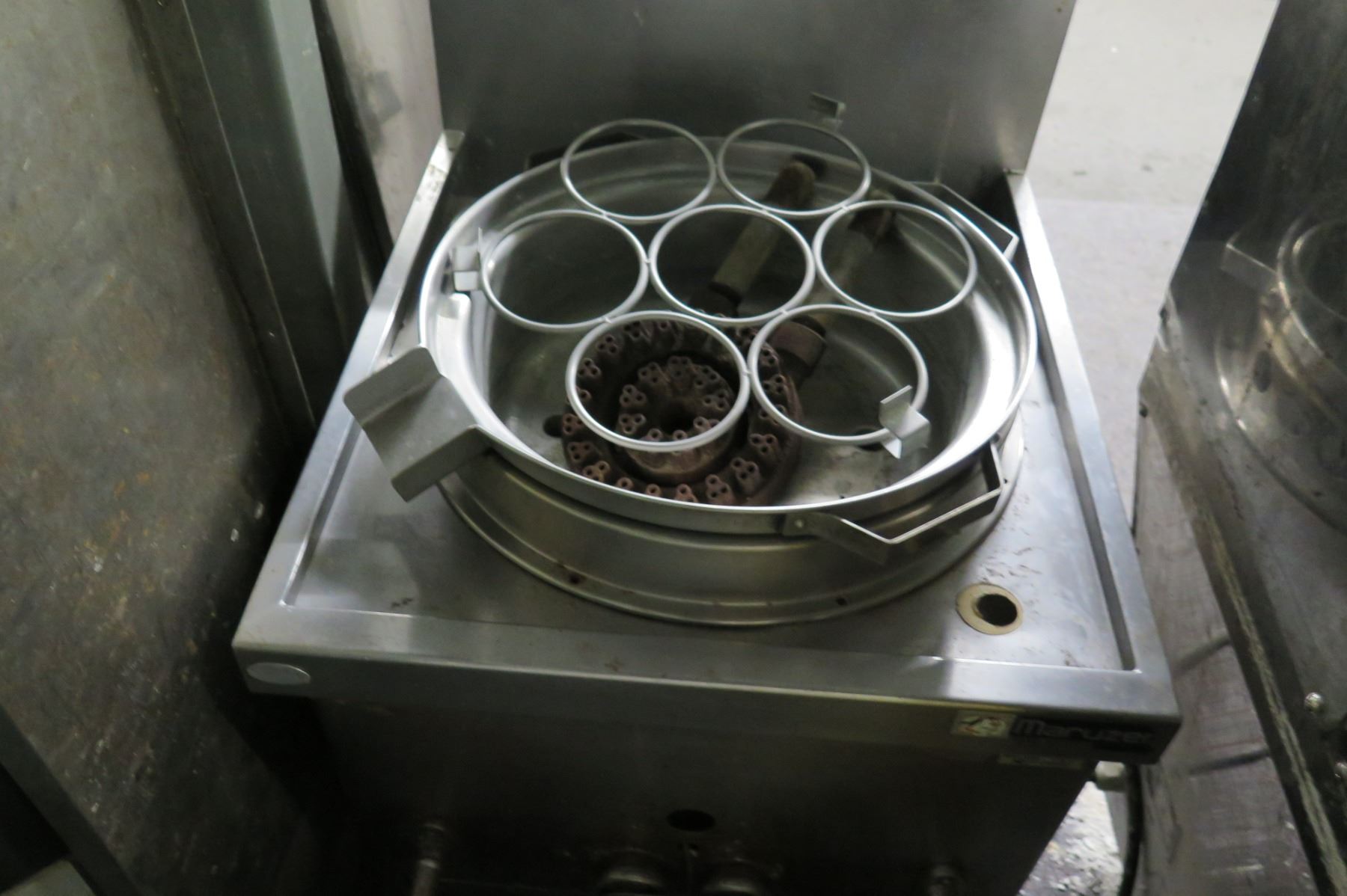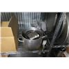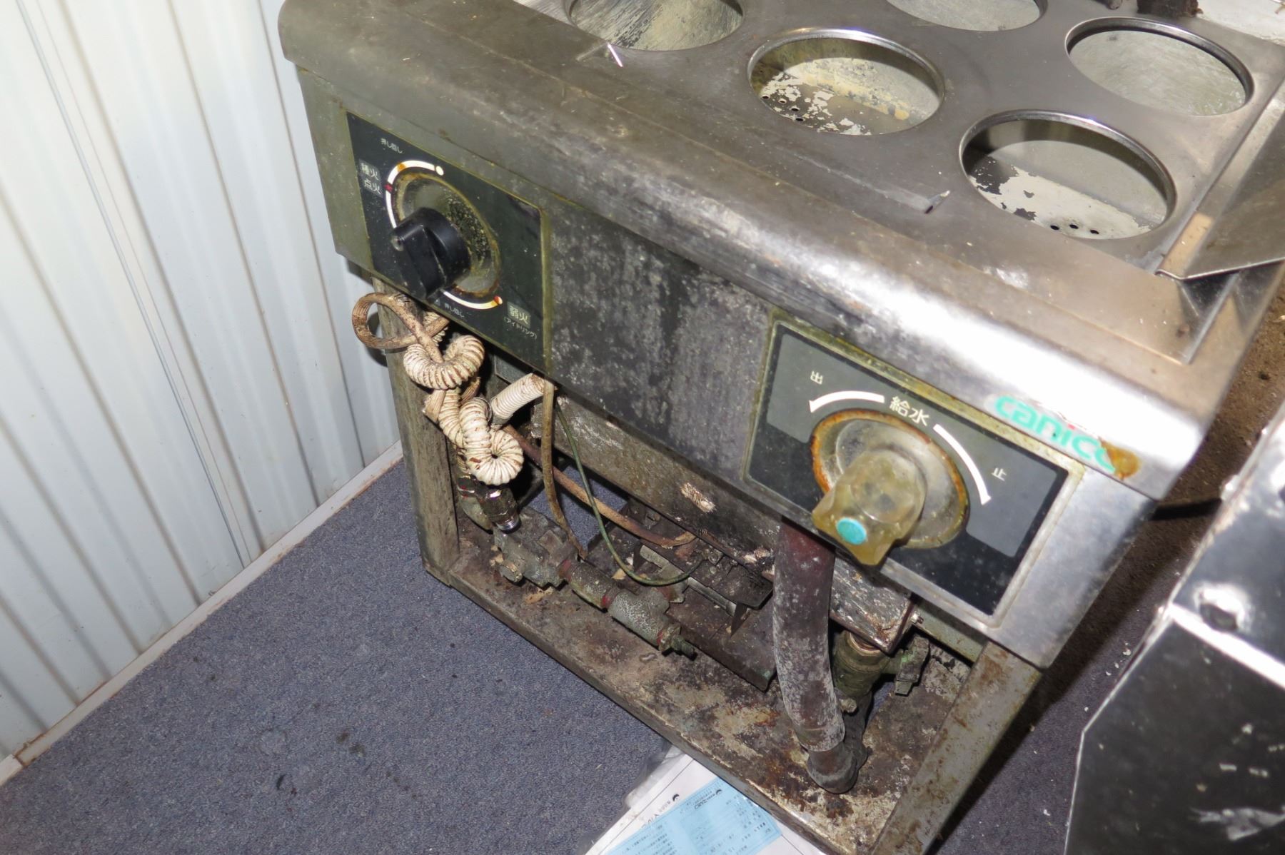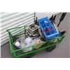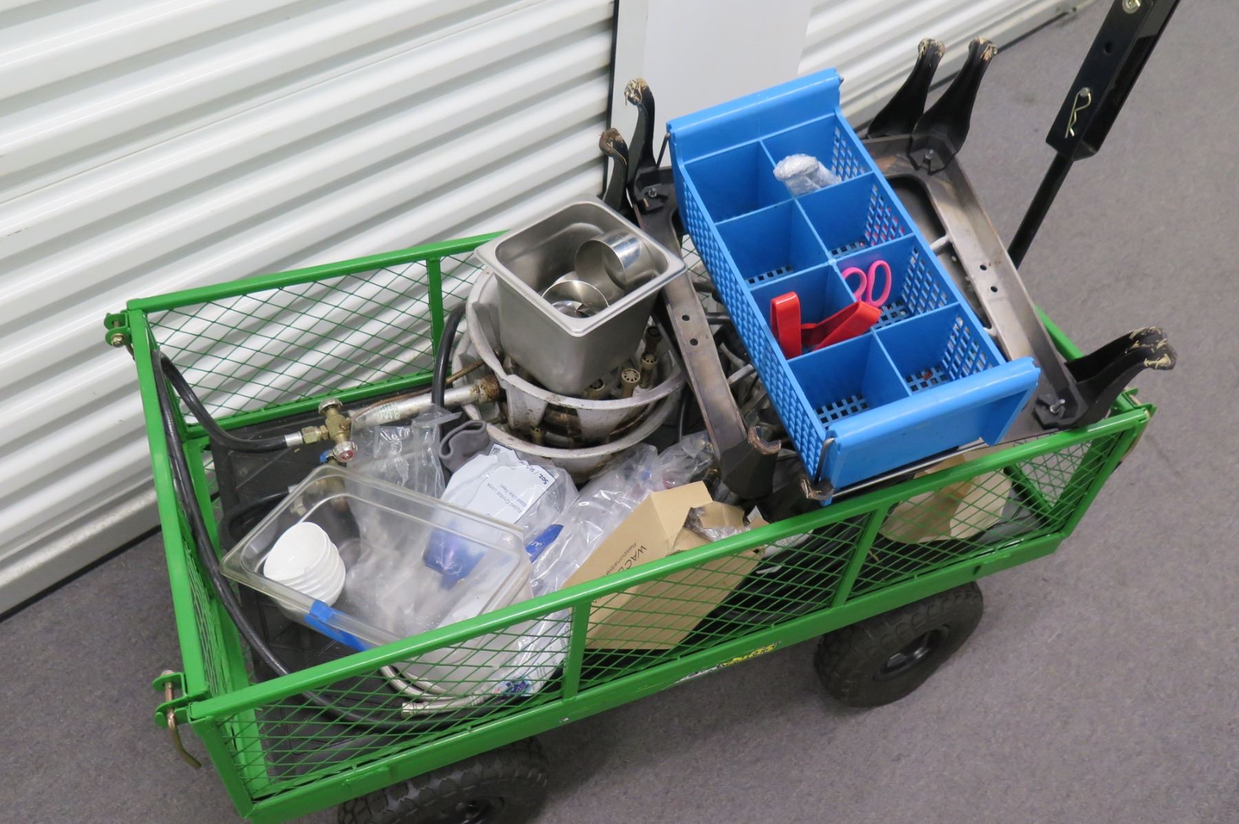 You are bidding on everything "in" the storage unit: restaurant equipment, Robot Coupe blender, 14 red retro metal barstools, sheet pans, microwaves, rice cookers, cash registers, faucets, shelving, glasses/bowls/dishes & serveware, pots, pans, foodservice supplies, shelving, burners, food warmers, faucets, containers & MORE!