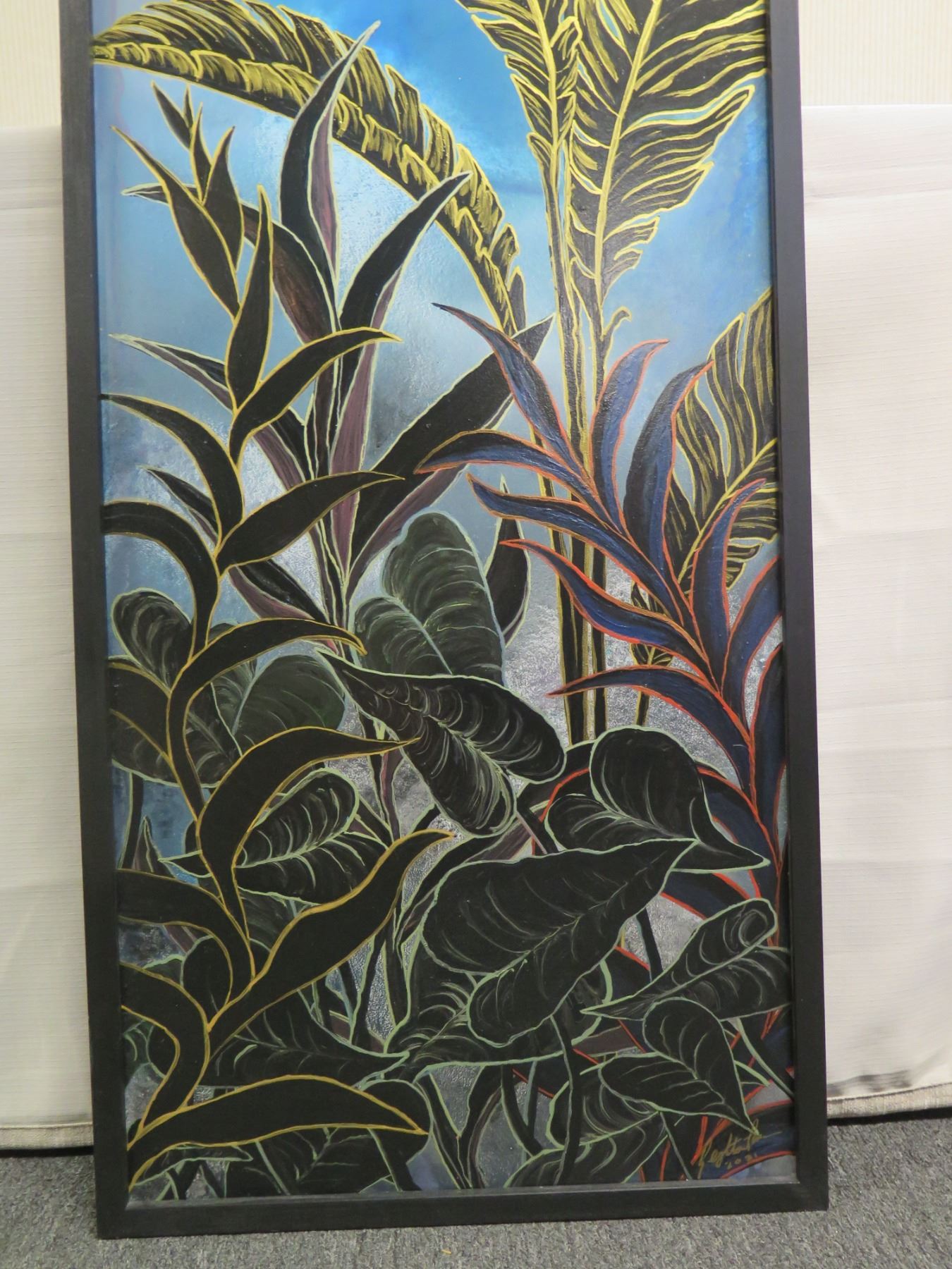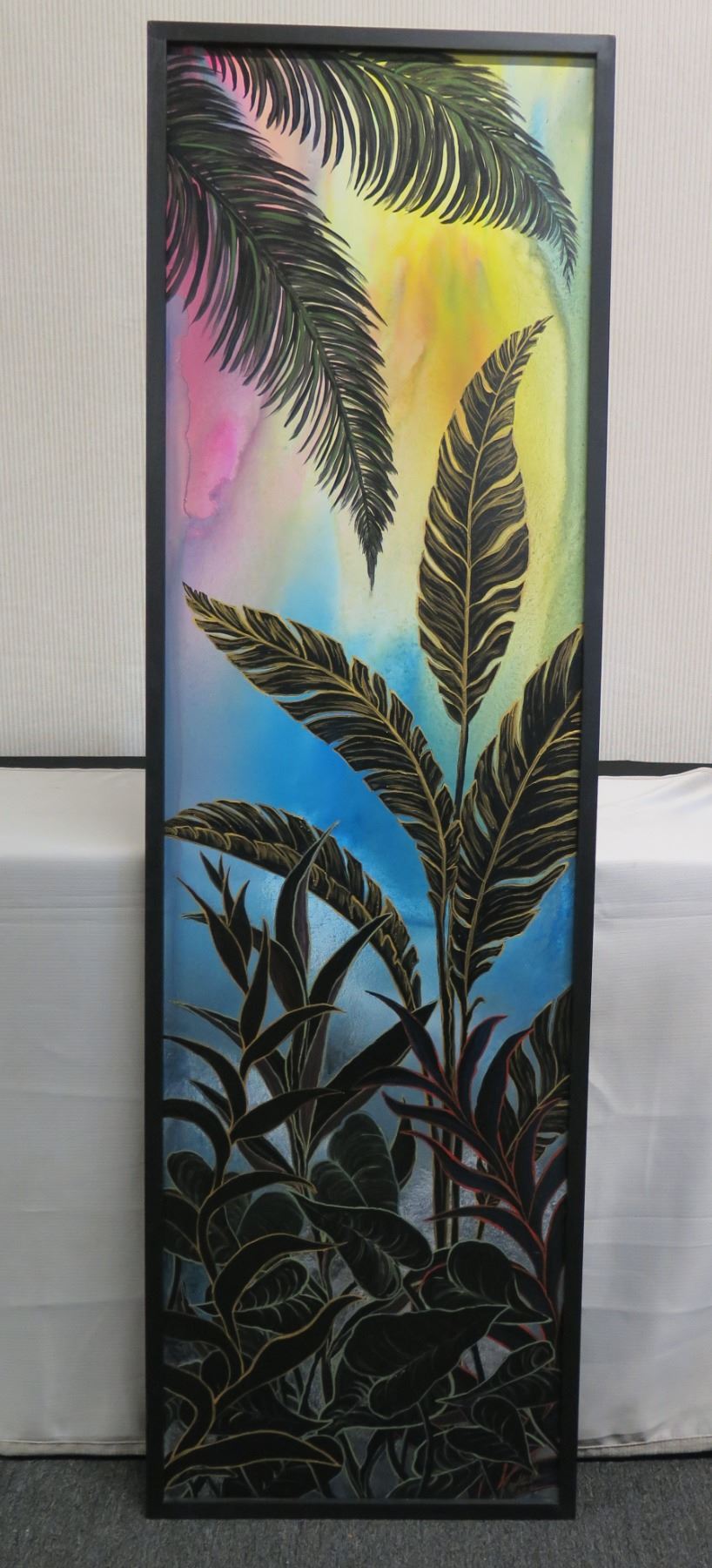 Aloha Ipo - Nature Lover Acrylic Painting on Wood Panel. Signed by Artist Leighton Lam, 19"x63" Framed.