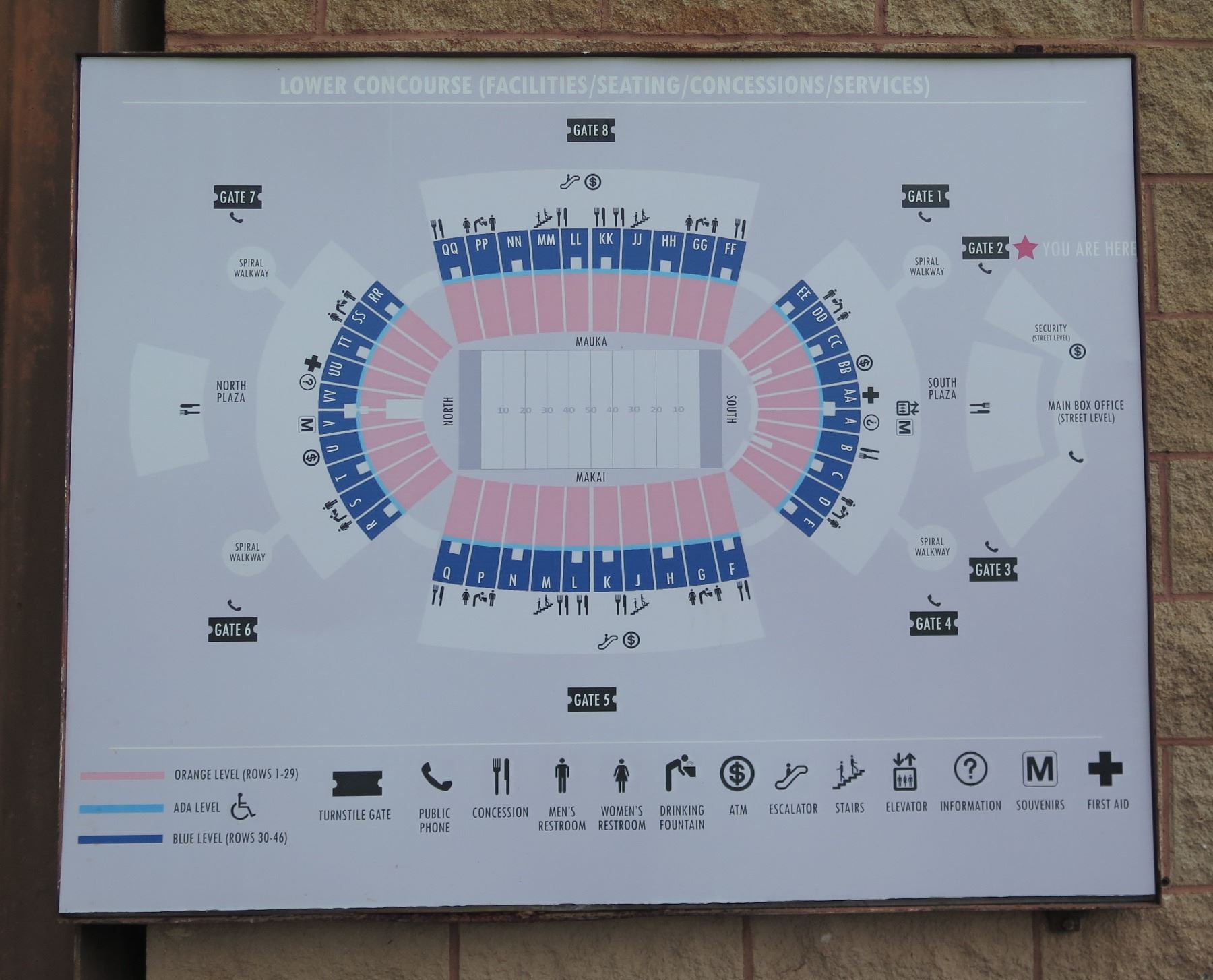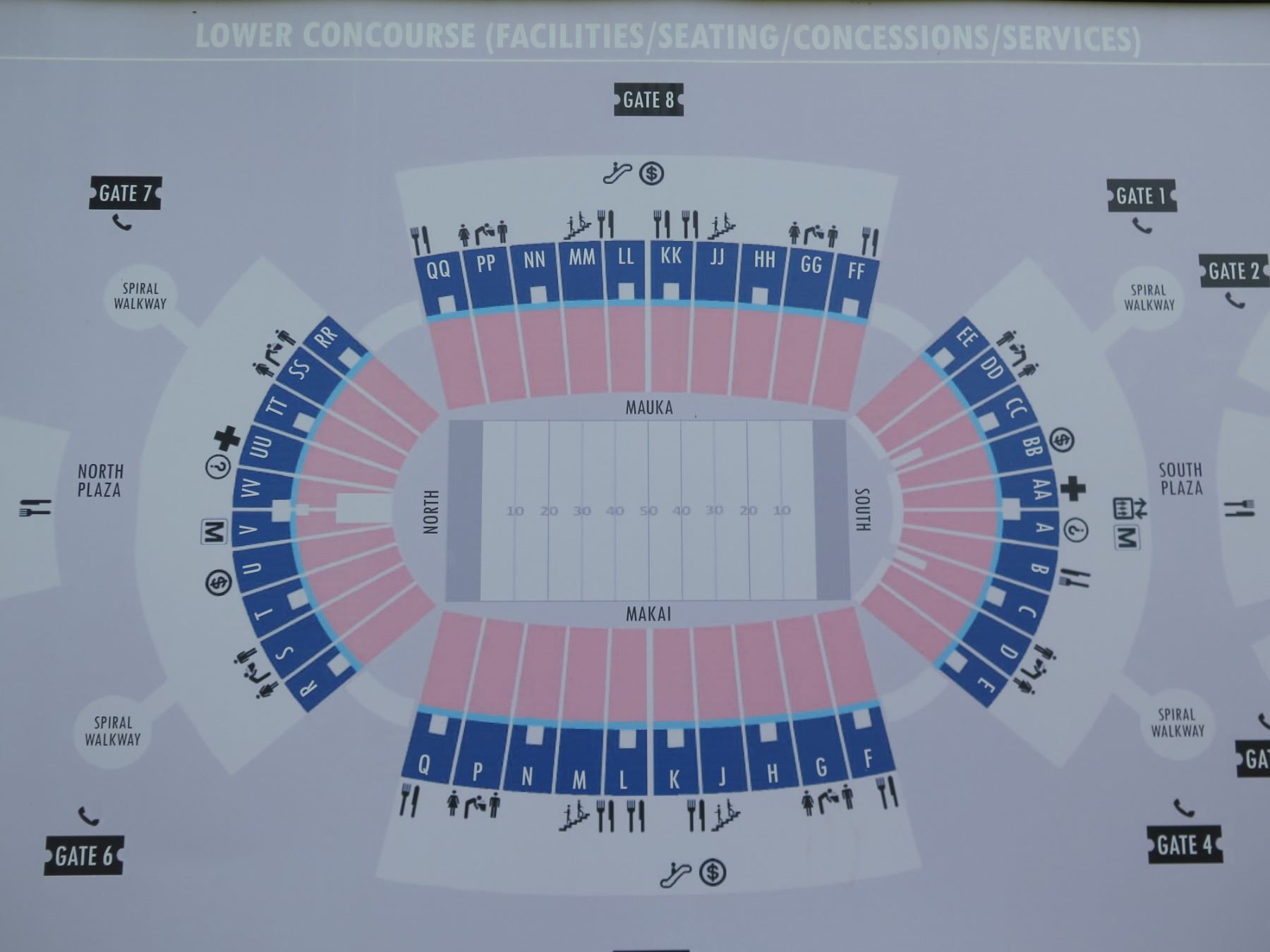 Aloha Stadium Lower Concourse Directory (Facilities, Seating, etc) 58"x46"