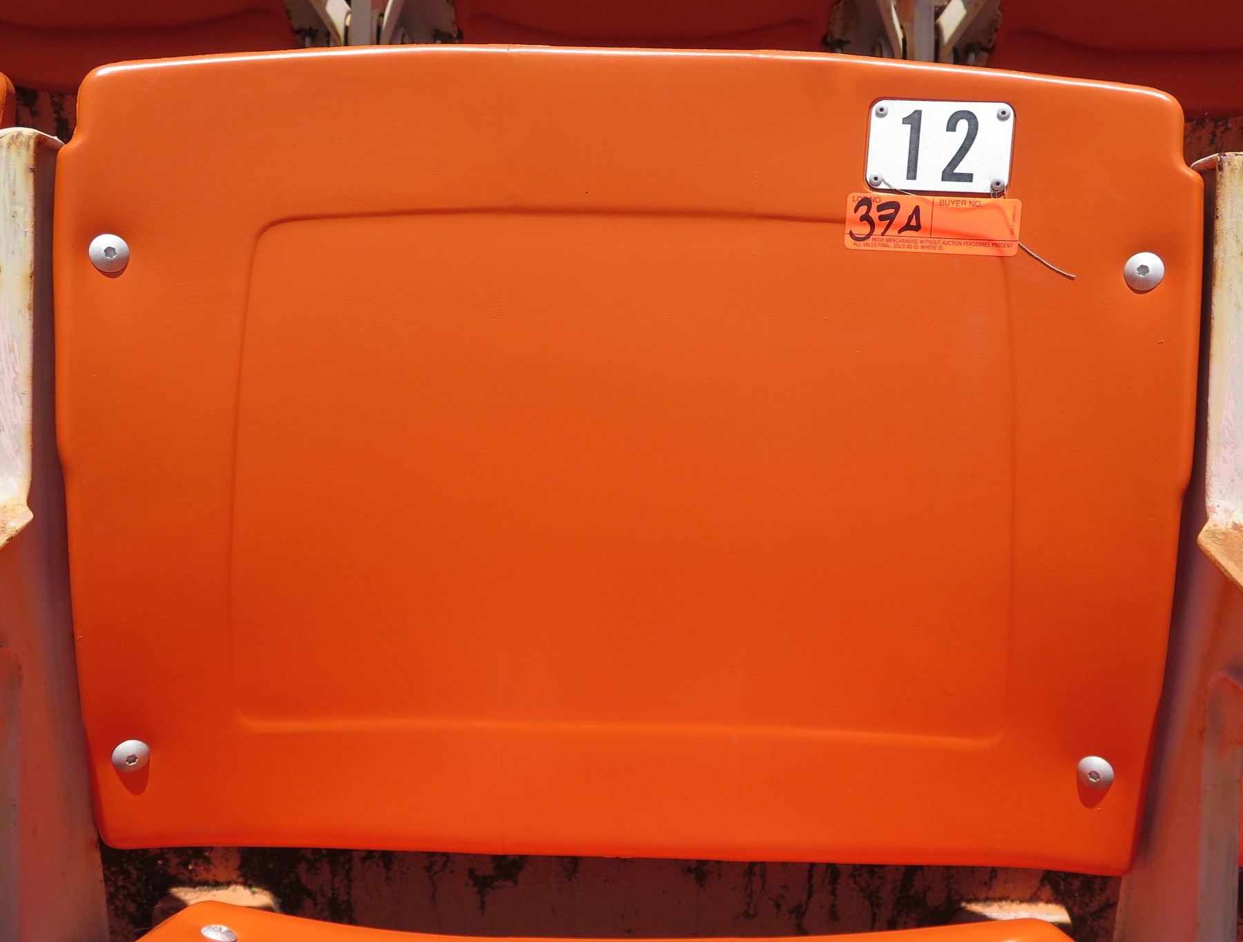 Aloha Stadium Seat Back, Orange, Seat 12. Note: Seats have been removed for pick up