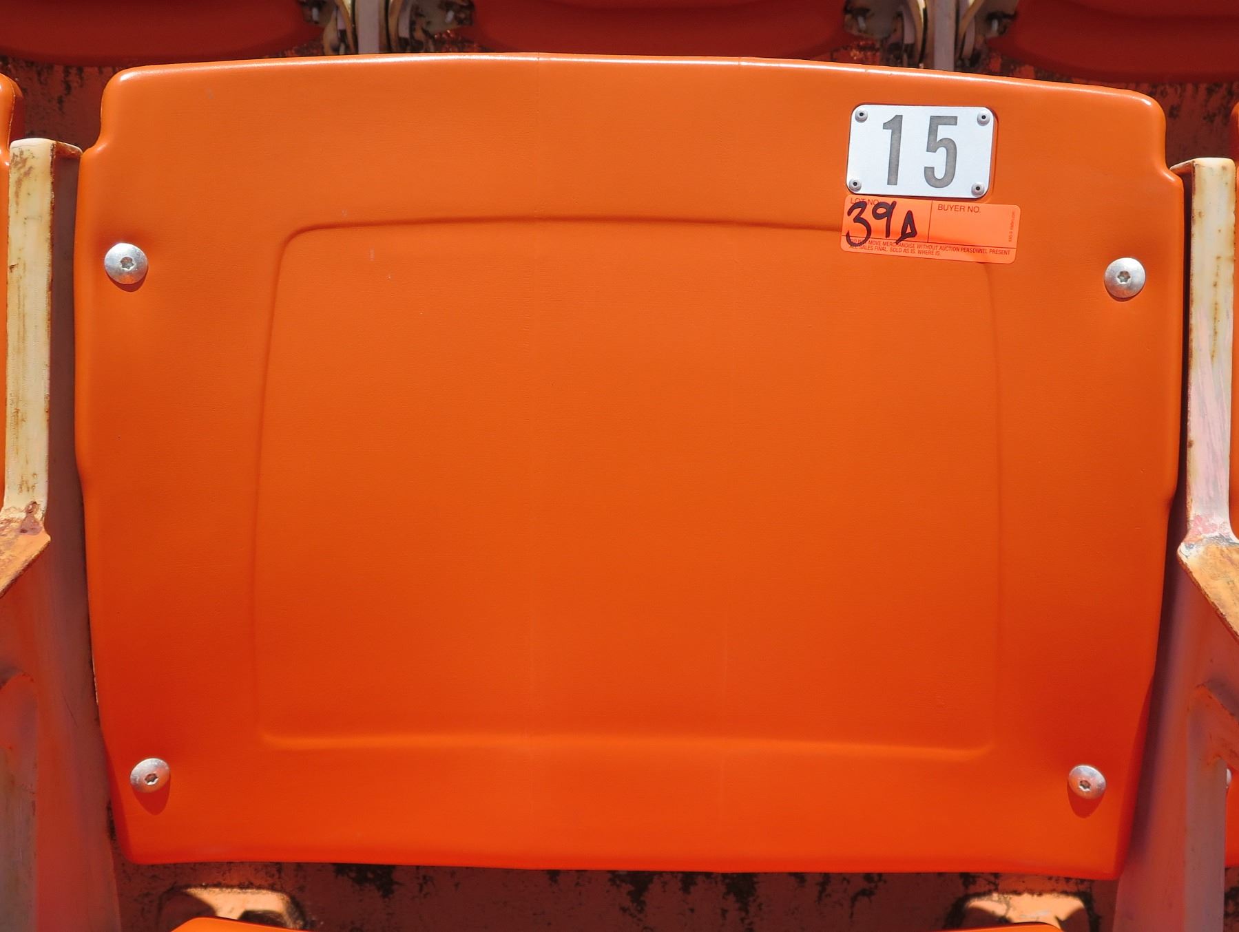 Aloha Stadium Seat Back, Orange, Seat 15. Note: Seats have been removed for pick up