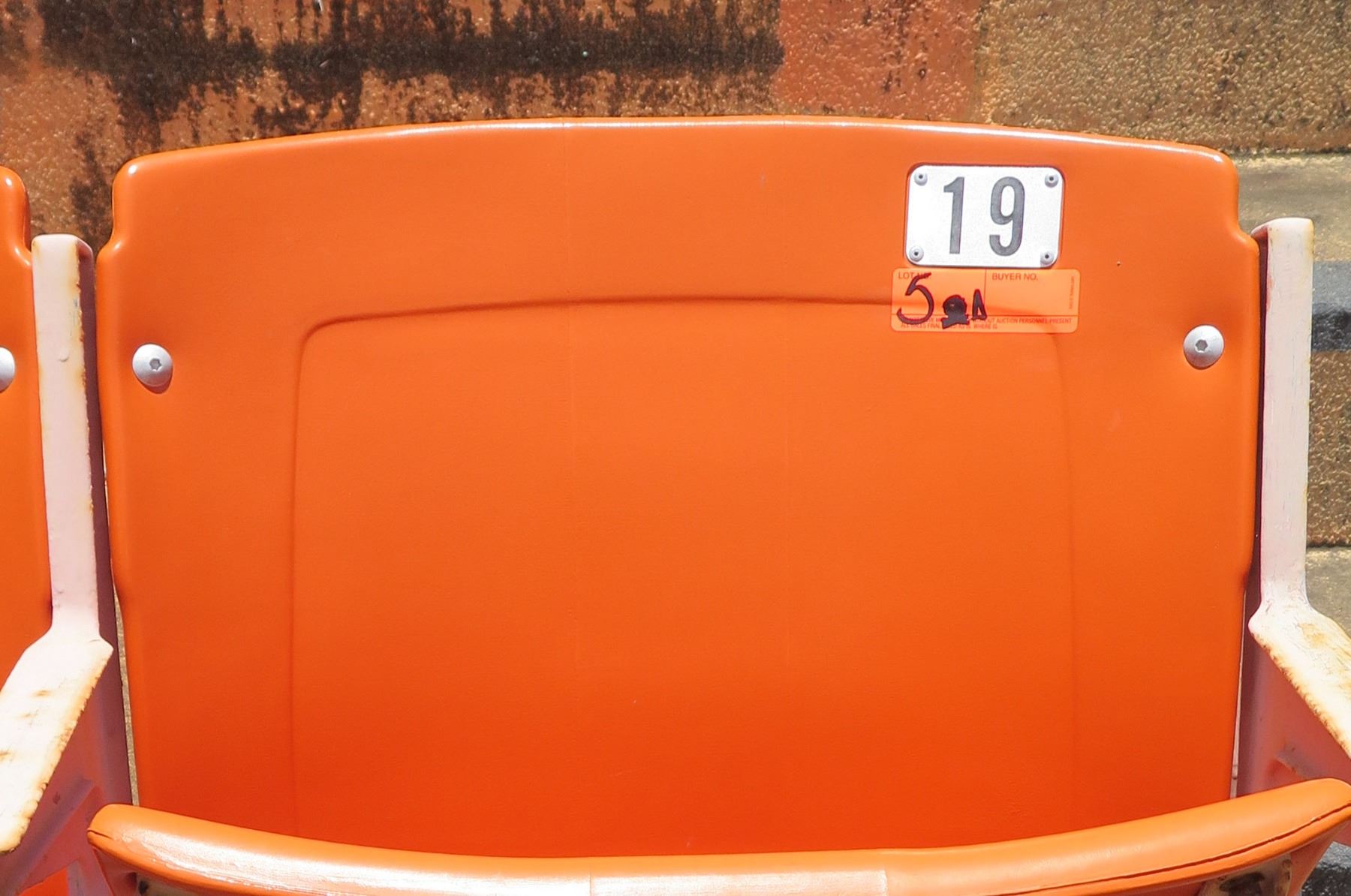 Aloha Stadium Seat Back, Orange, Seat 19. Note: Seats have been removed for pick up