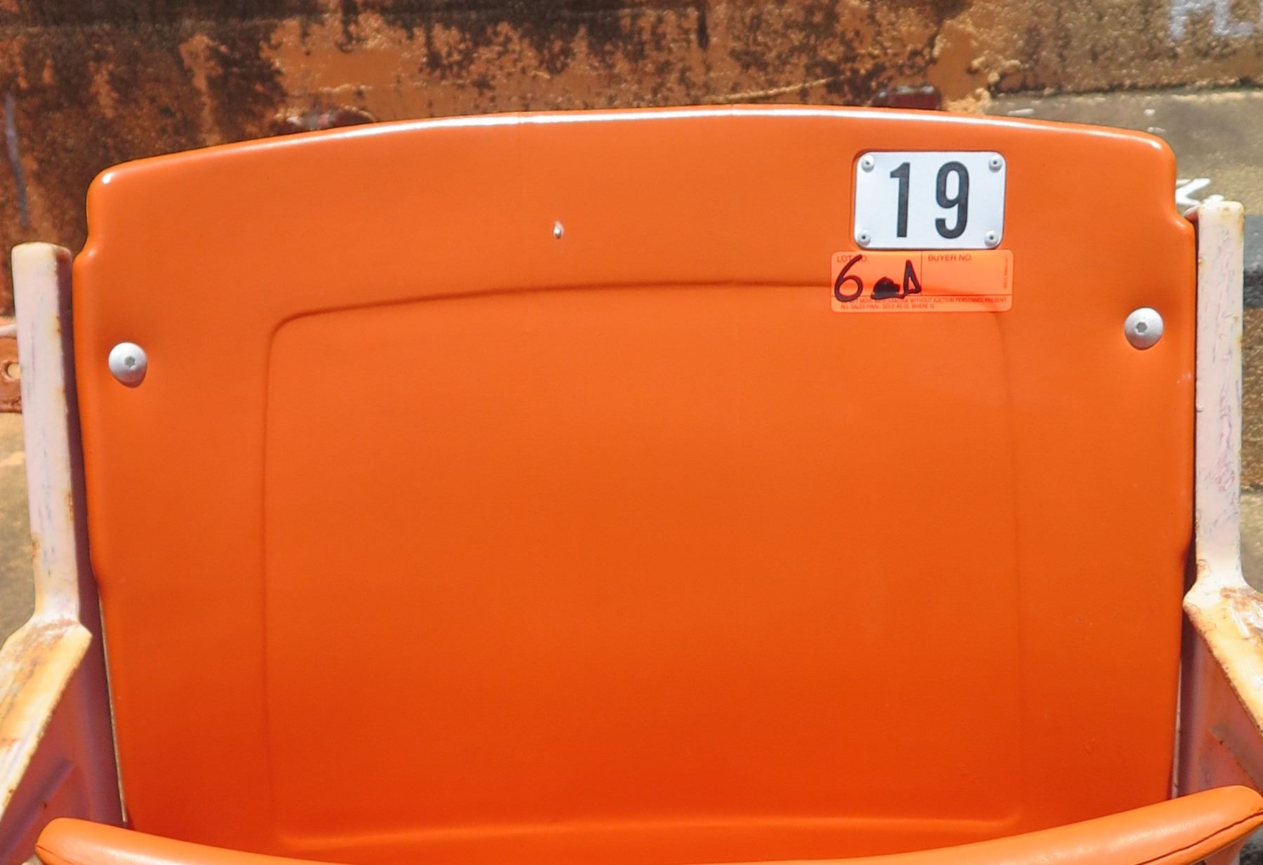 Aloha Stadium Seat Back, Orange, Seat 19. Note: Seats have been removed for pick up