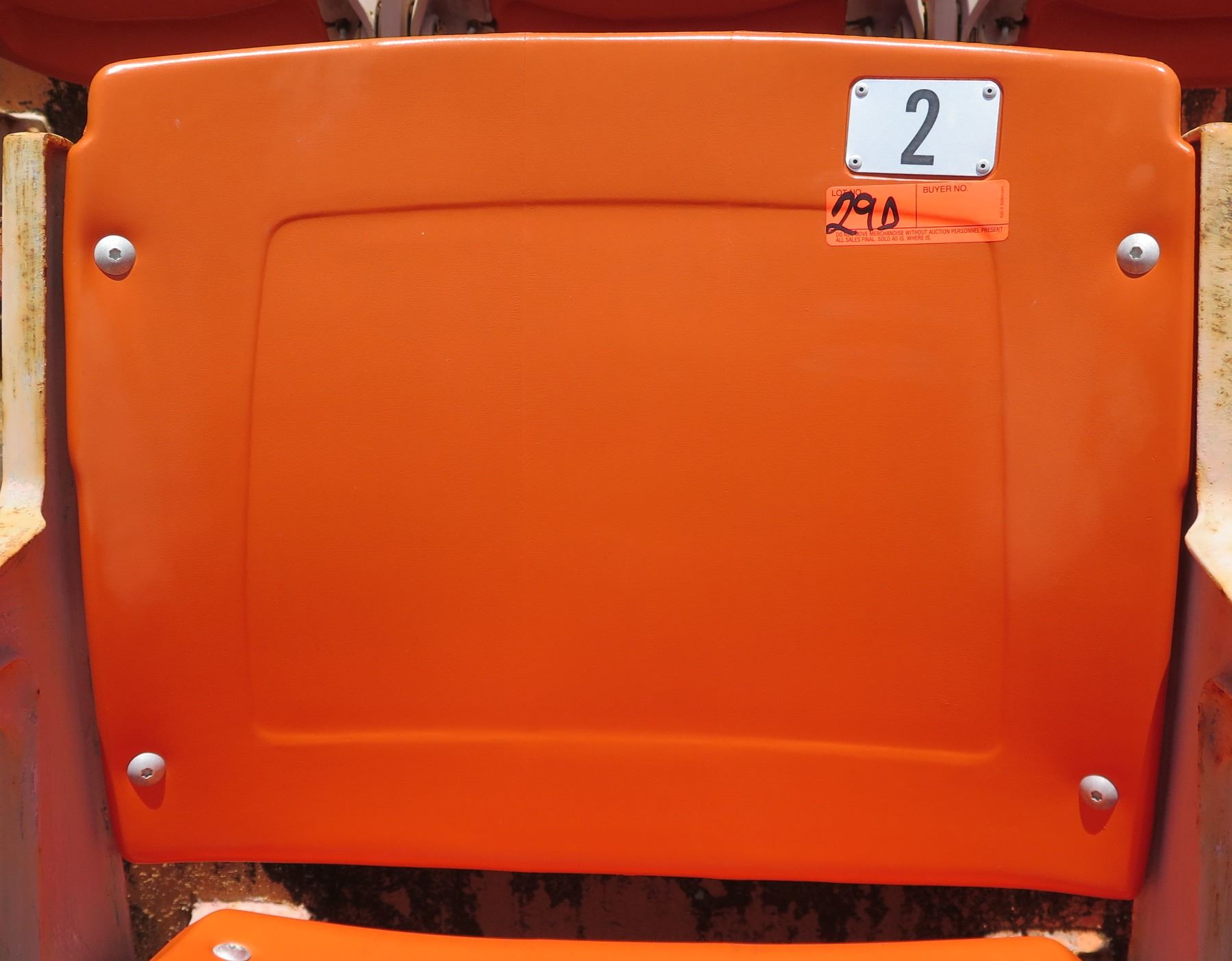 Aloha Stadium Seat Back, Orange, Seat 2. Note: Seats have been removed for pick up