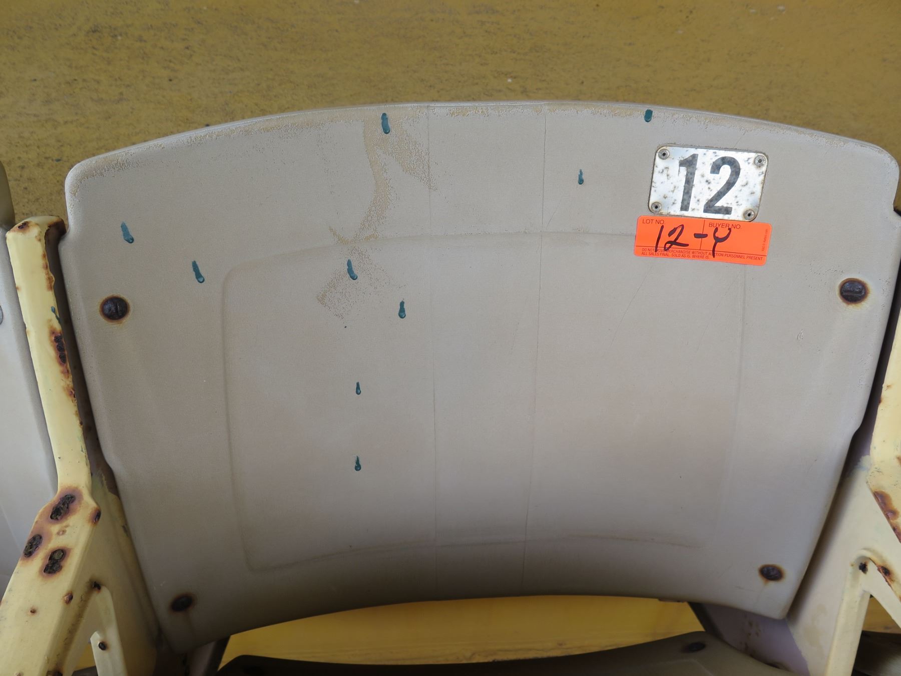 Aloha Stadium Seat Back, "Yellow" (badly faded), Section R, Row 7, Seat 12