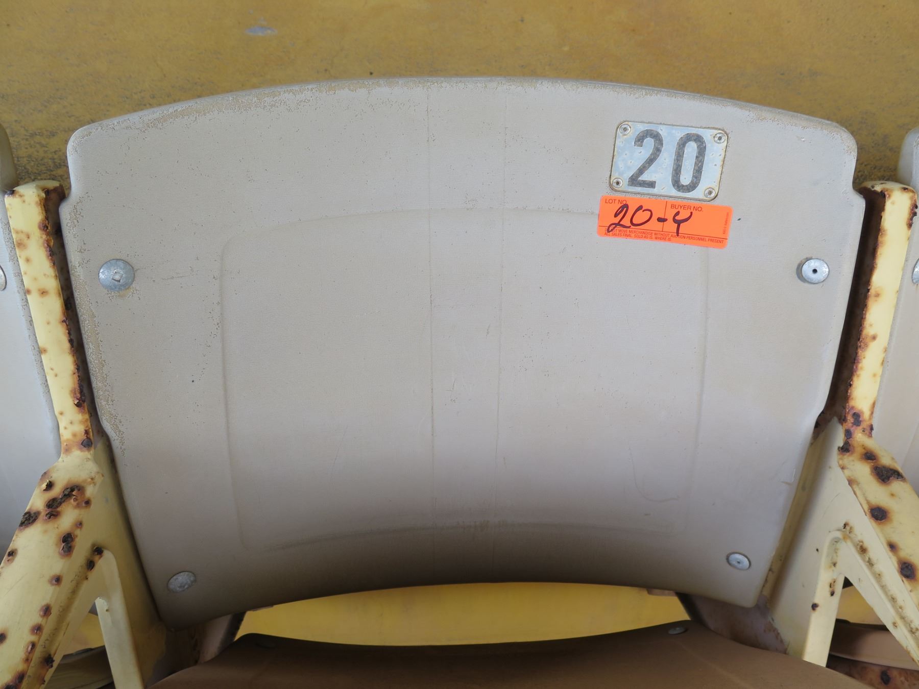 Aloha Stadium Seat Back, "Yellow" (badly faded), Section R, Row 7, Seat 20