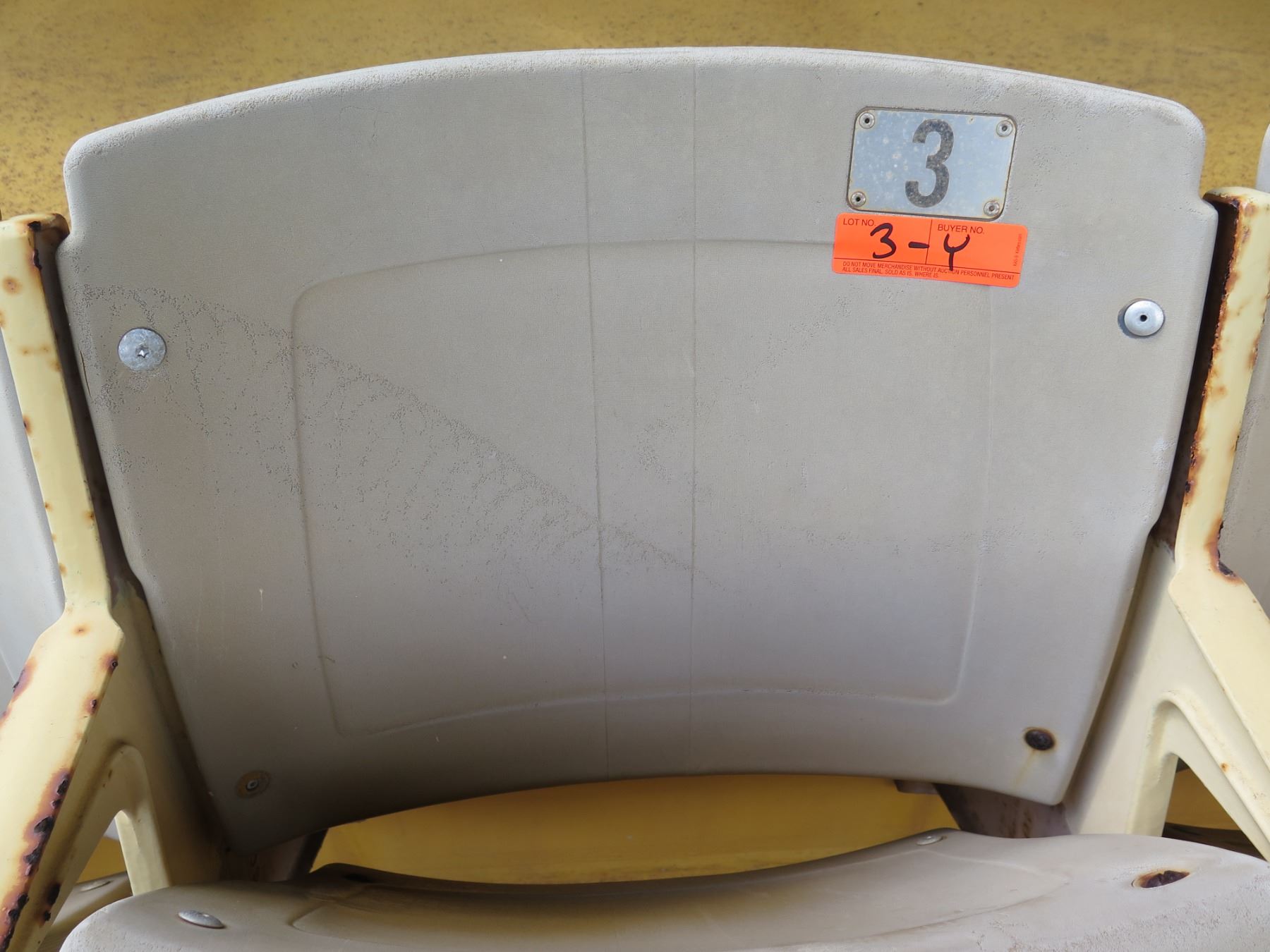 Aloha Stadium Seat Back, "Yellow" (badly faded), Section R, Row 7, Seat 3