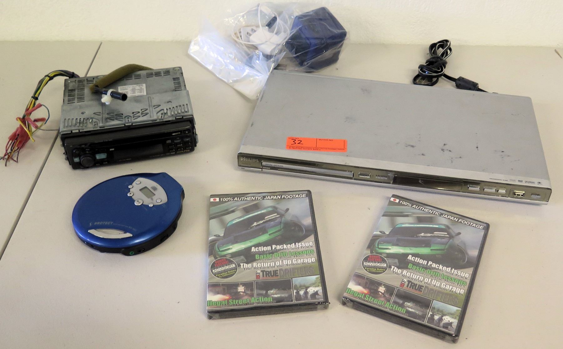 Alpine Car Stereo, Phillips DVD Player, Portable CD Player & 2 DVDs