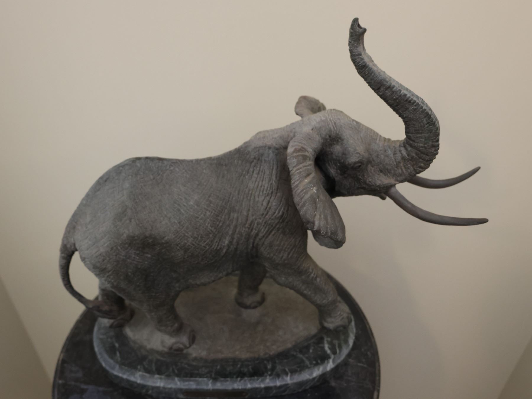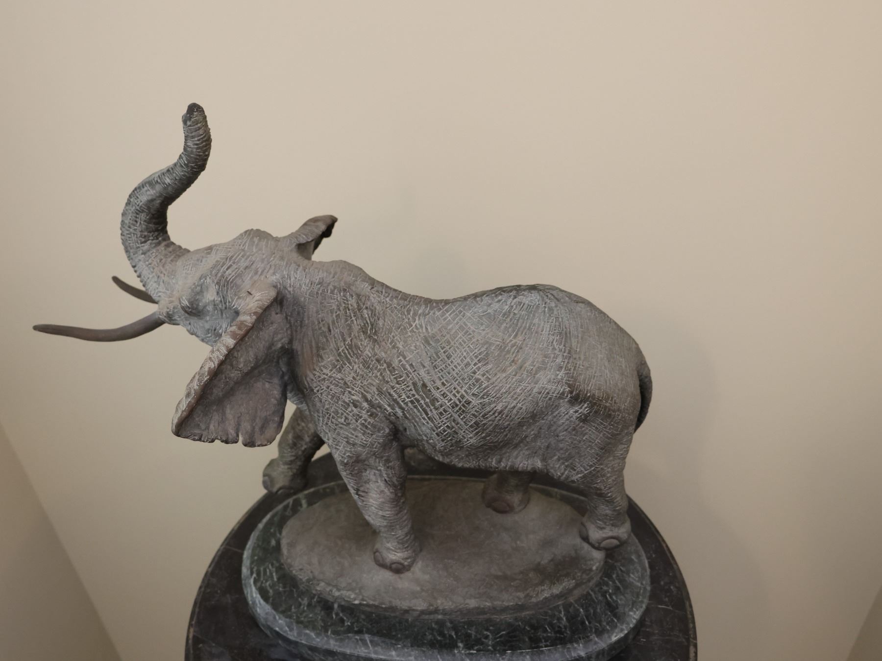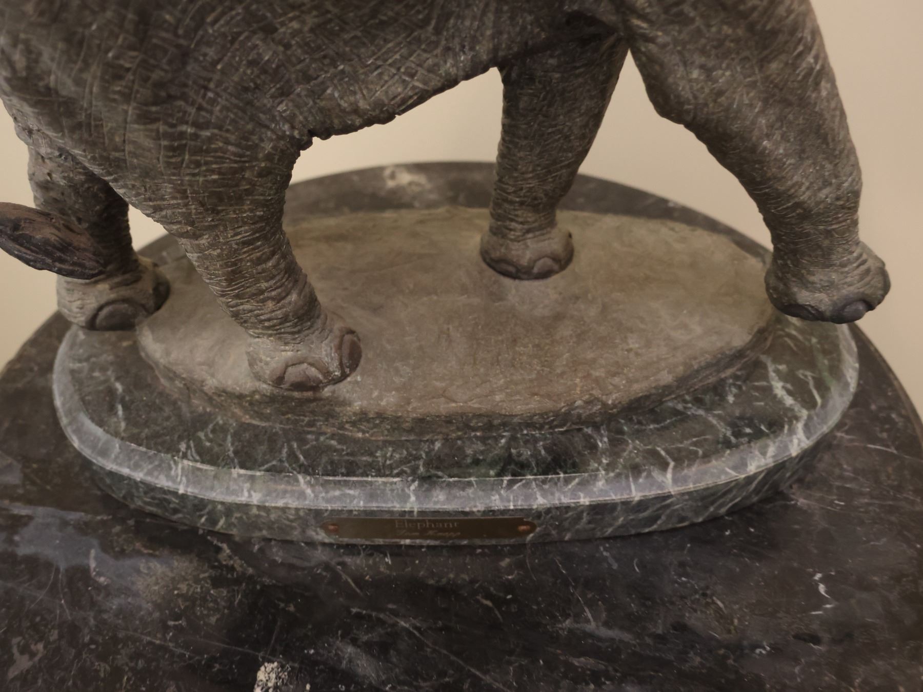 American Cast Bronze Sculpture Titled Elephant Limited Edition 90/850 by Tom Knapp on Marble Base 17"L x 16"H