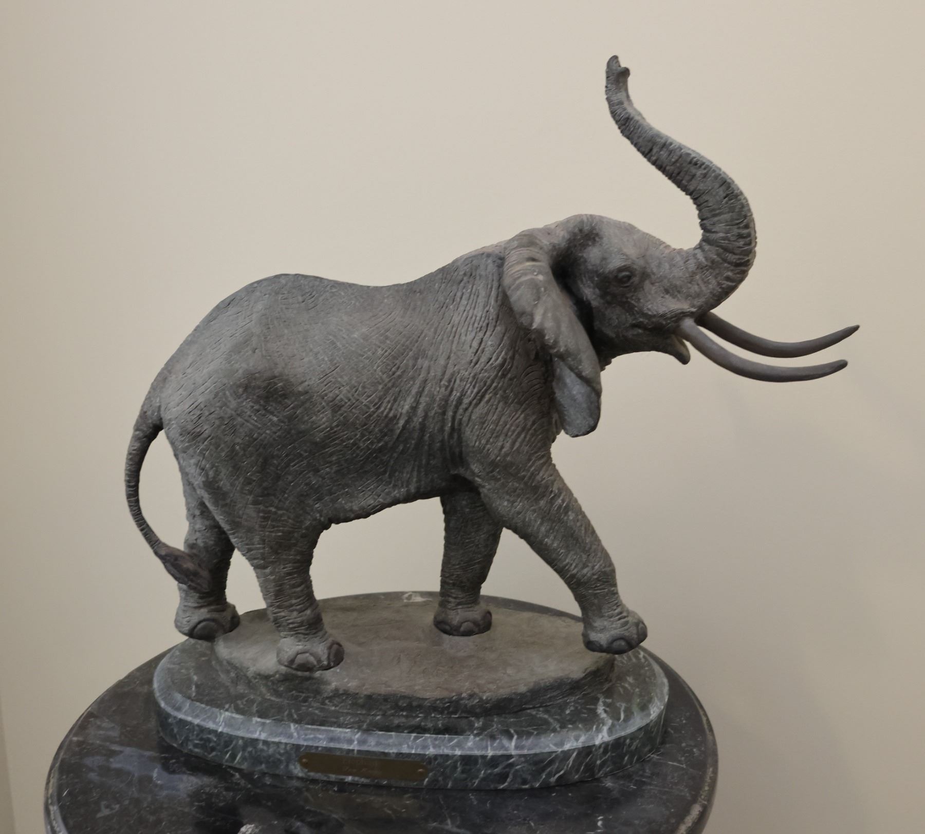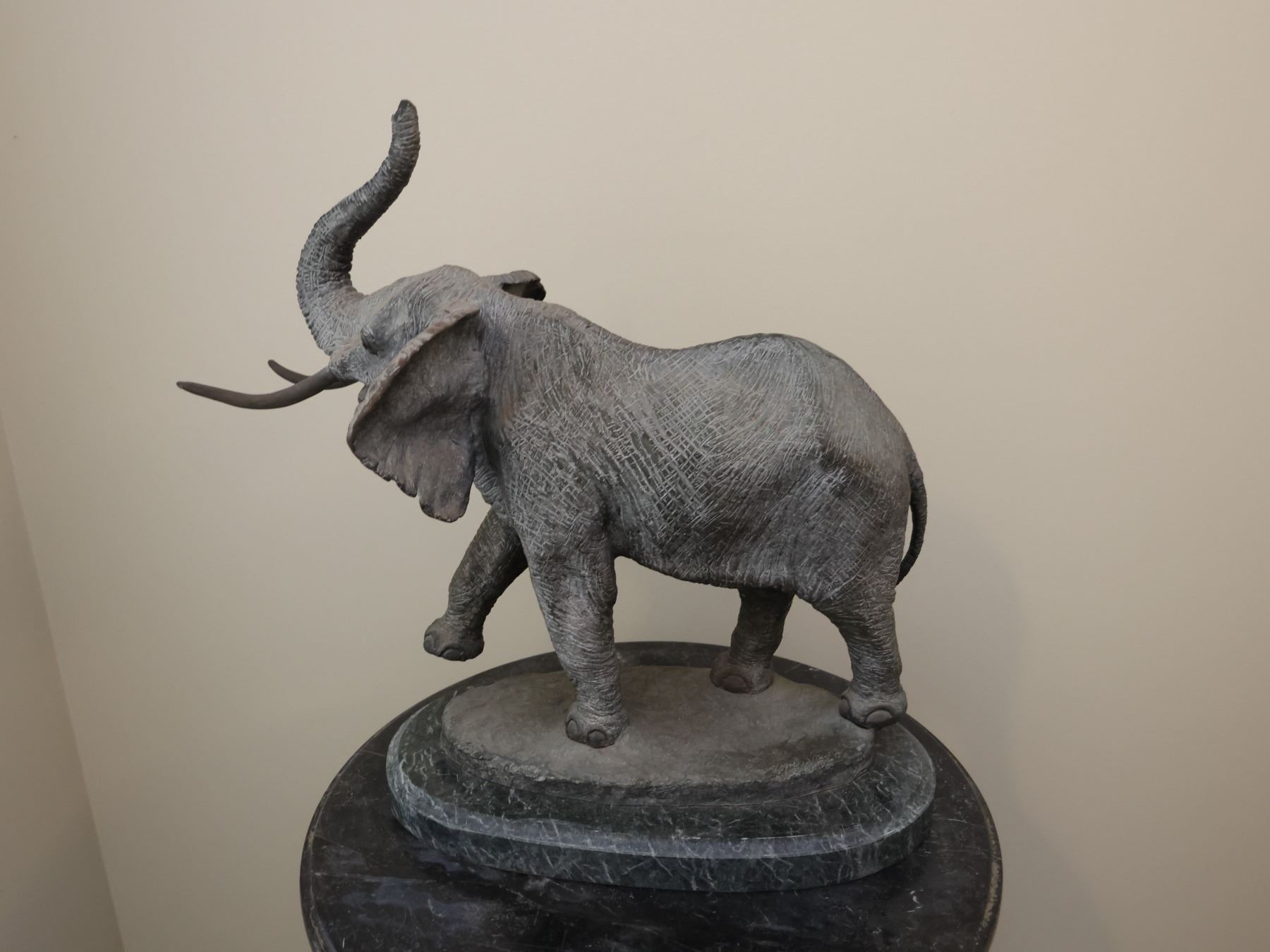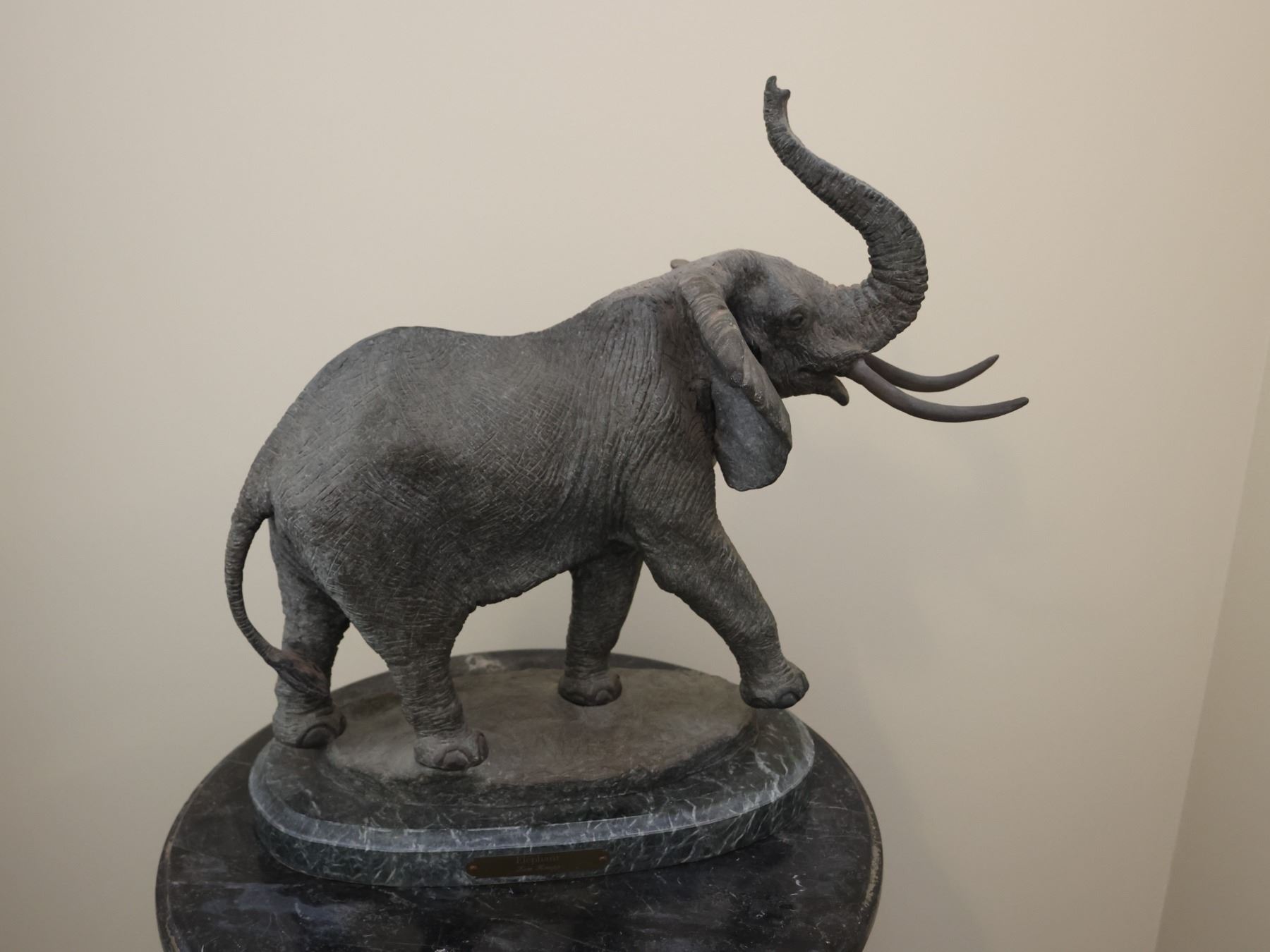American Cast Bronze Sculpture Titled Elephant Limited Edition 90/850 by Tom Knapp on Marble Base 17"L x 16"H