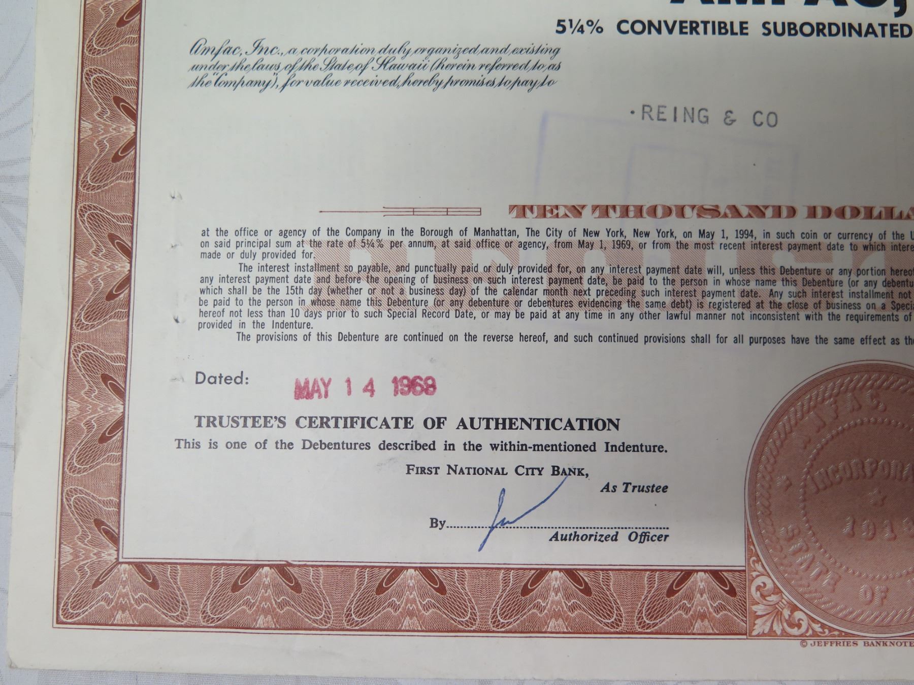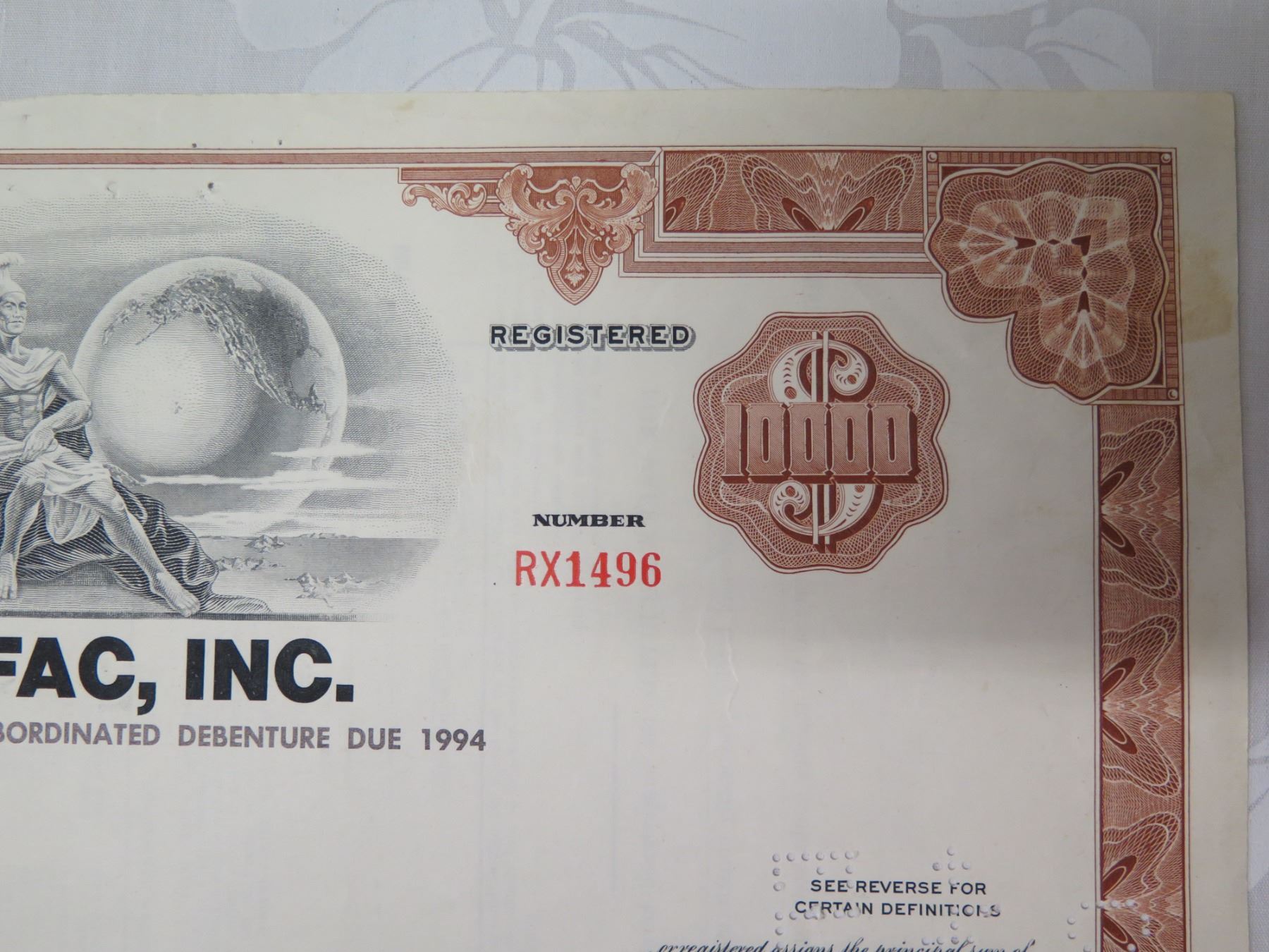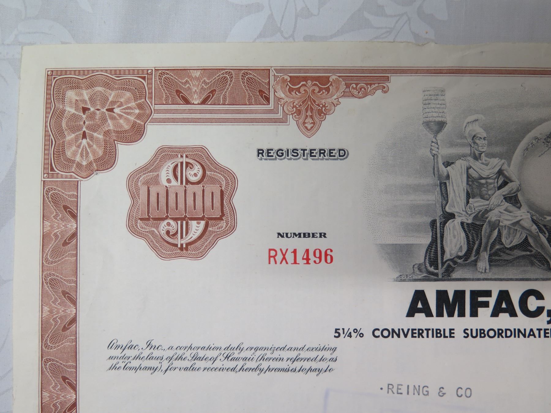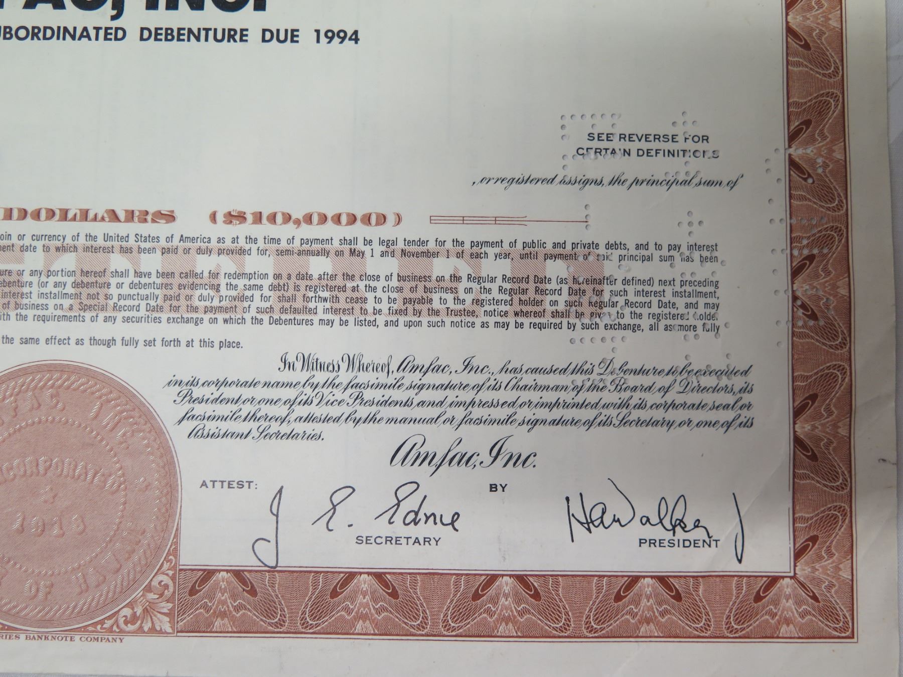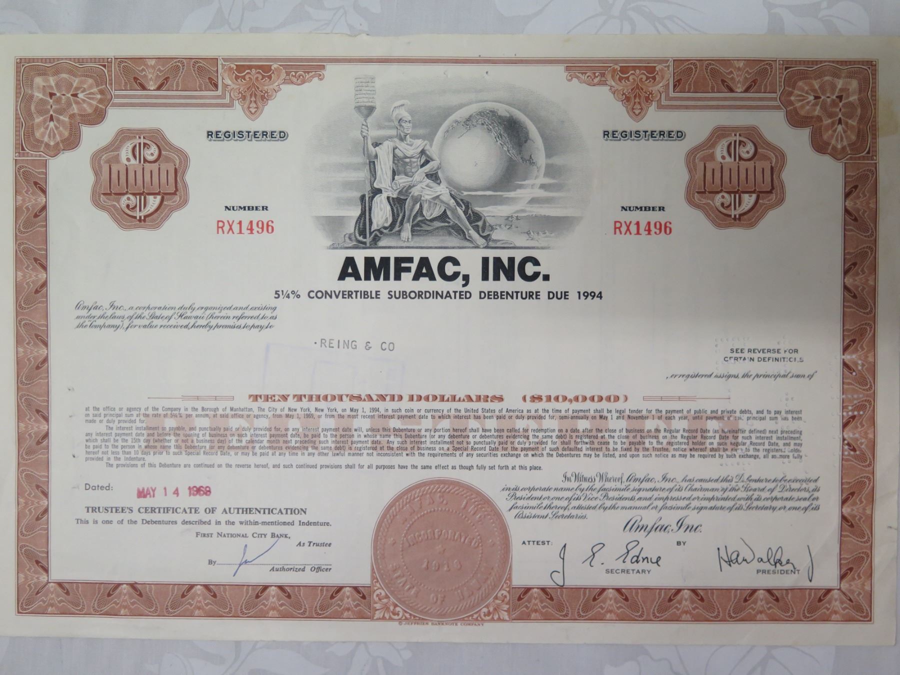 Amfac, Inc Convertible Subordinate Debenture Due 1994 Certificate 11"x8"