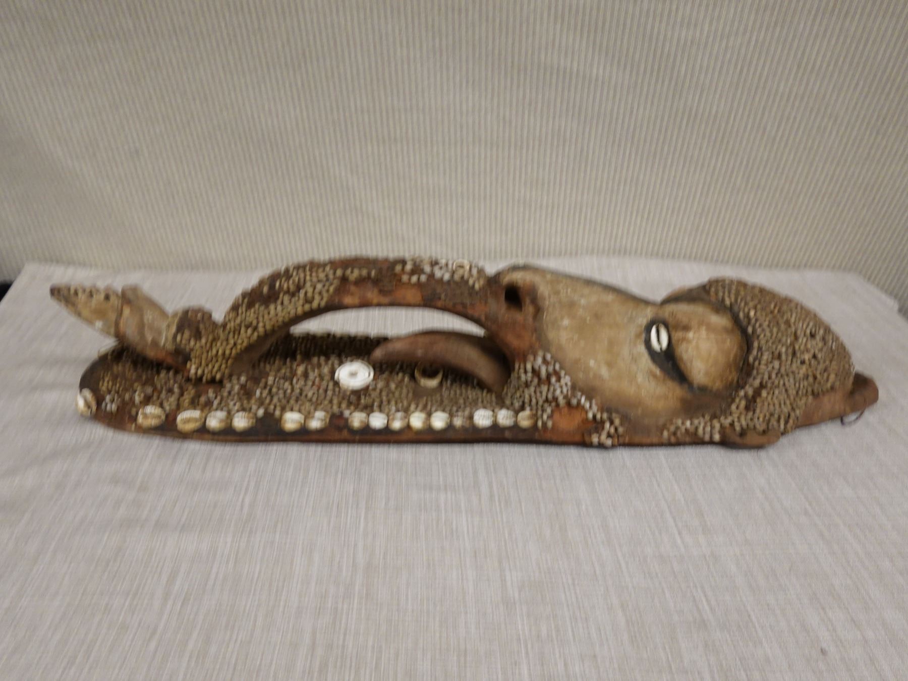 Seller reports this is a Mwai Mask from the Middle Sepik River Region, New Guinea. This ancestral figure was used for ritual ceremony