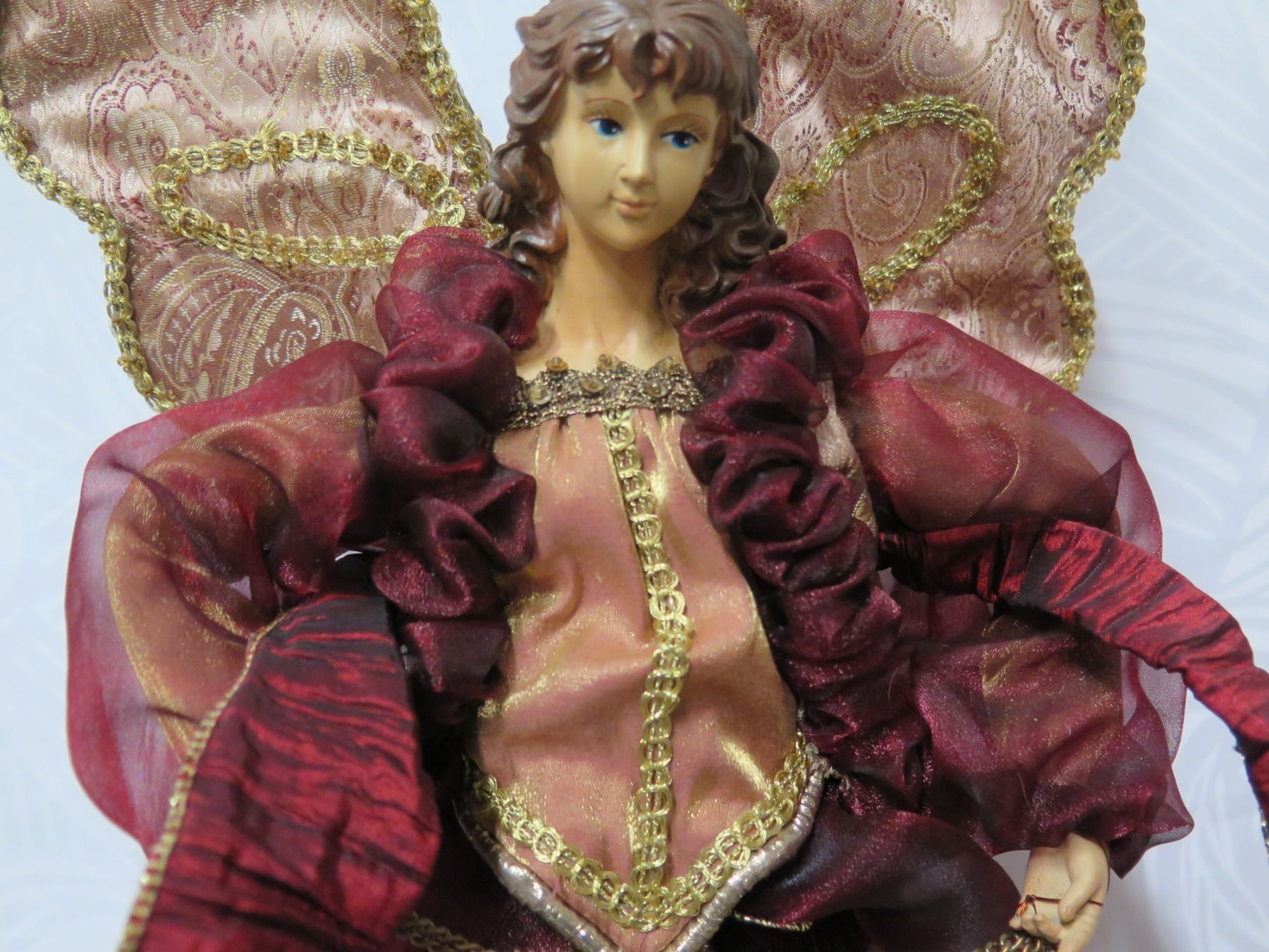 Angel w/ Gold Wings & Burgundy Dress, 21" Tall