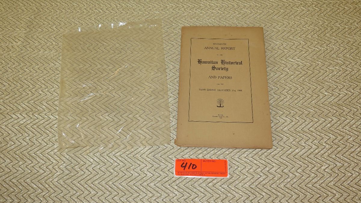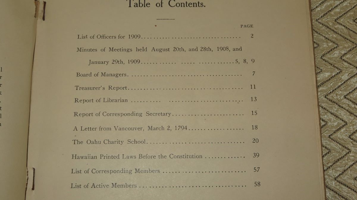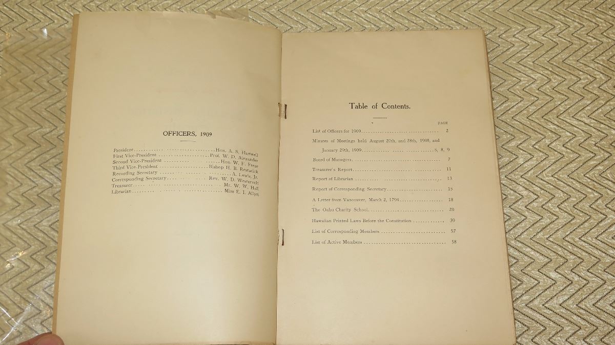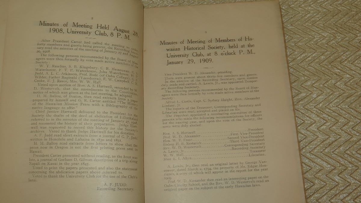 Antique Book: "1909 Annual Hawaiian Historical Society" Reports/Papers