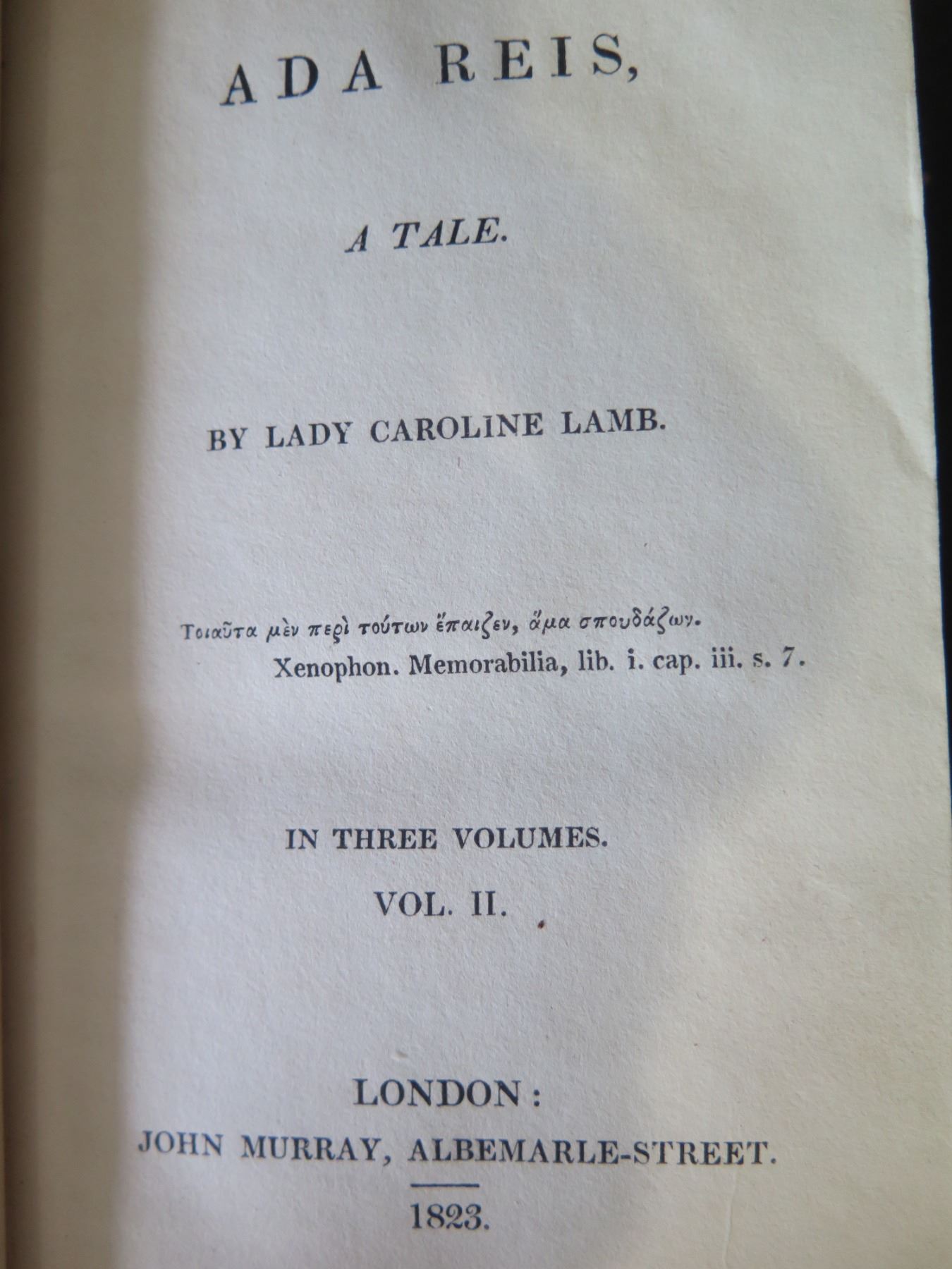 Antique Book: Ada Reis, A Tale by Lady Caroline Lamb Vol. II London 1823