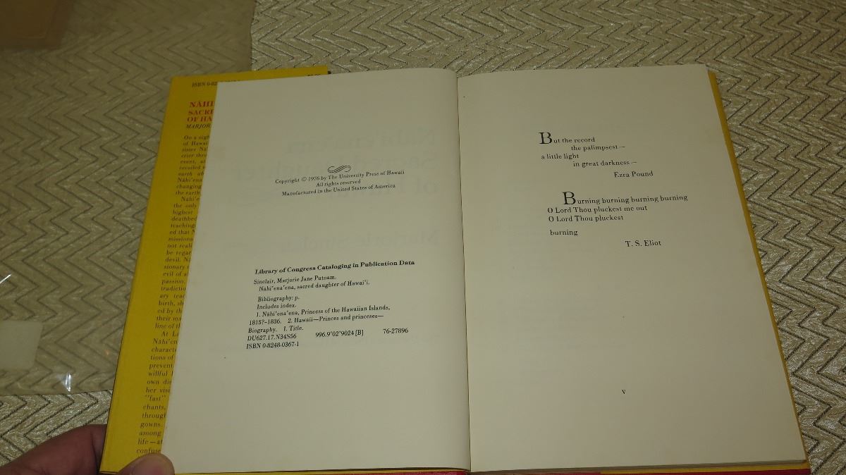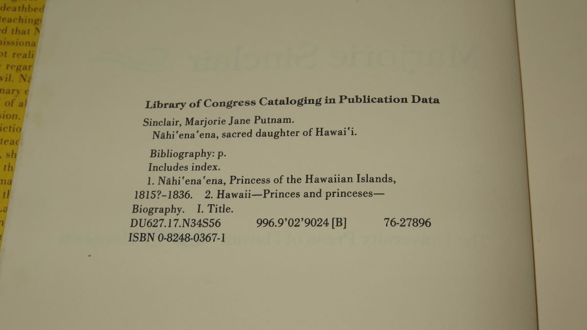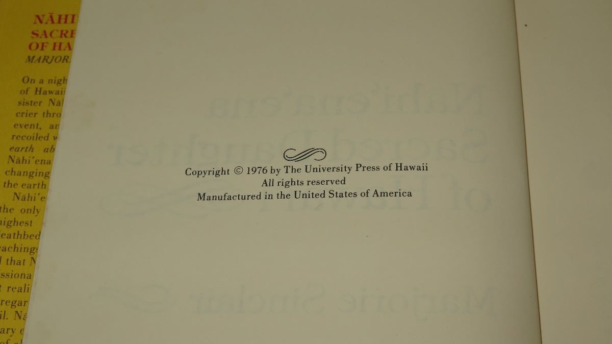 Antique Book: Nahi`Ena`Ena Sacred Daughter of Hawaii - Hardbound 1976