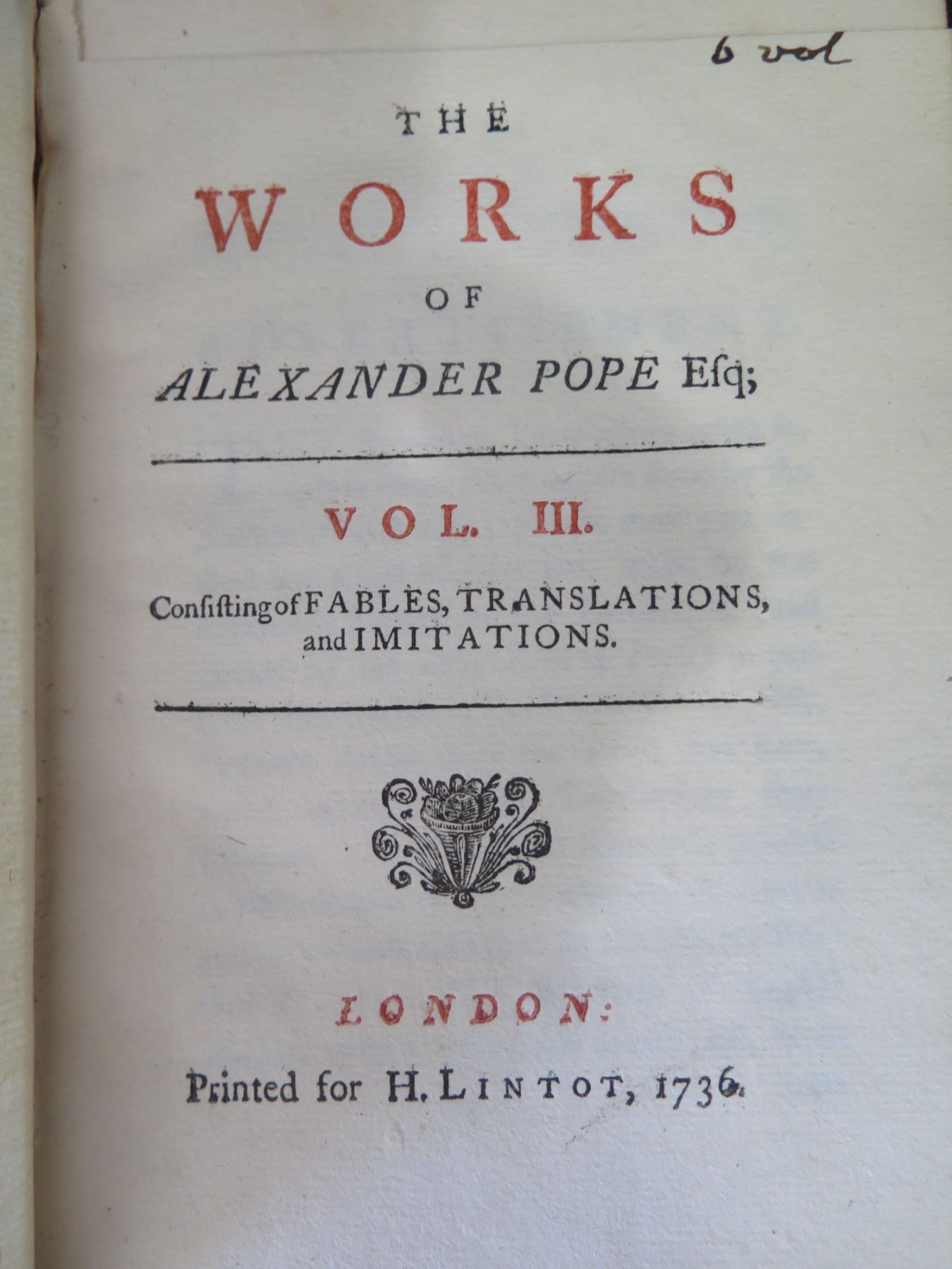 Antique Book: The Works by Alexander Pope Esq. Vol III Printed 1736