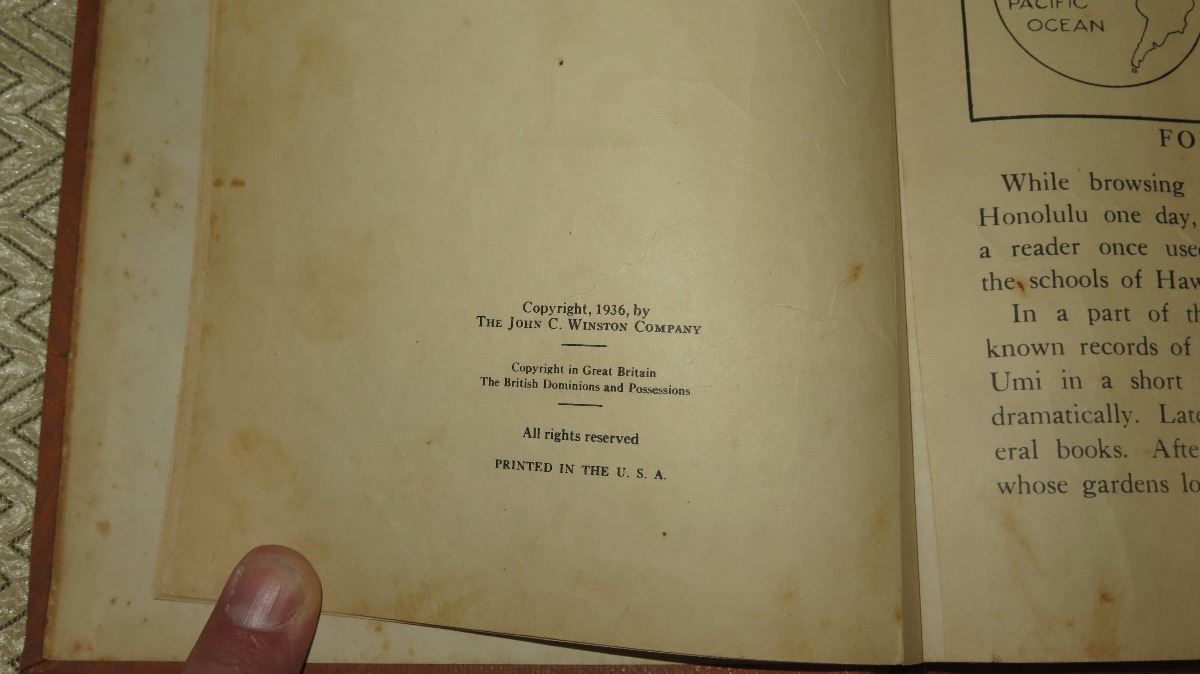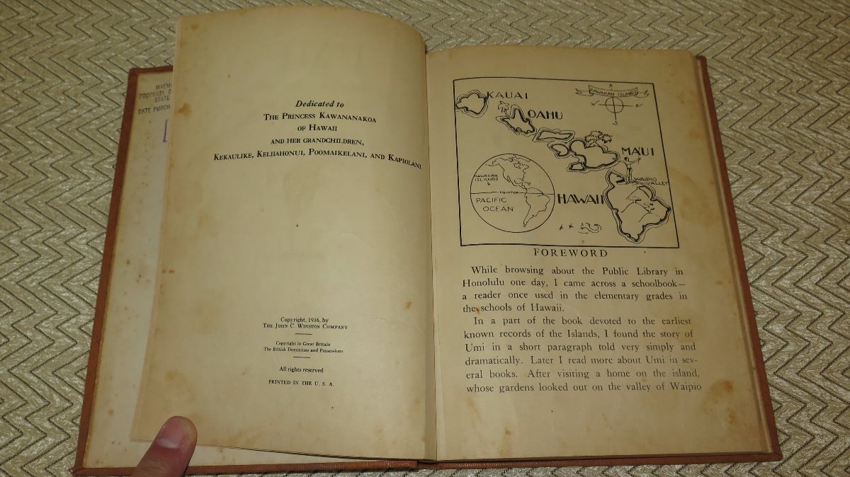 Antique Book: Umi The Hawaiian Boy Who Became King - Hardbound 1936