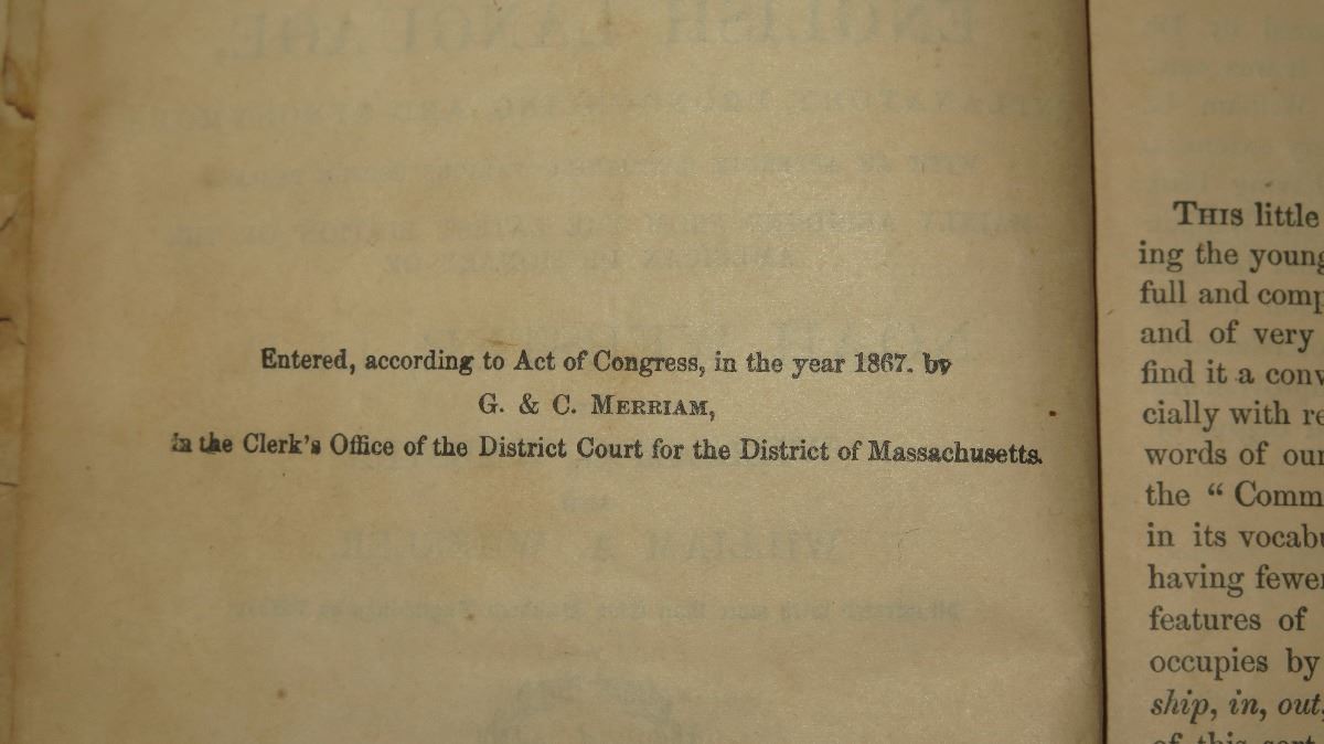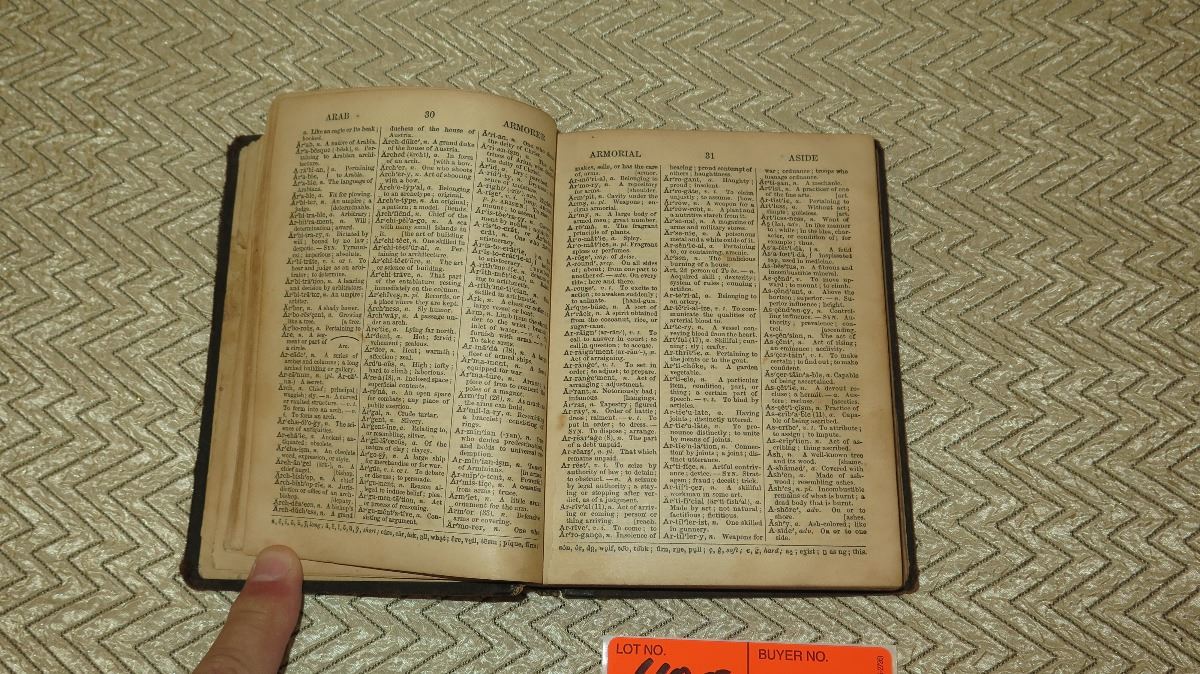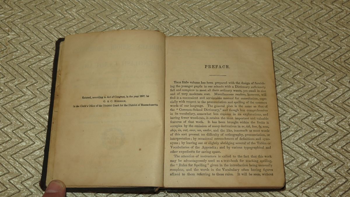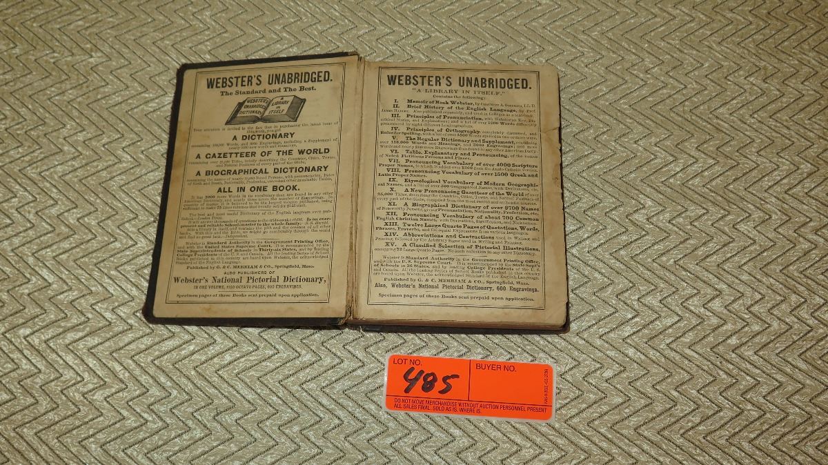 Antique Book: "Webster's Dictionary" - 1867? Hardbound, Sept. 1888 Inscription