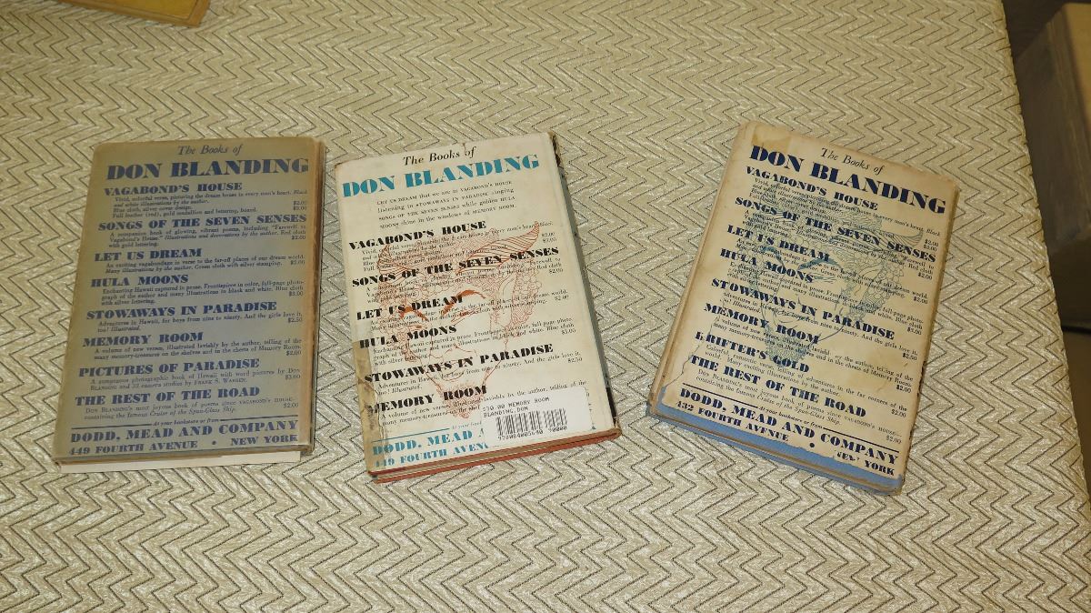 Antique Books: 3 Don Blanding Books - Hardbound, Signed, 1930s