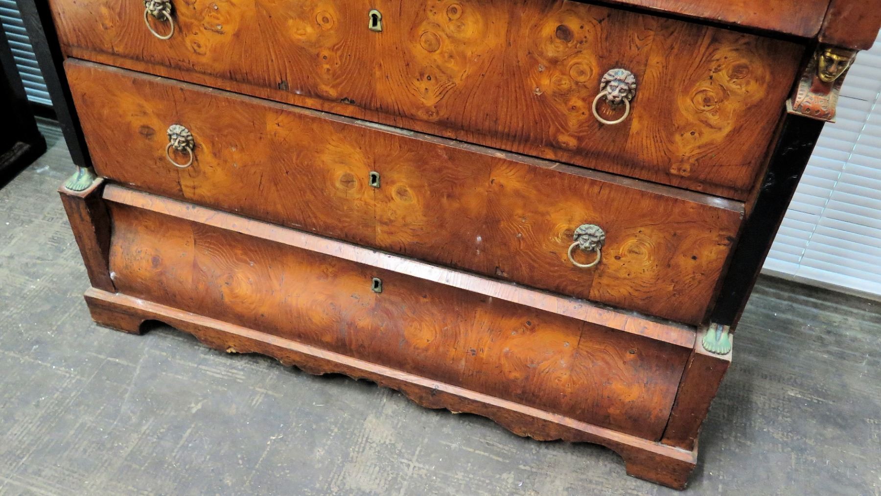 Antique Burl French Empire Chest of Drawers w/ Jim Nabors Tag
