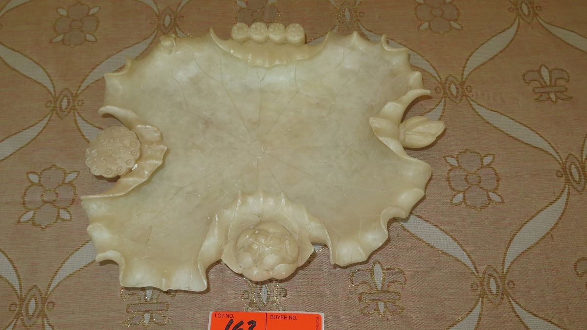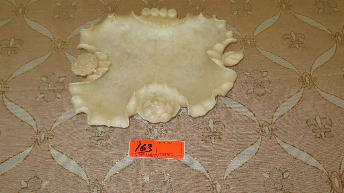 Antique Carved Alabaster Tray - Floral Motif Approx. 12X9