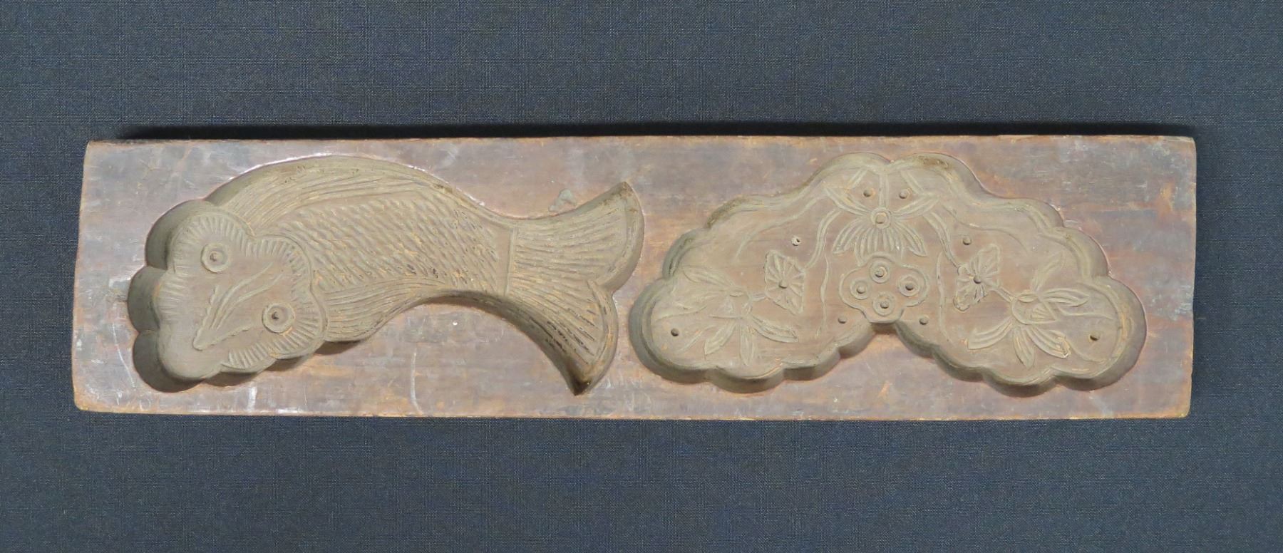 Antique Chinese Koi & Butterfly Double Cake Mold 13" x 3.25". Seller reports that this was purchased from the Honolulu Academy of Arts gift shop.