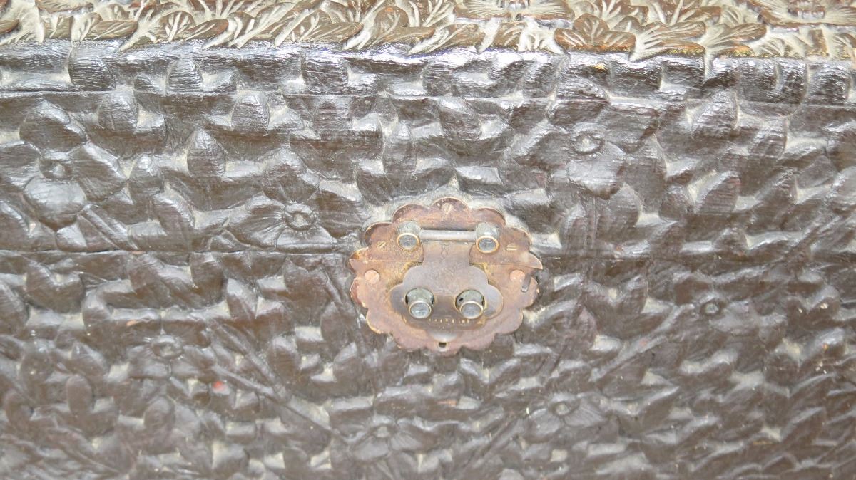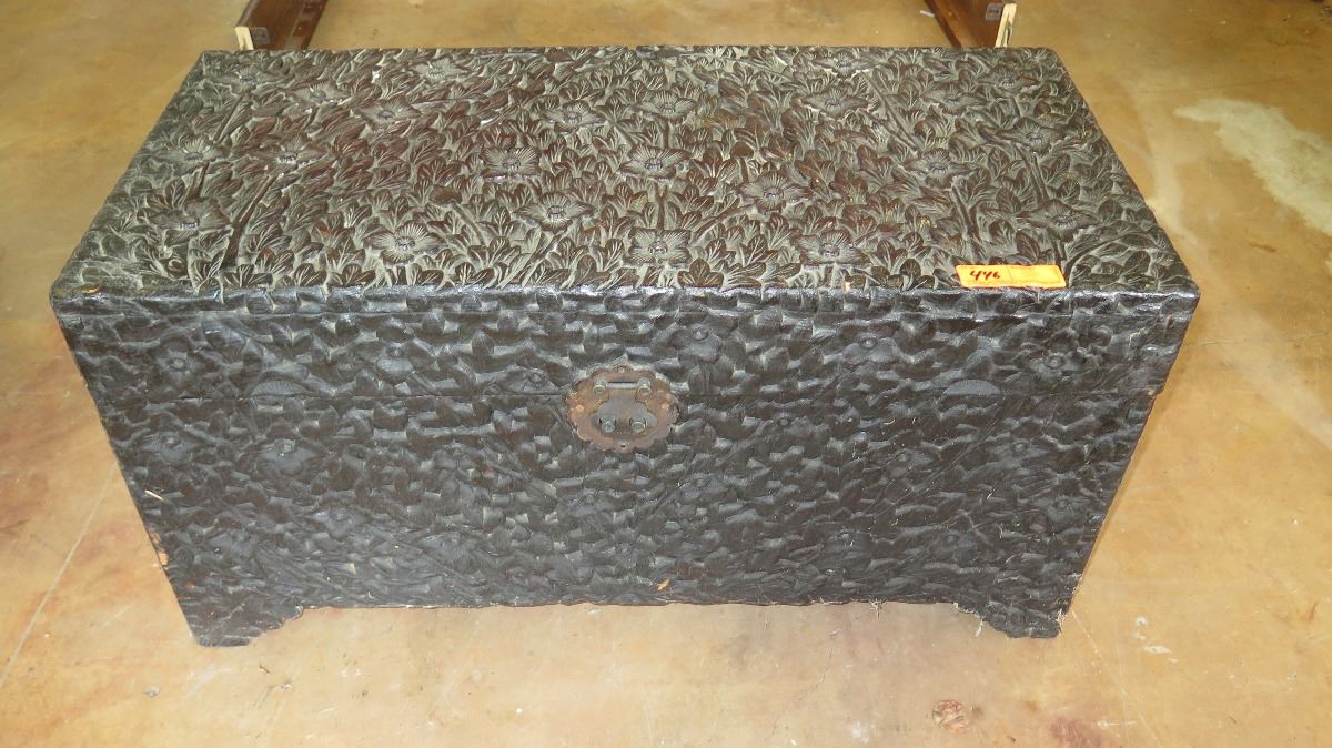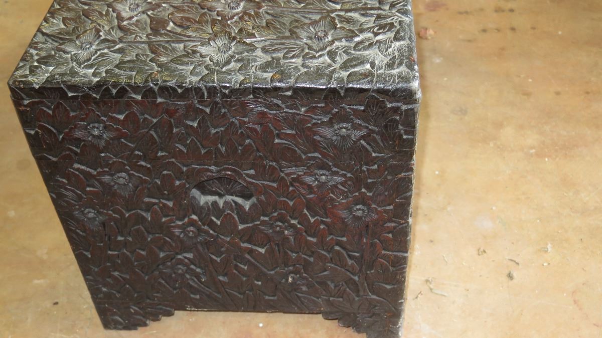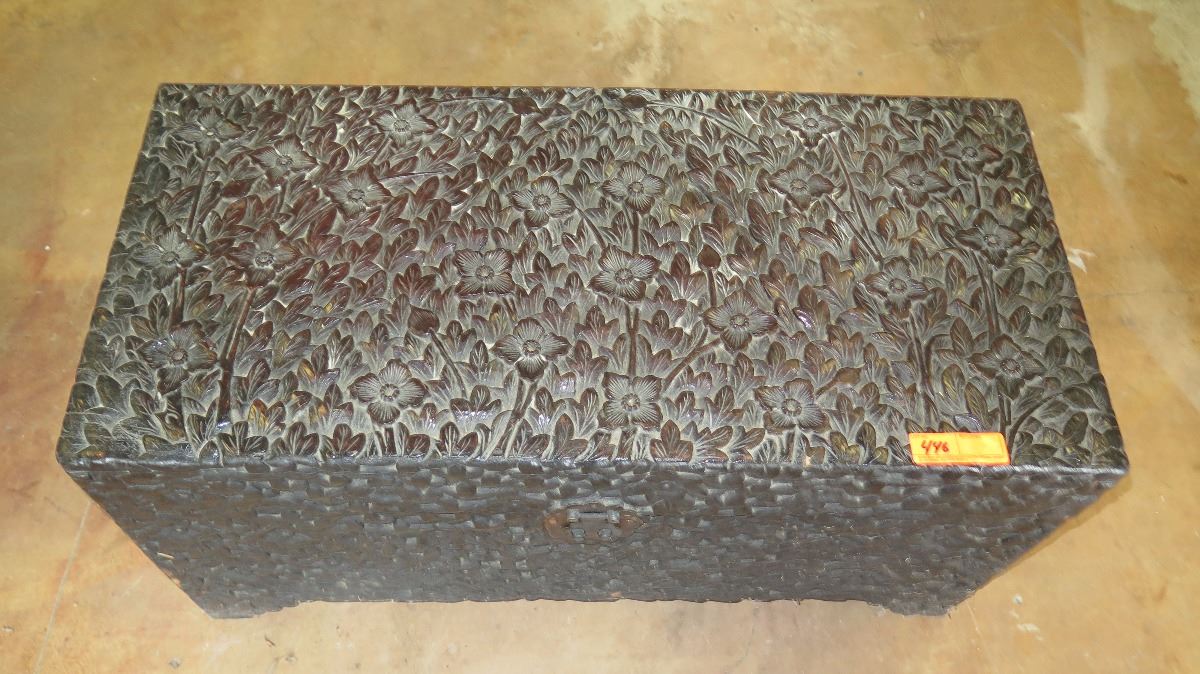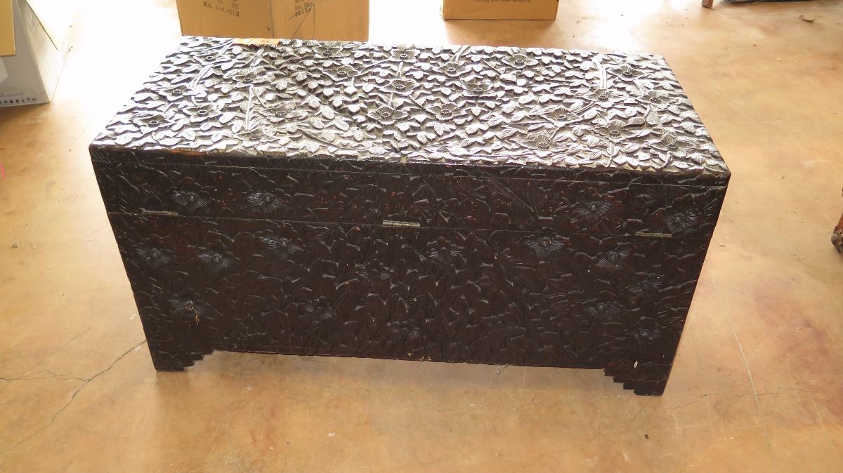 Antique Ebonized Carved Wood Camphor Chest - 37x17x19